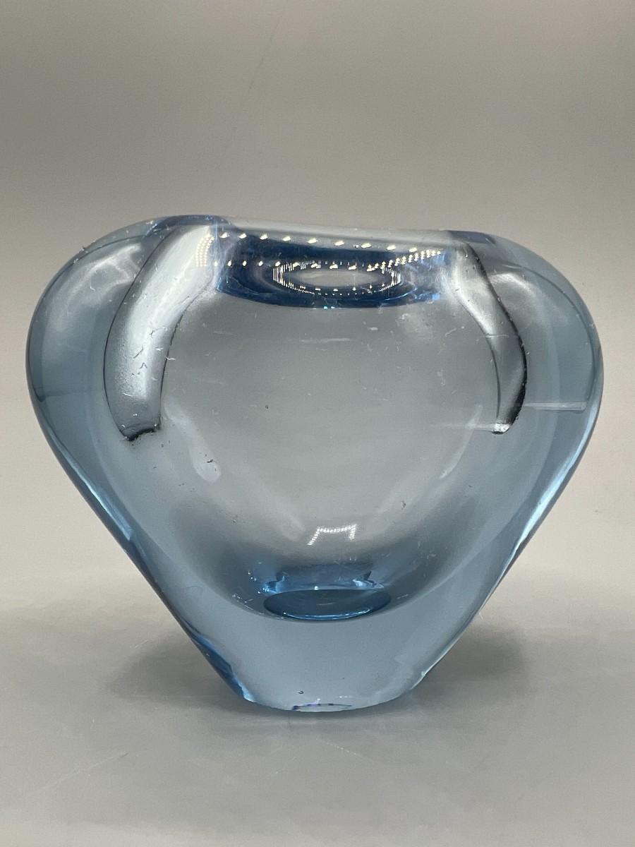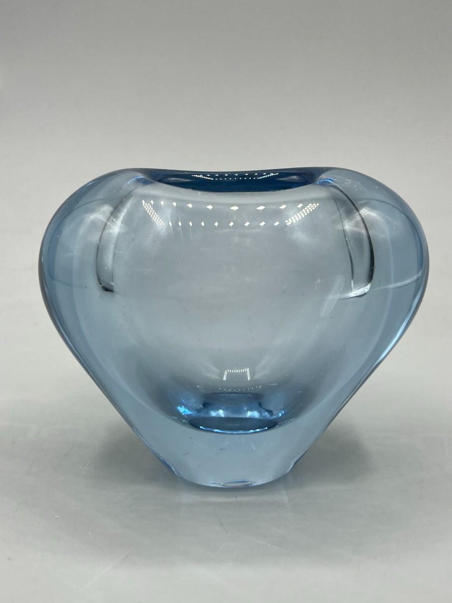 Small Retro Heart Shaped Blue Glass Bud Flower Vase