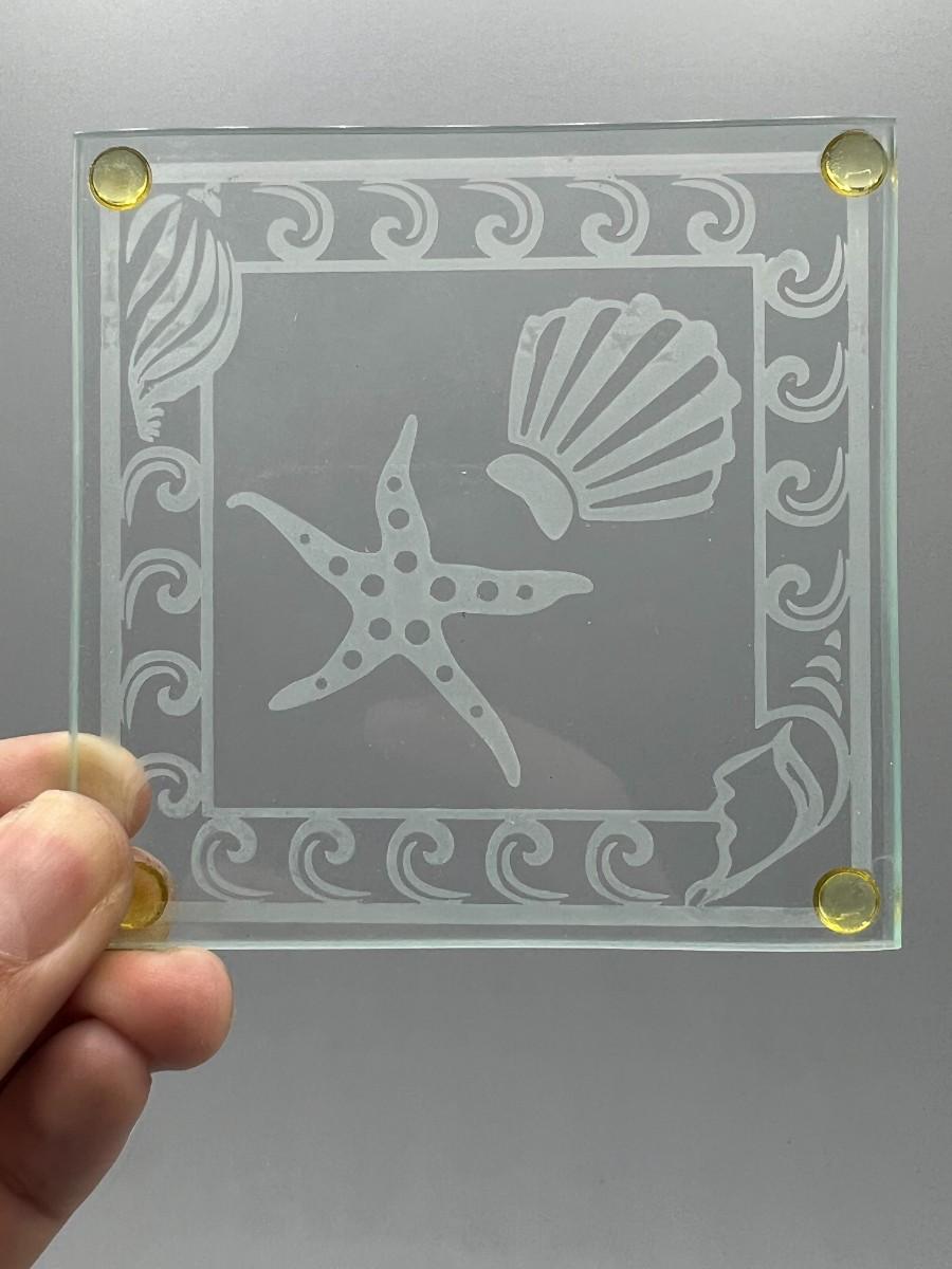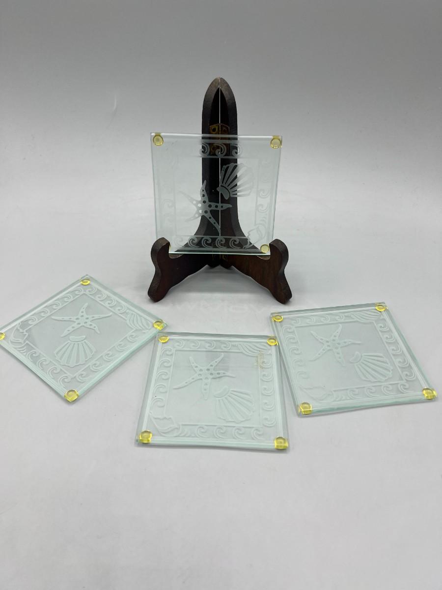Set of Nautical Seashell Clam & Starfish Glass Coasters