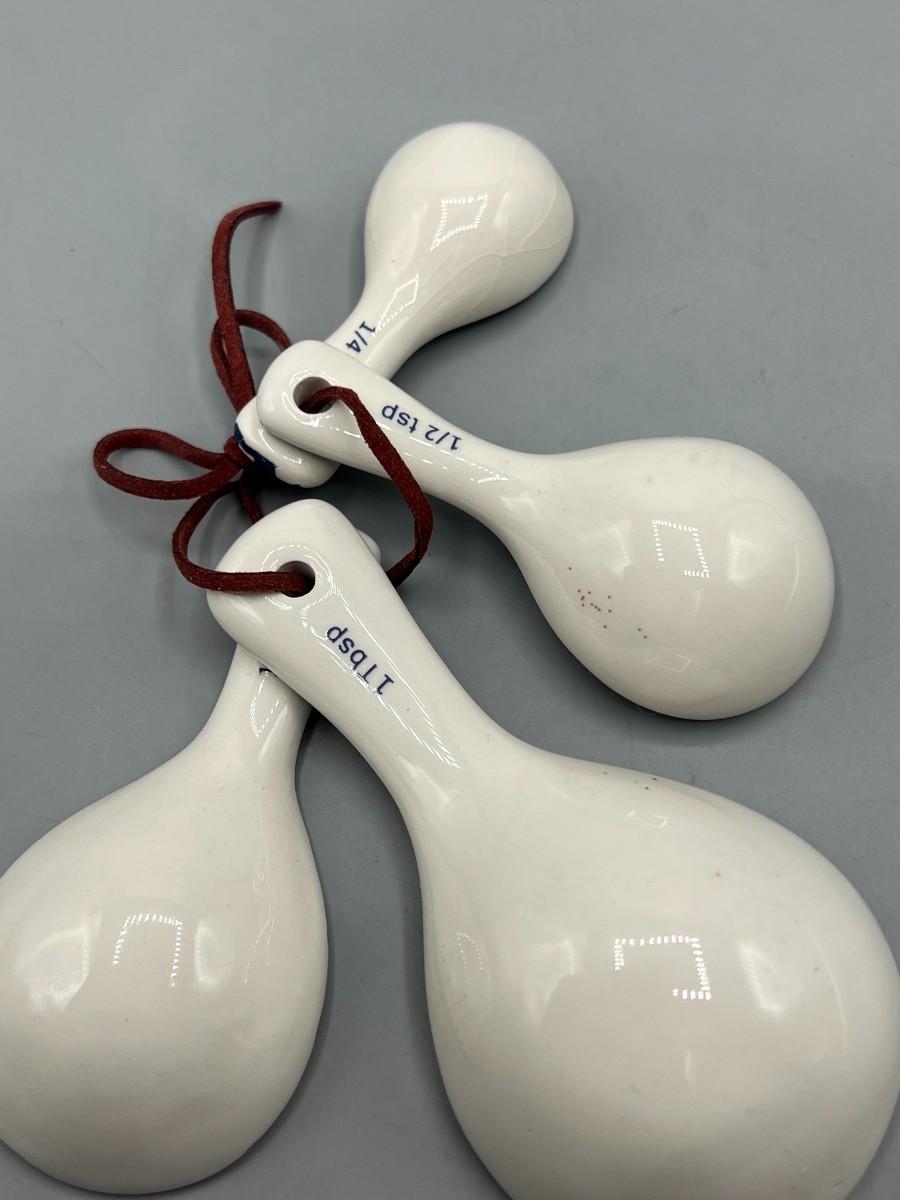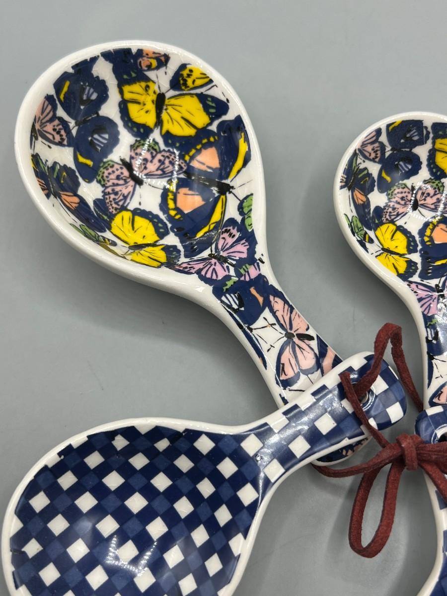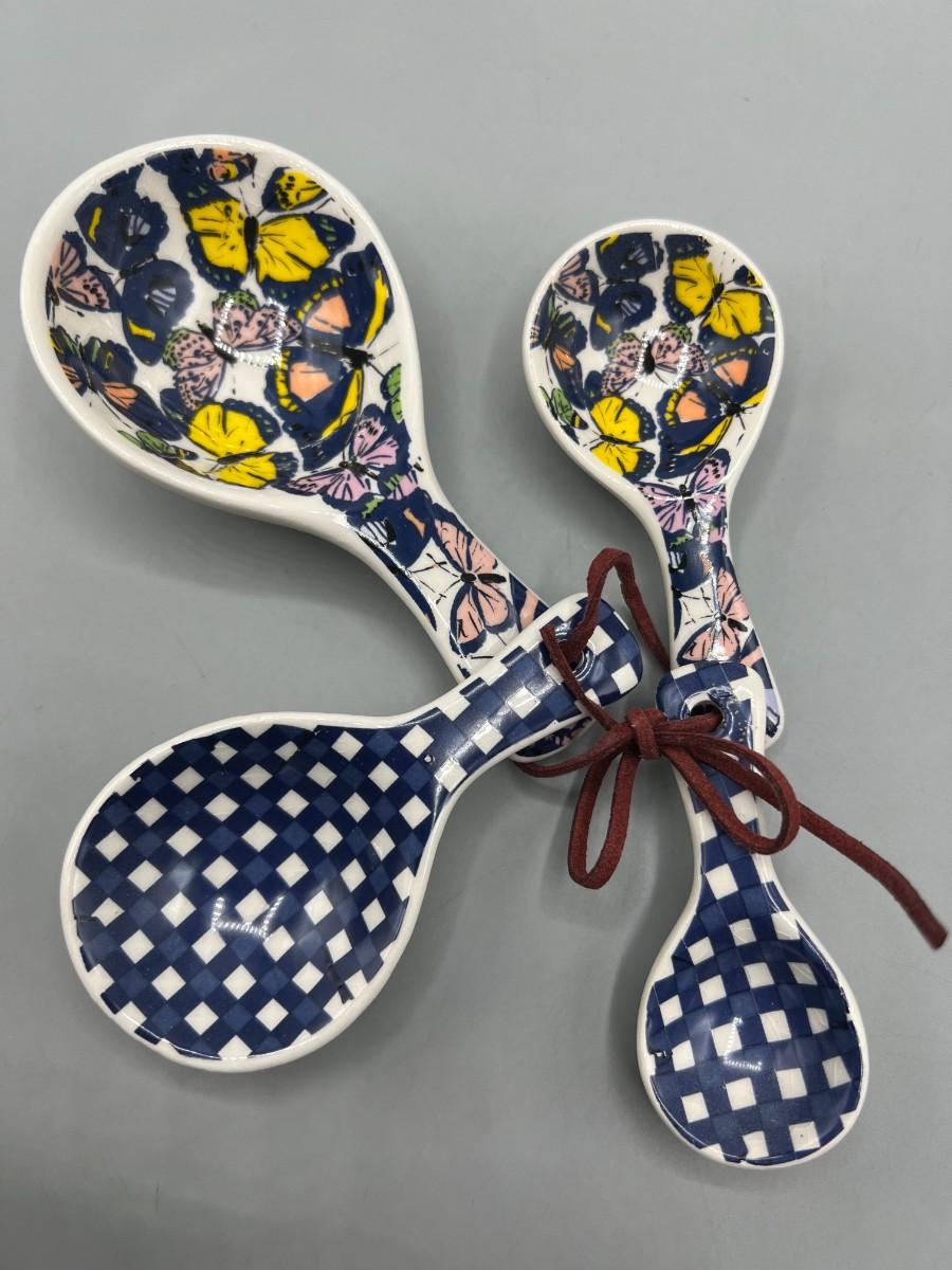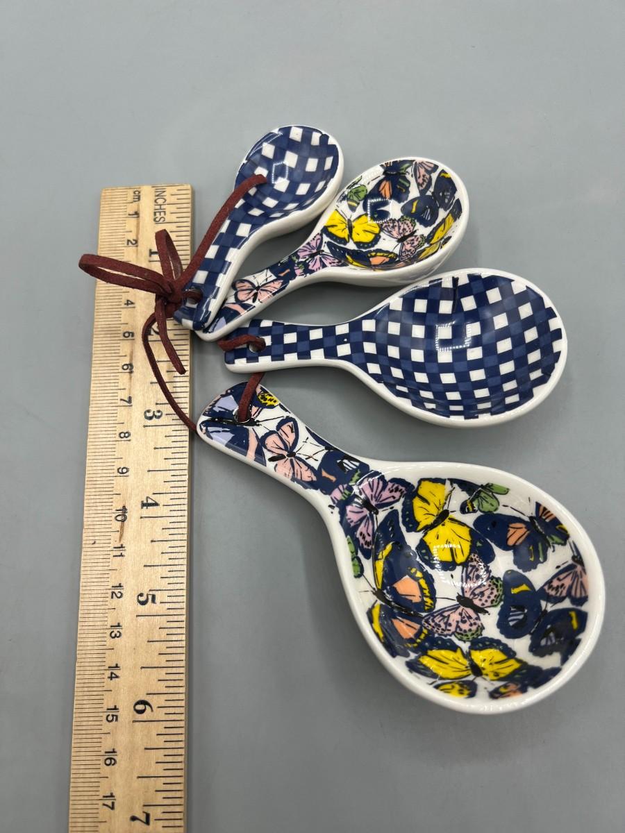 Retro Rustic Farm Blue Plaid Butterfly Ceramic Measuring Spoons
