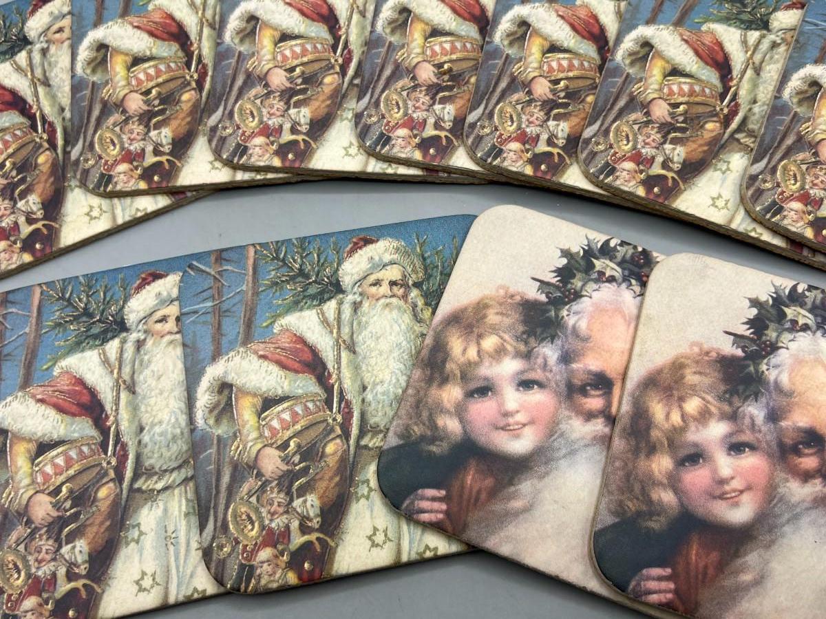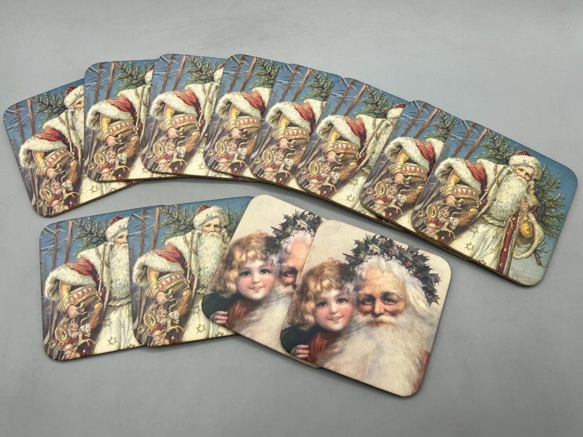 Lot of Holiday Christmas St. Nicholas Santa Claus Cork Drink Coasters