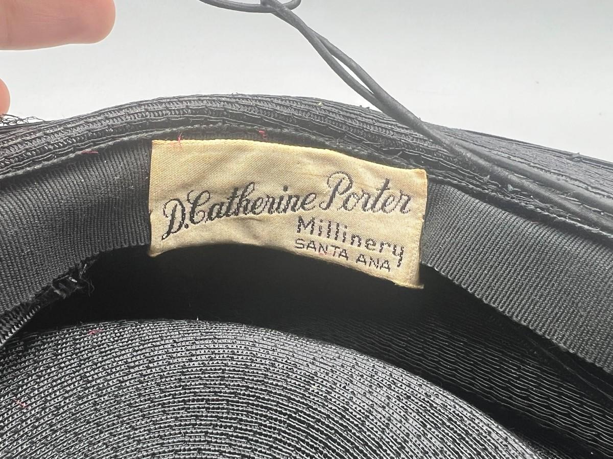 Vintage Brimmed Top Hat Black Gothic Flapper D. Catherine Porter Millinery Santa Ana Cap Hat
