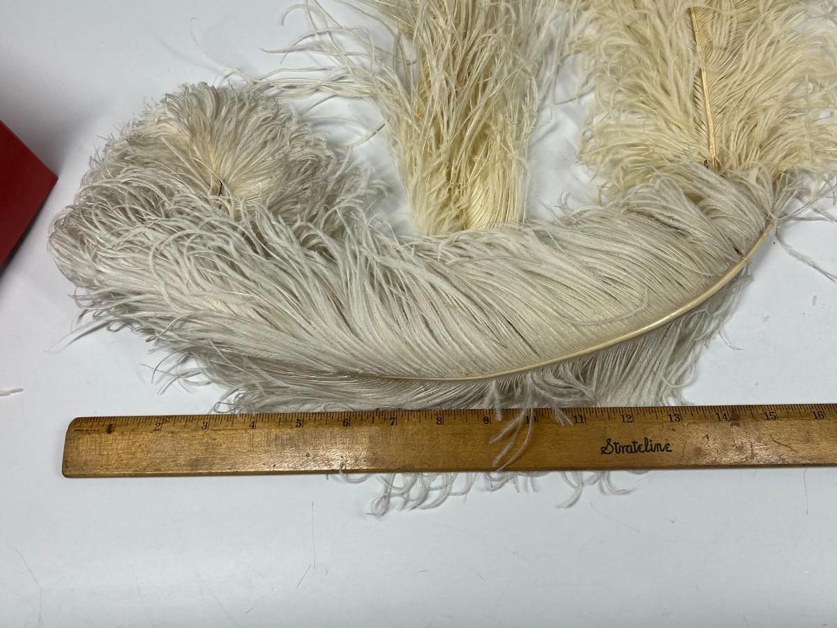 There is some light vintage wear to some of the feathers, but there is no significant damage and is in overall good collectible or useable condition. Check pictures for more details and for sizing.