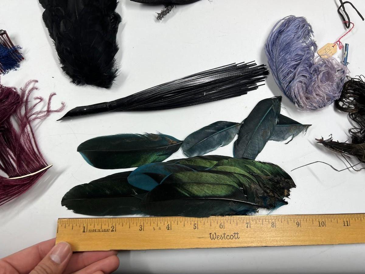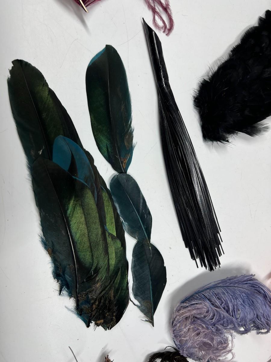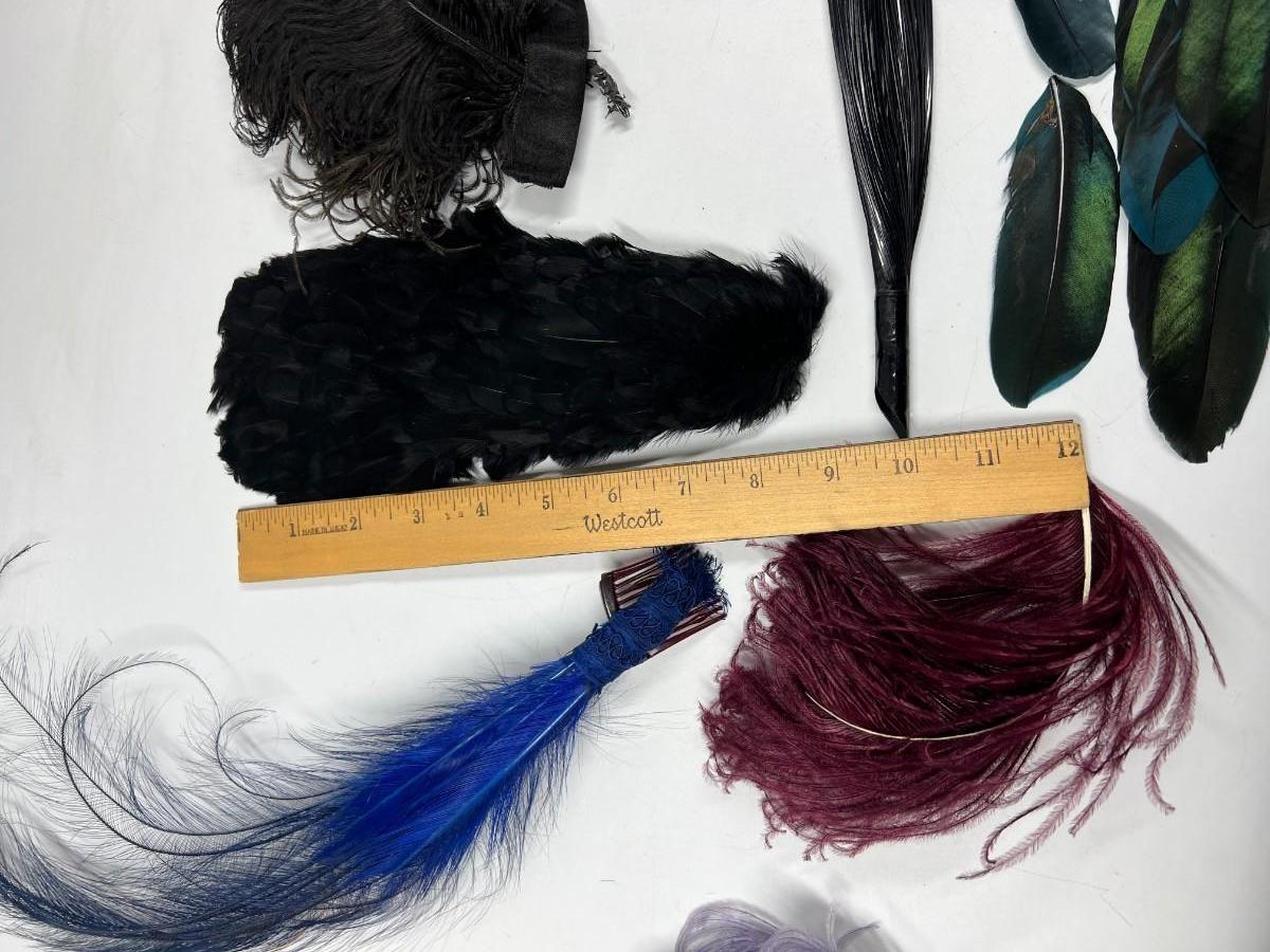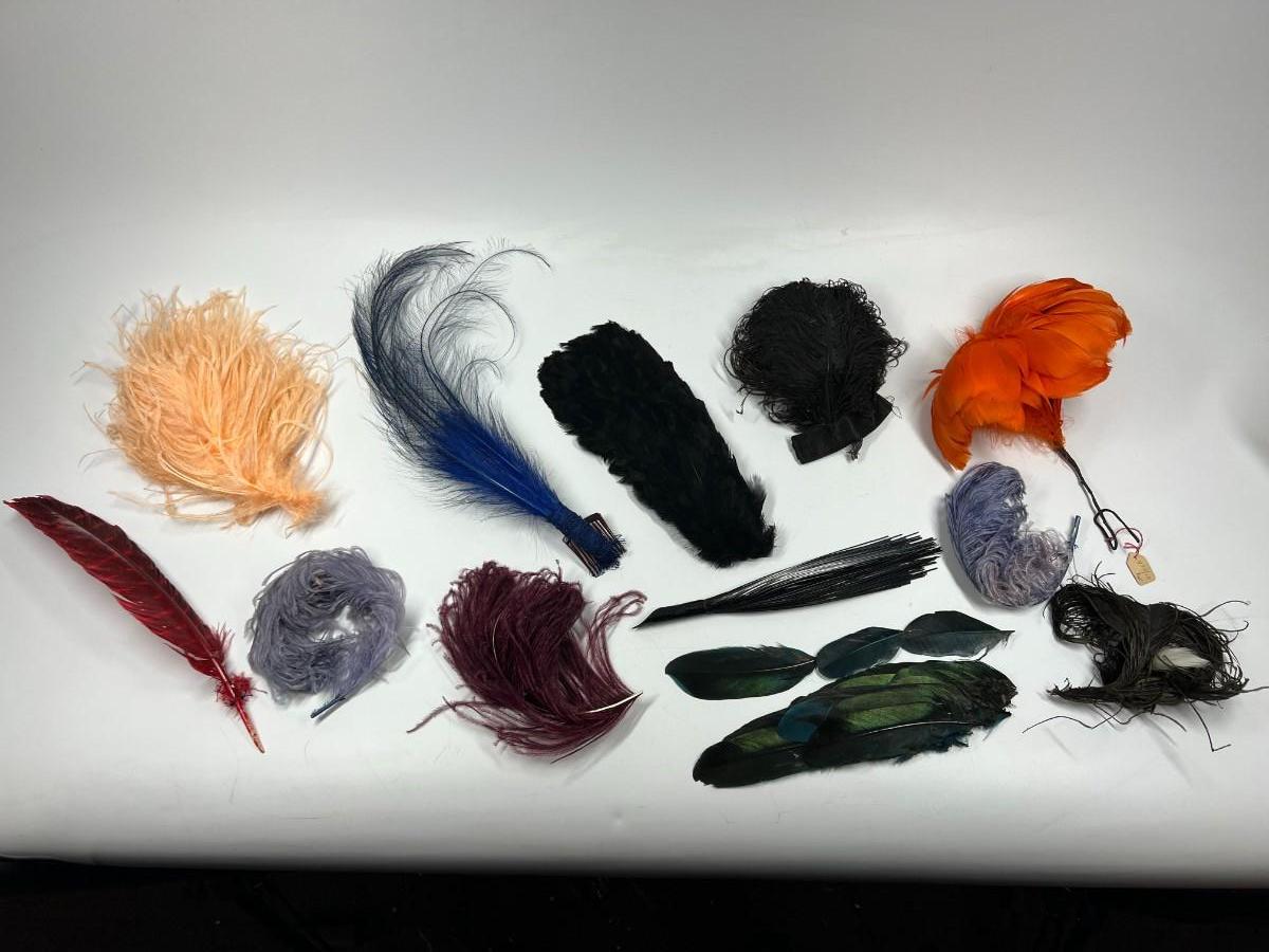Antique Lot of Multicolored Victorian Dress Fashion Hat Dress Accessories Feathers & More