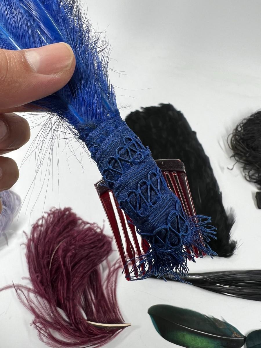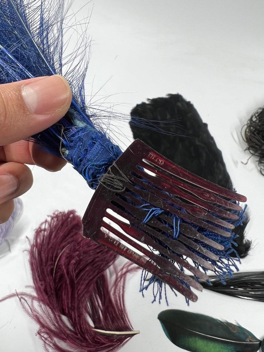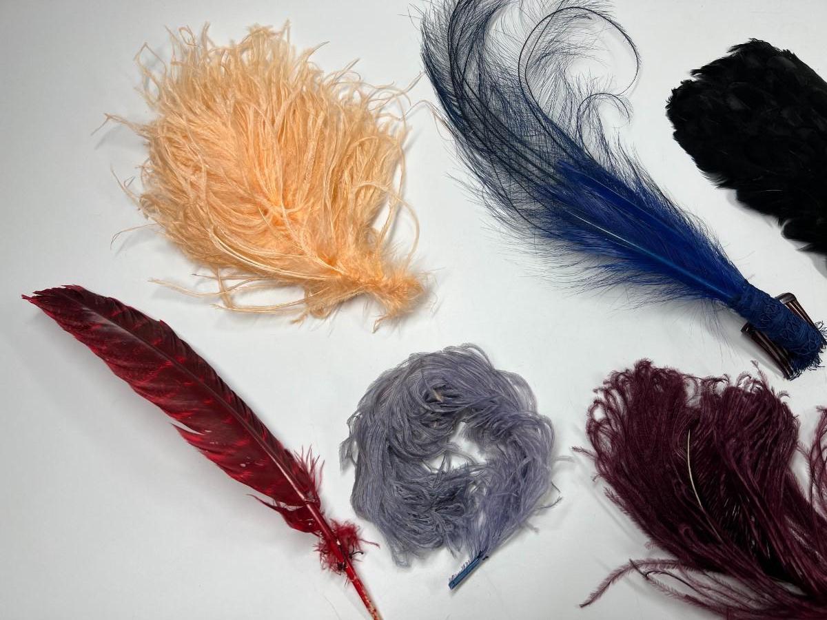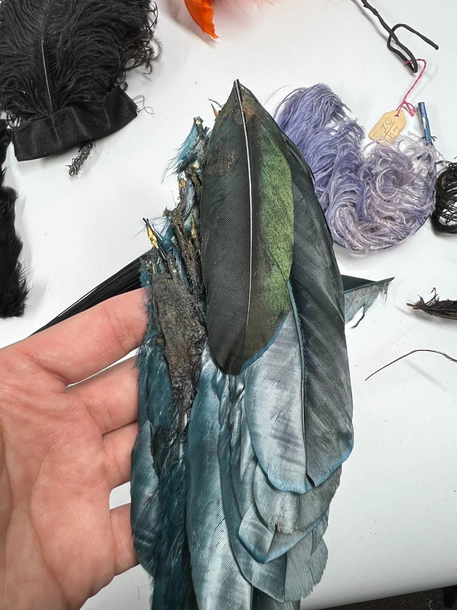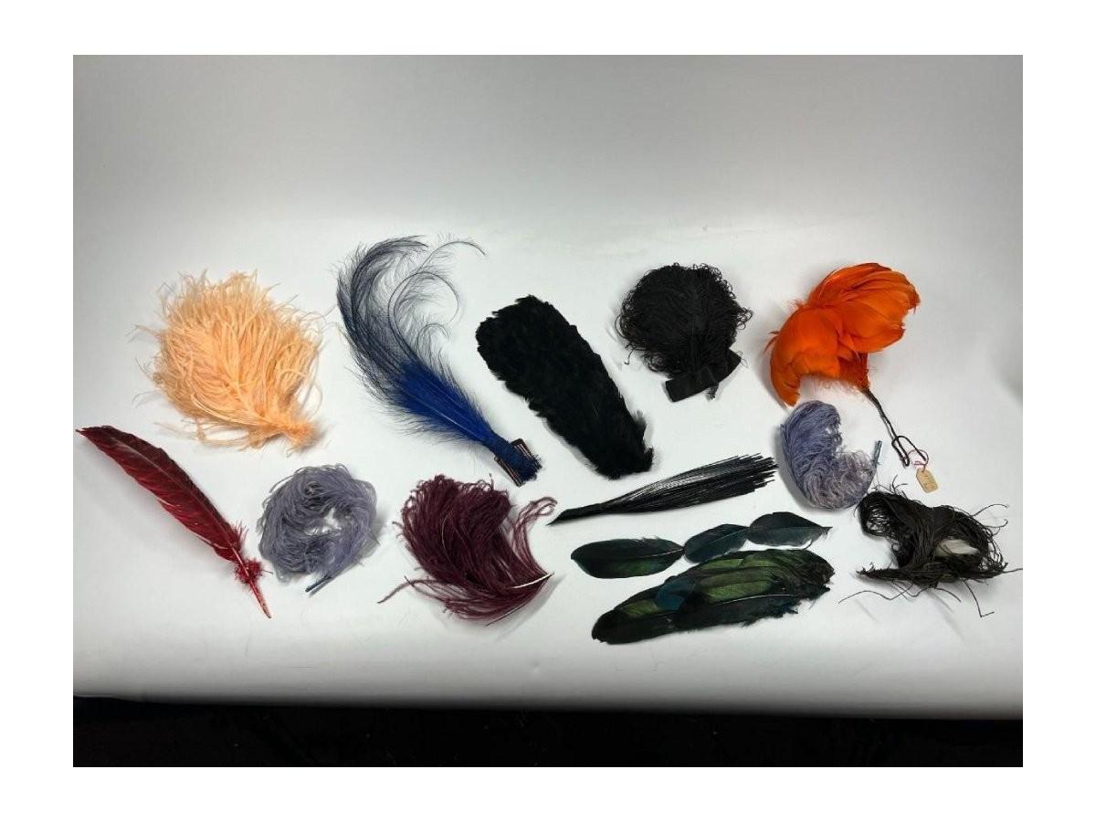 Antique Lot of Multicolored Victorian Dress Fashion Hat Dress Accessories Feathers & More