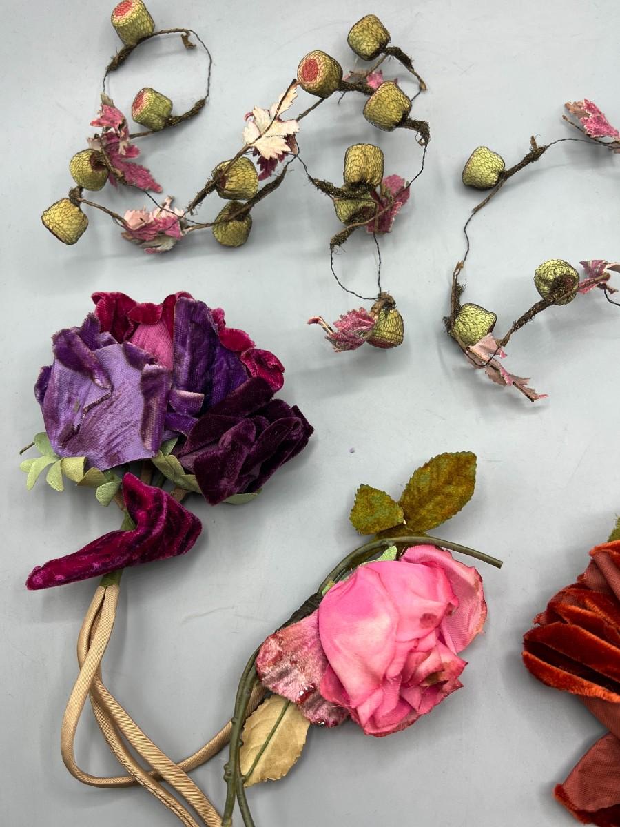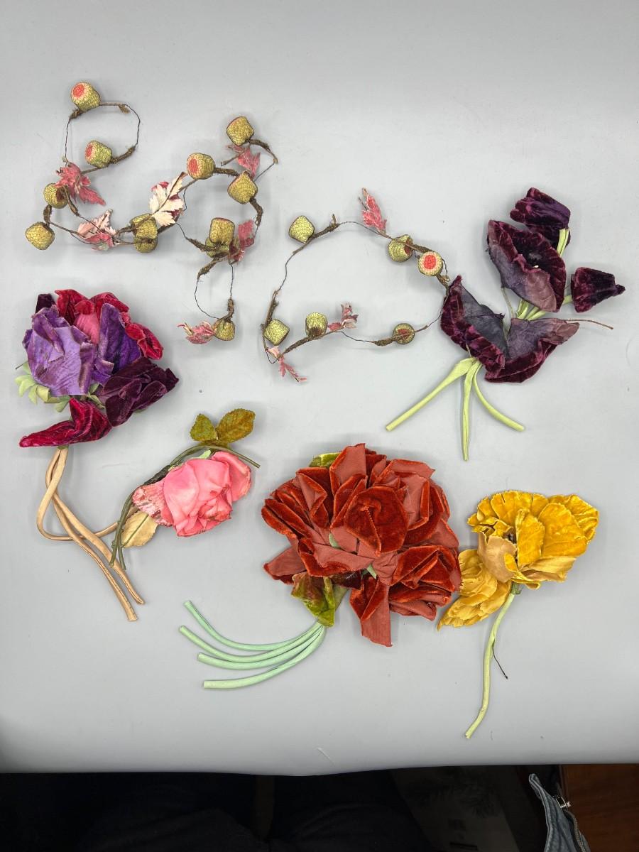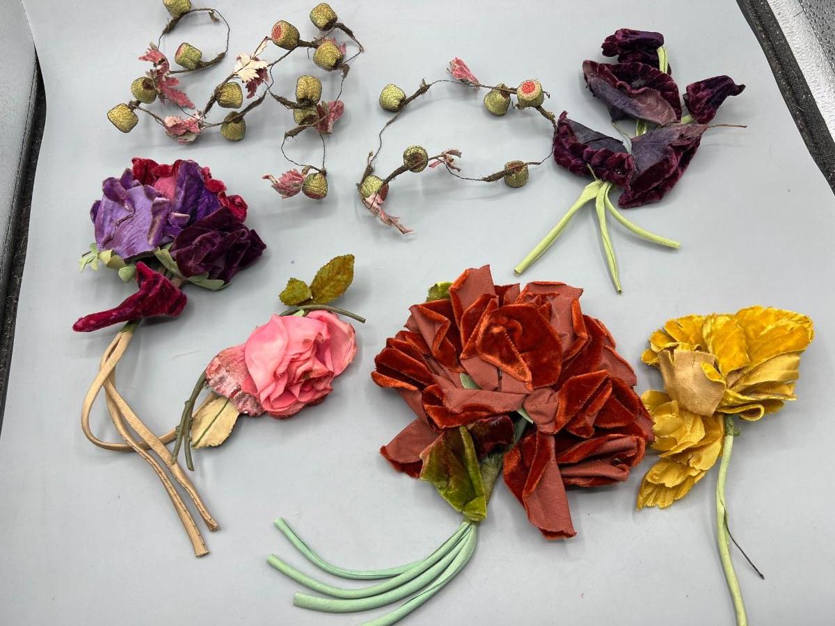 Antique Lot of Faux Multi Colored Flowers Fashion Dress Accessories