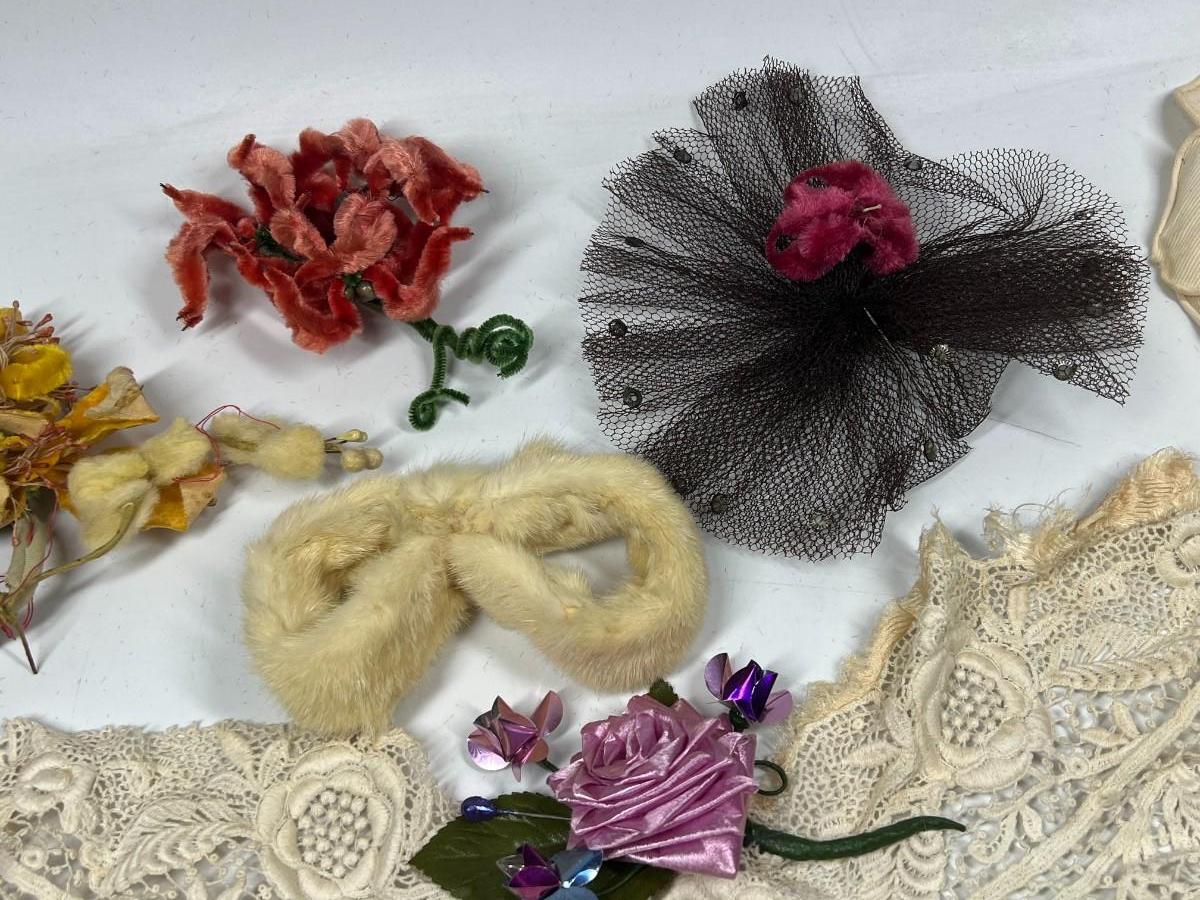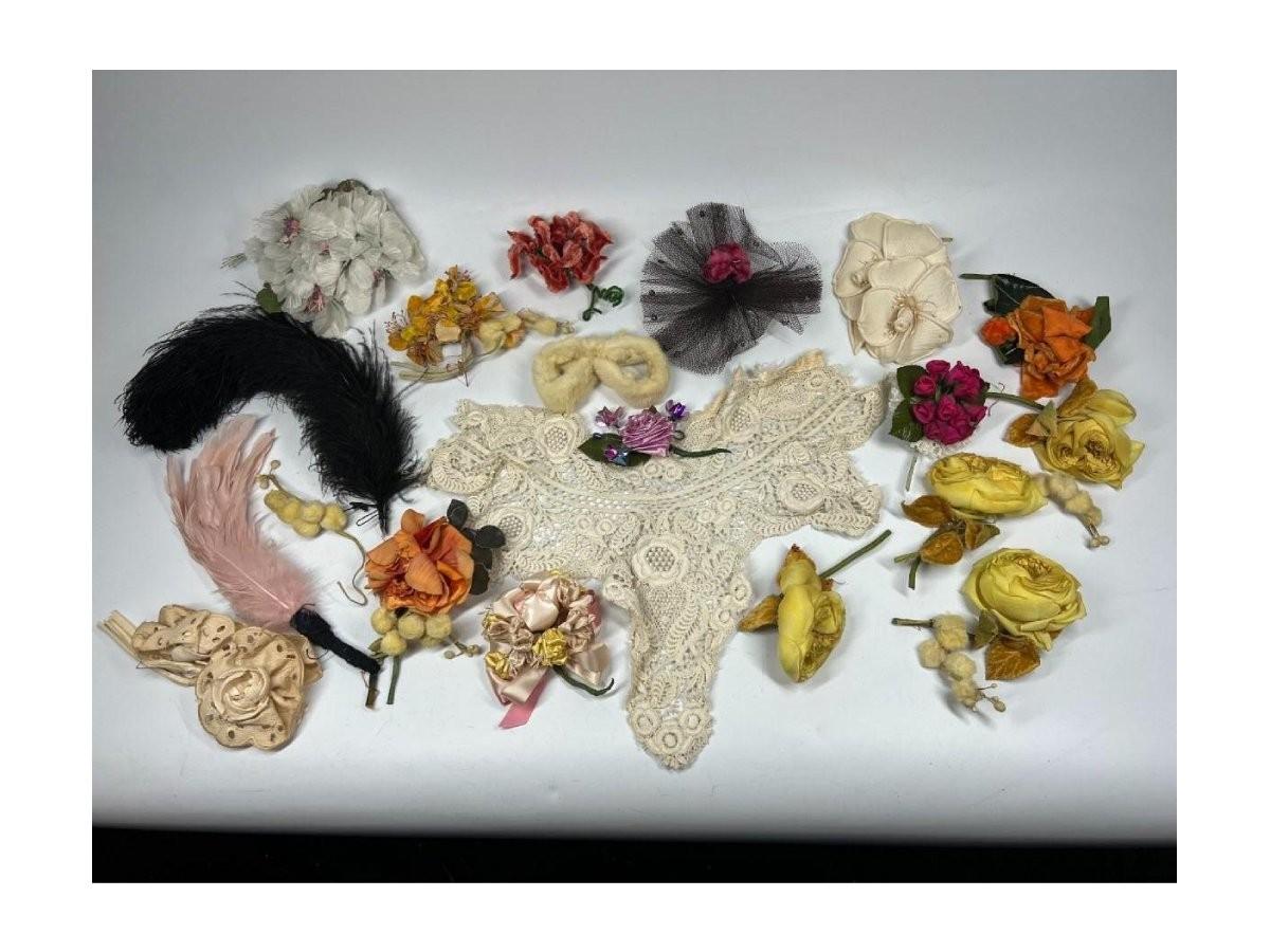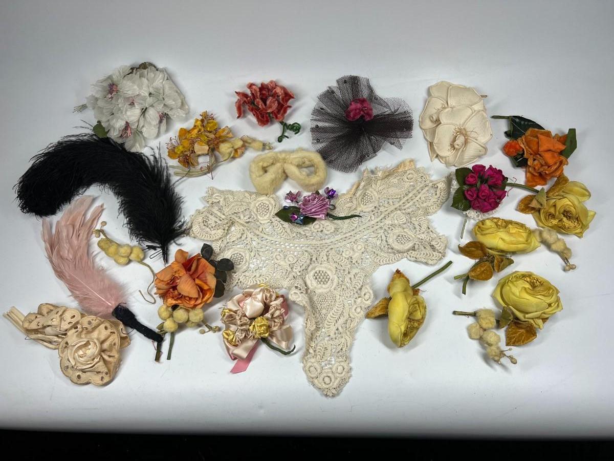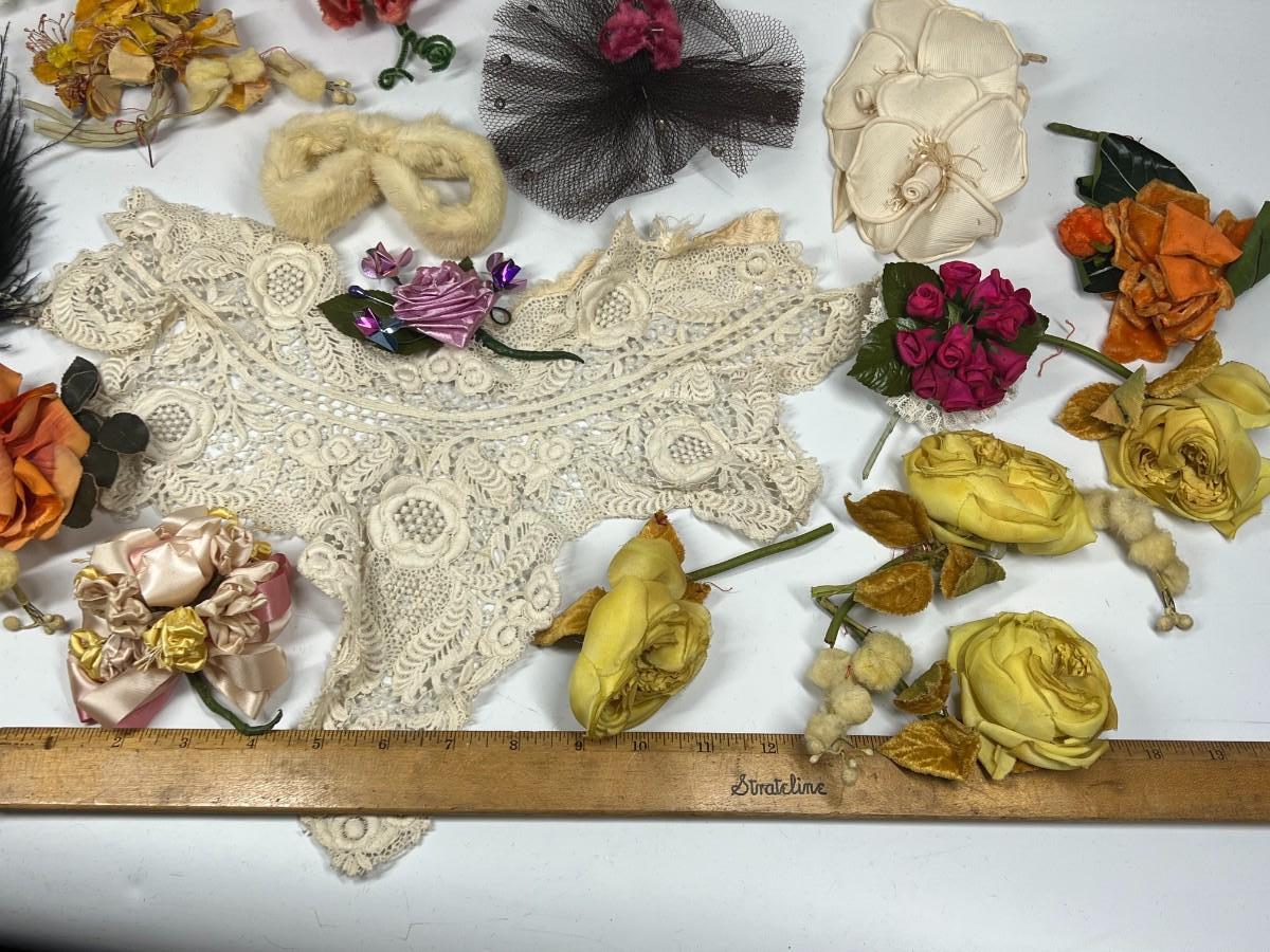 Antique Lot of Faux Multi Colored Flowers Lace Fashion Dress Accessories