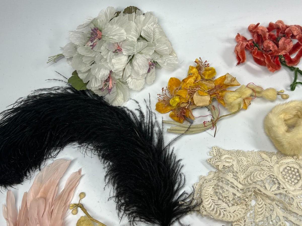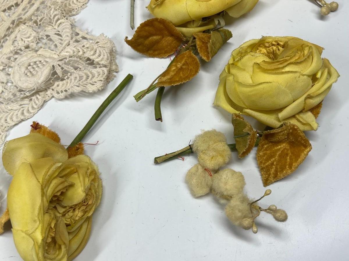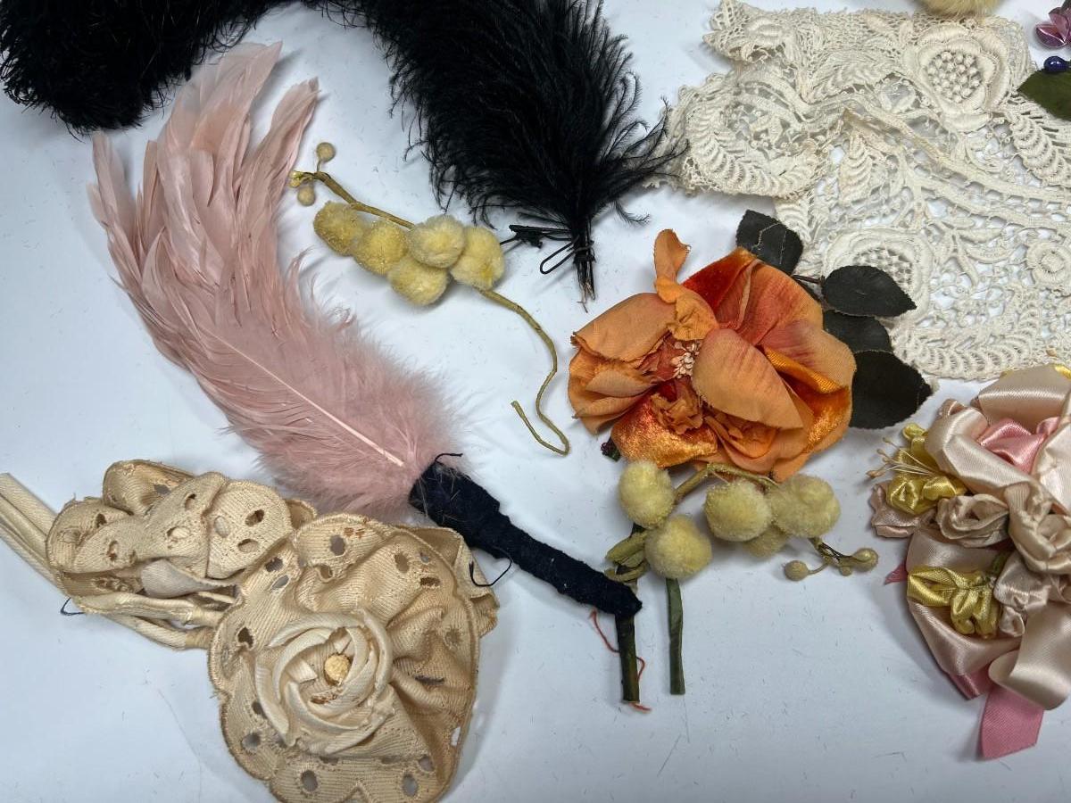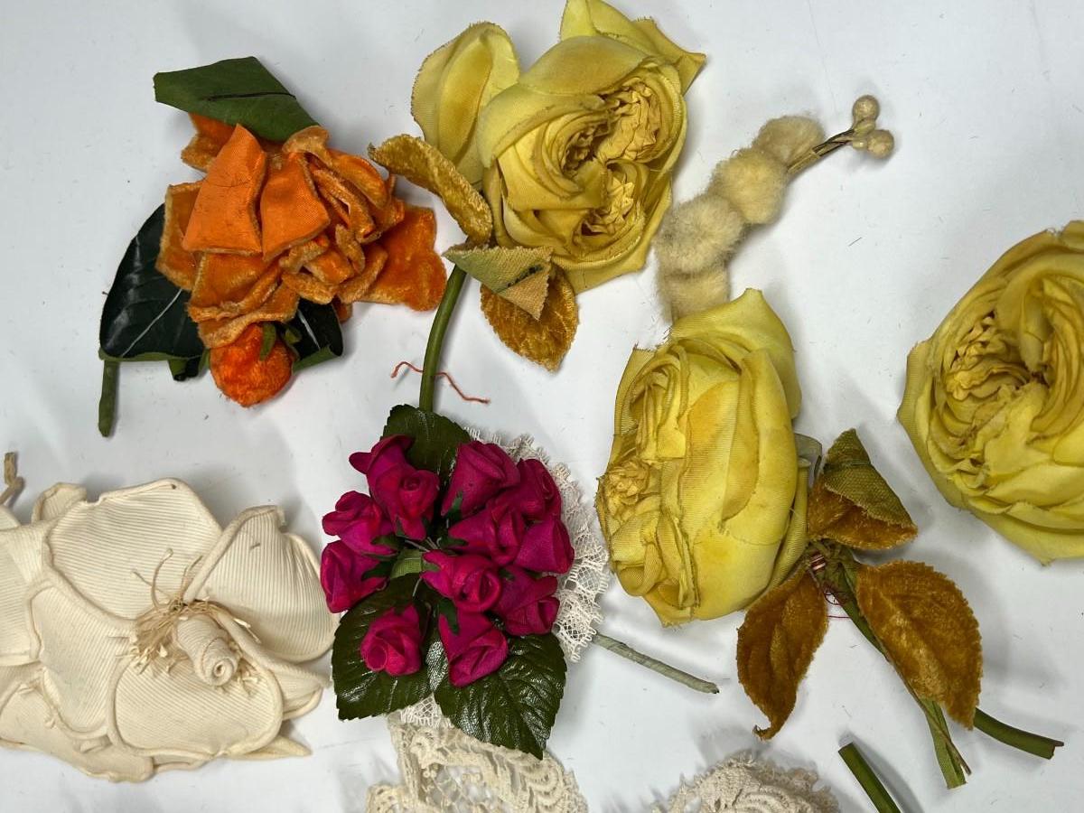Antique Lot of Faux Multi Colored Flowers Lace Fashion Dress Accessories