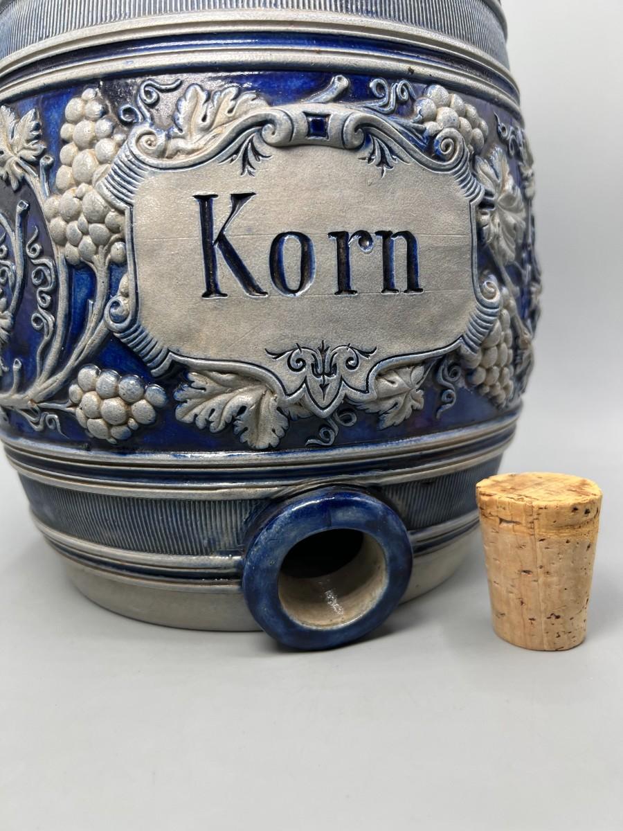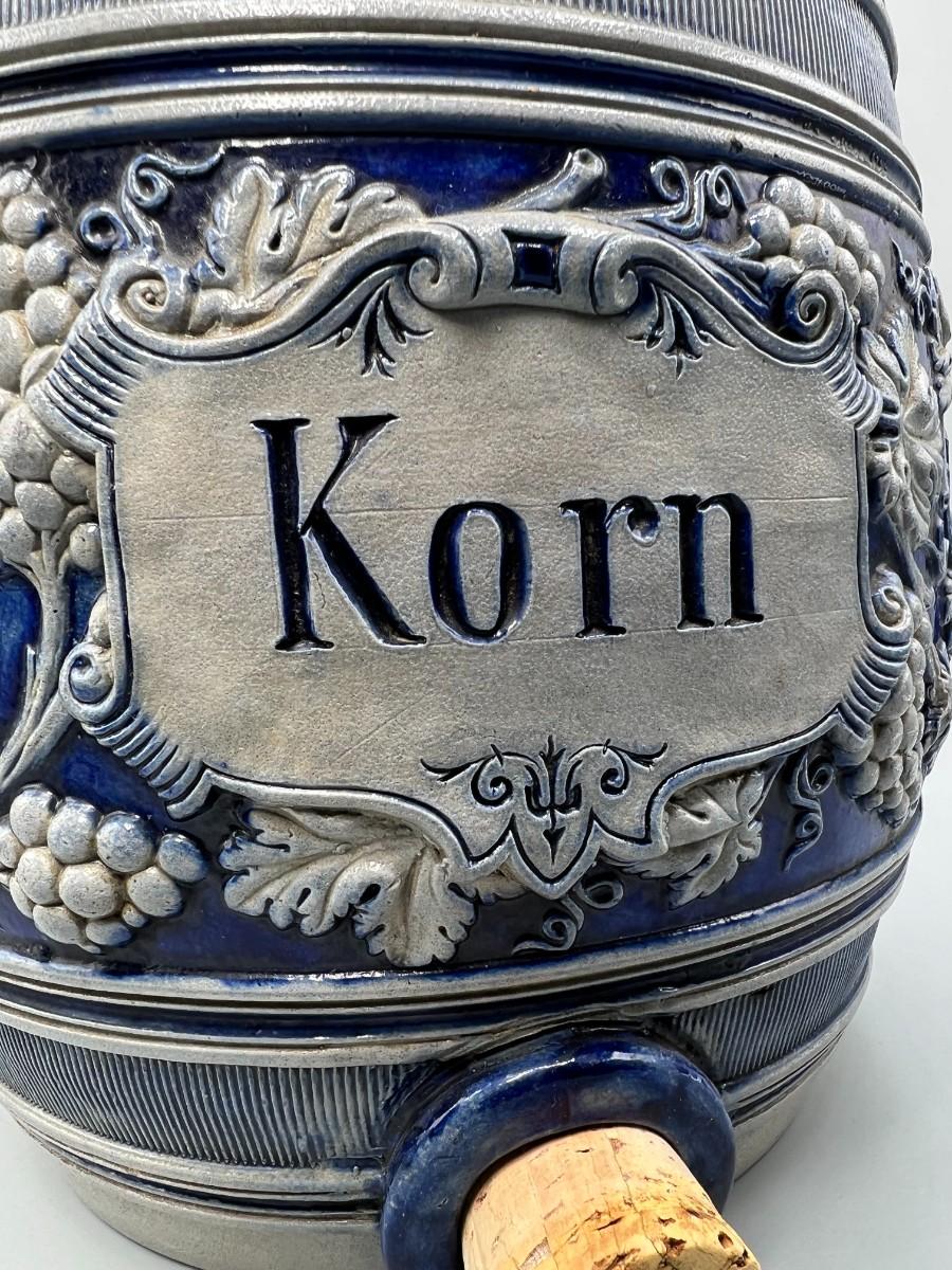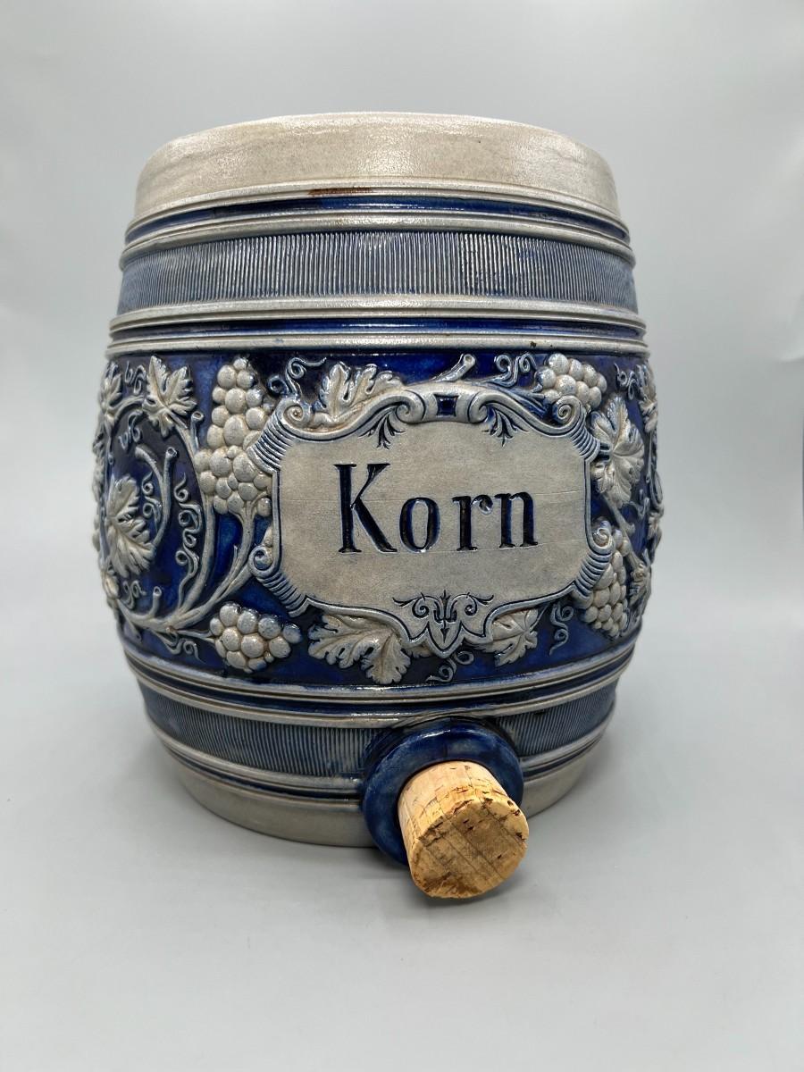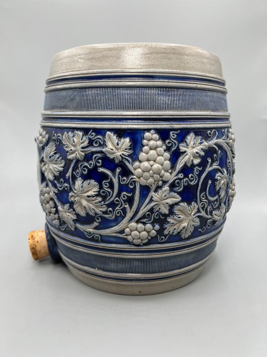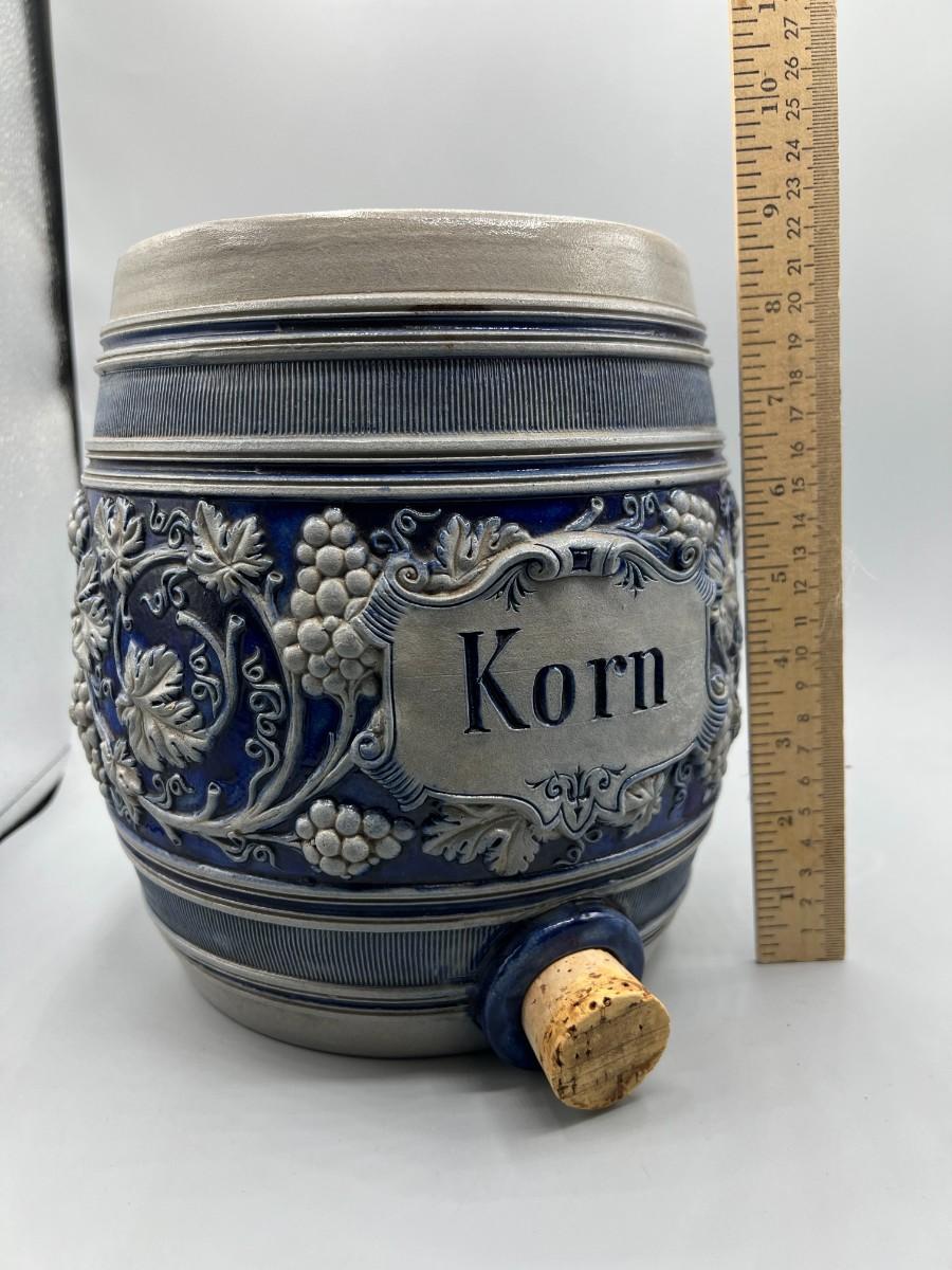 Vintage Korn Wine Grape Leaf Corked Clay Ceramic Wine Barrel