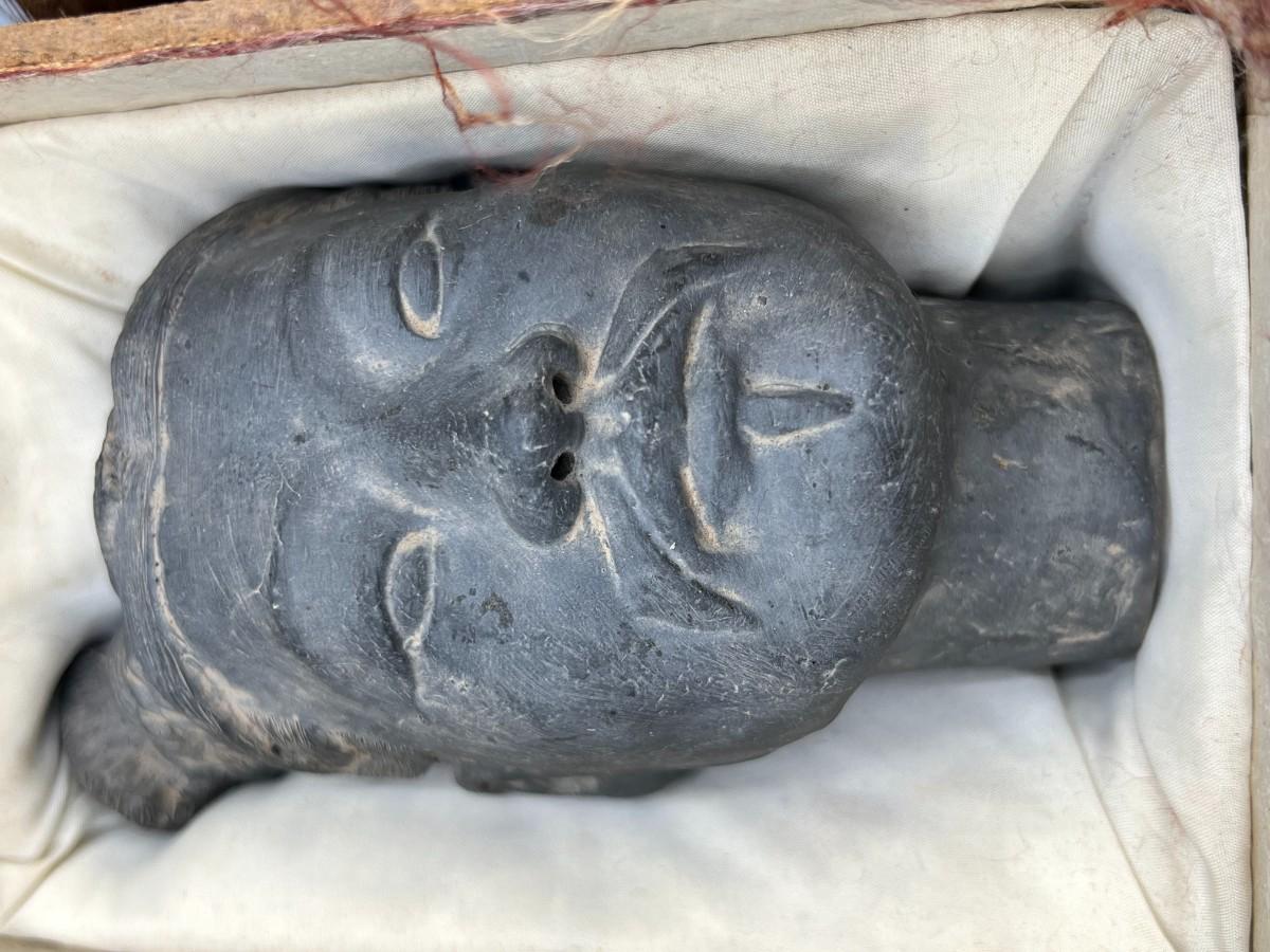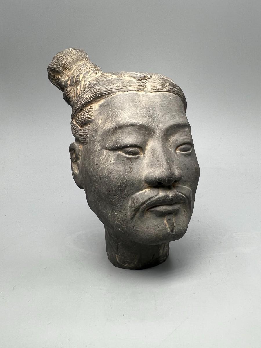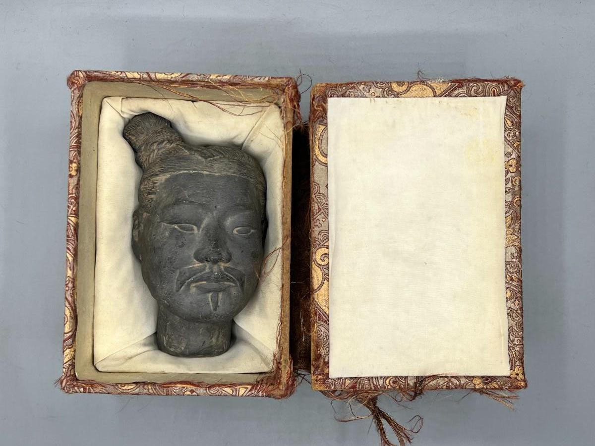 Antique Vintage Terracotta Warrior Head Zhen Figurines Museum Head Displayable Figurine with Box