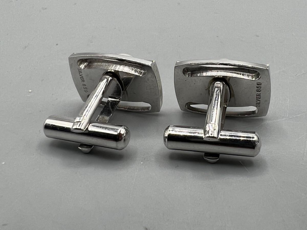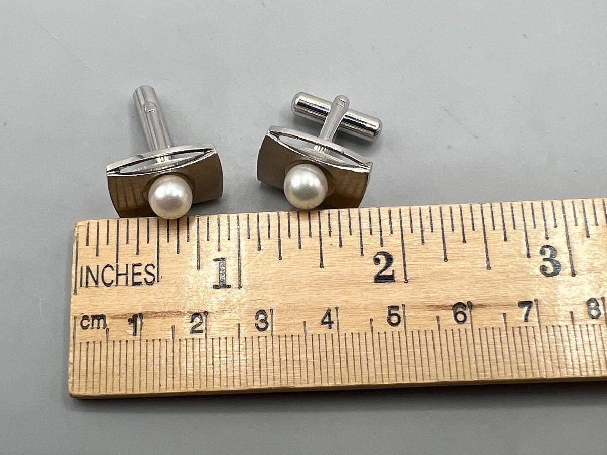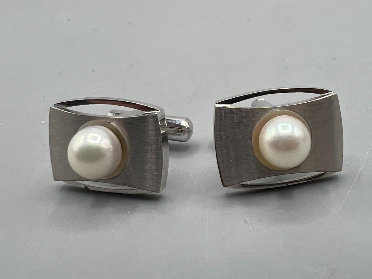 Pair of Retro Art Deco Silver 850 Pearl Cufflinks