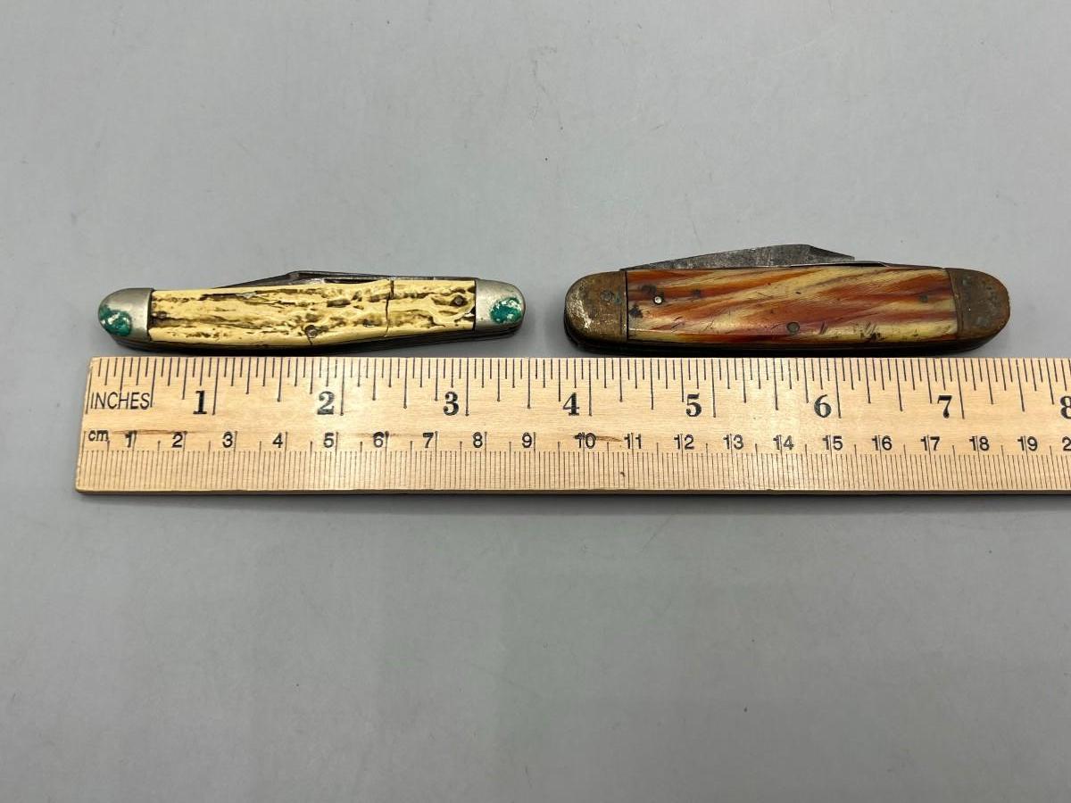 There is wear on both of the knives and is in overall fair condition. Check pictures for more details and for sizing.