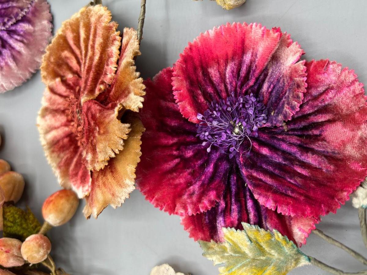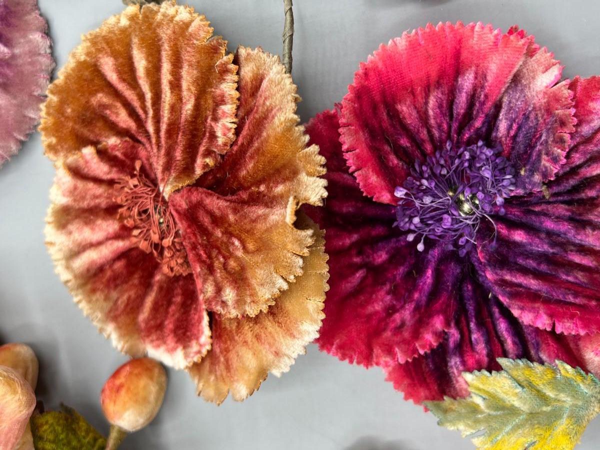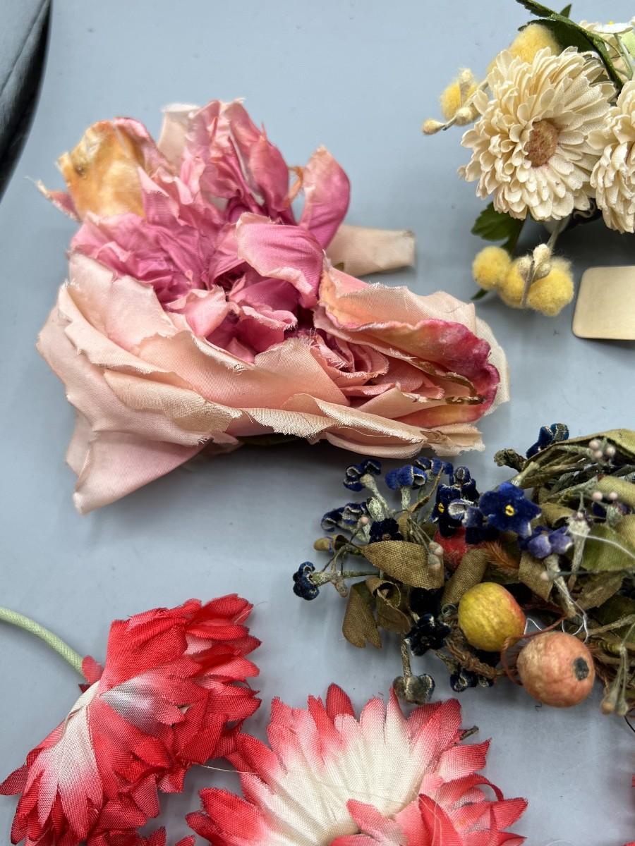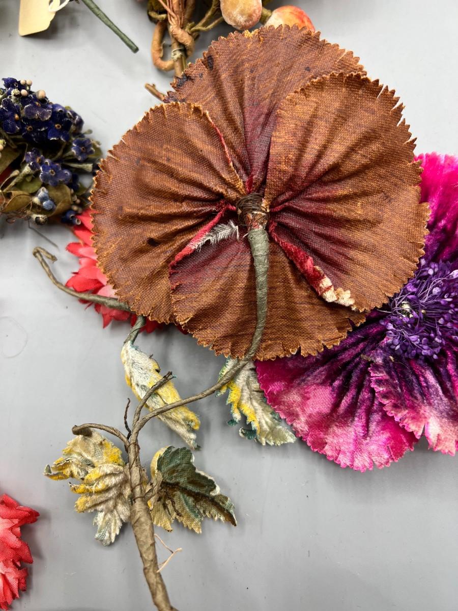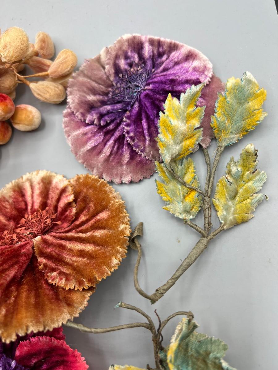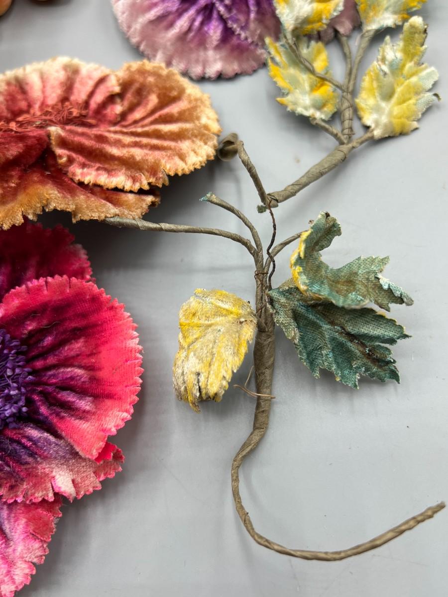 Lot of Vintage Victorian Colorful Fabric Faux Flower Fruit Accessory Hat & Dress Pieces