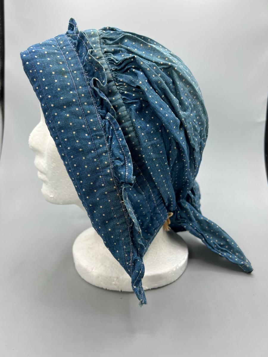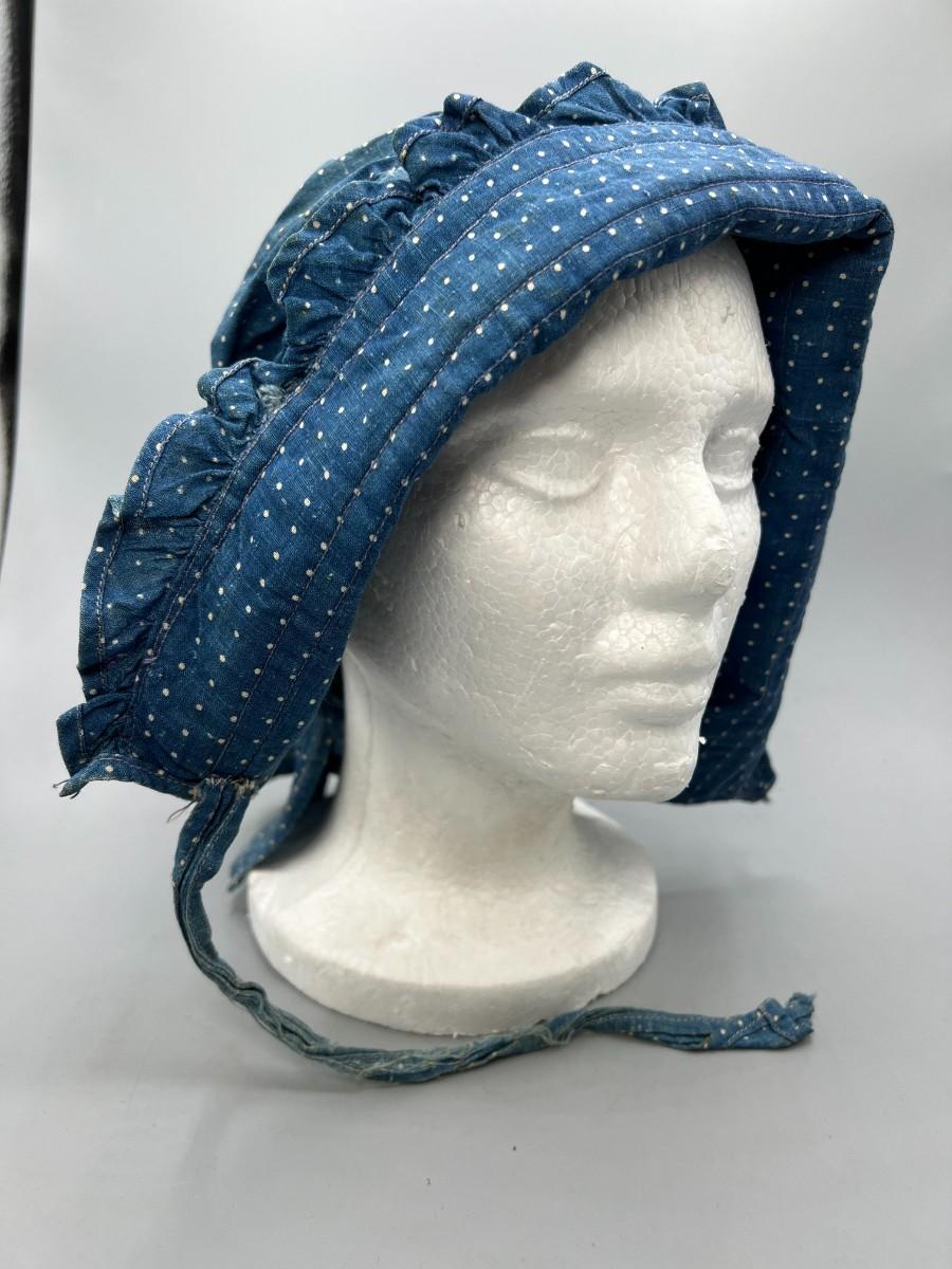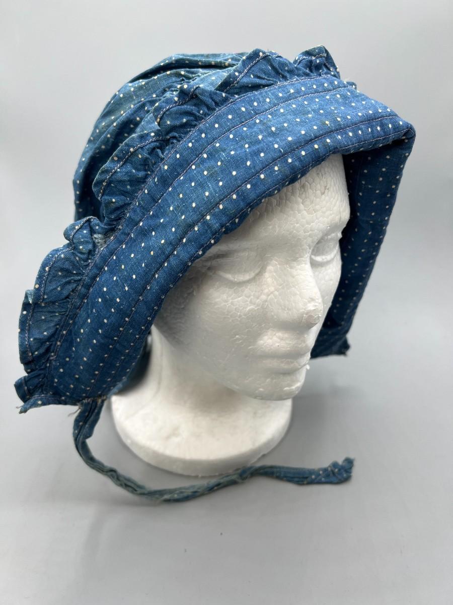 Vintage Blue & White Dot Fabric Prairie Farm Bonnet Headwear