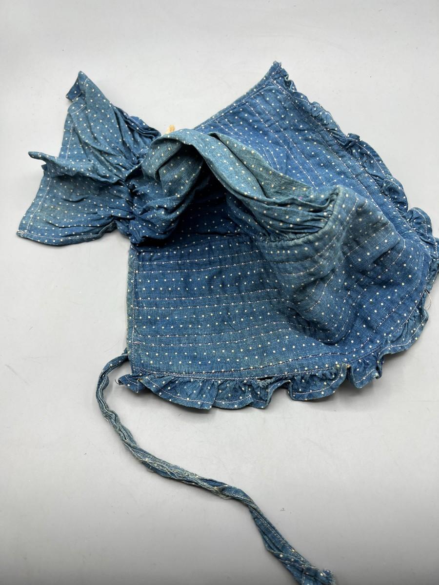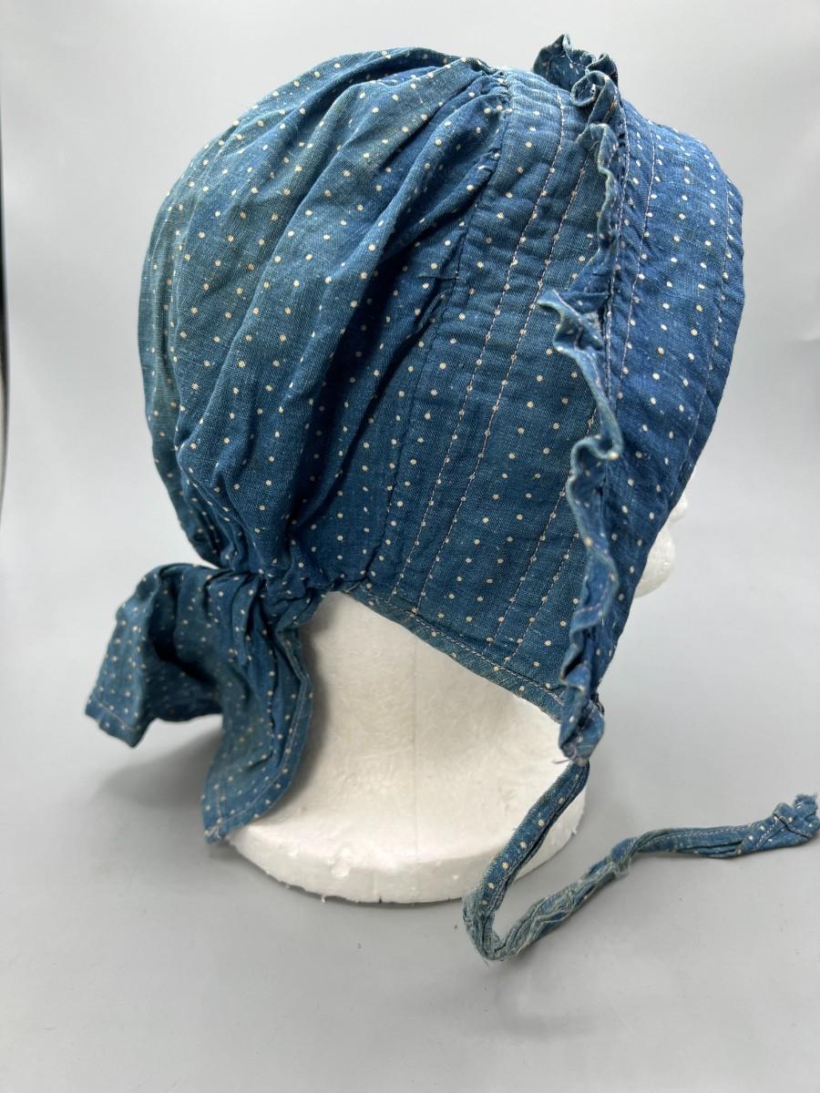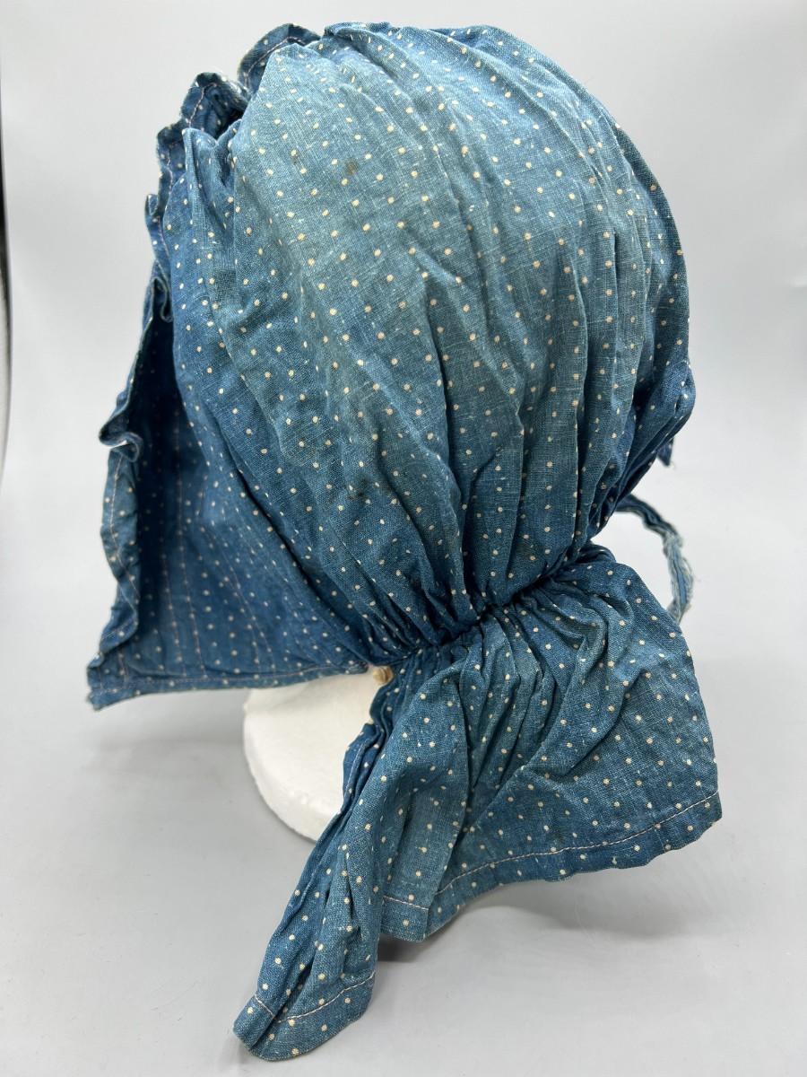 Vintage Blue & White Dot Fabric Prairie Farm Bonnet Headwear