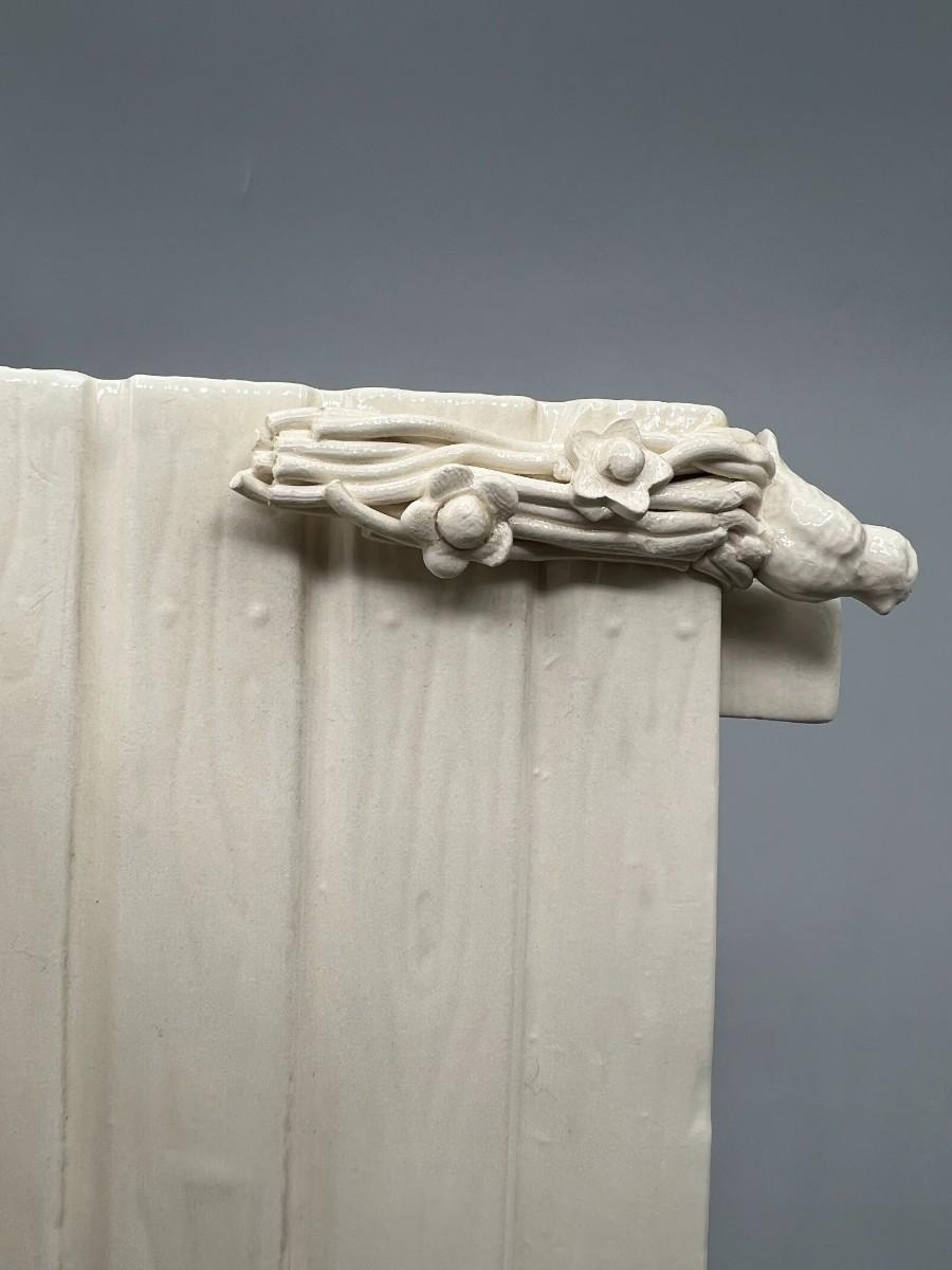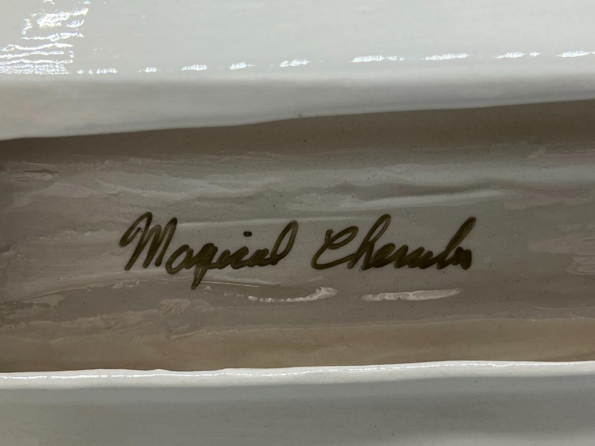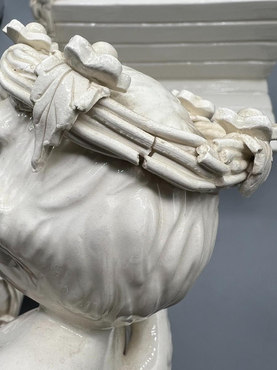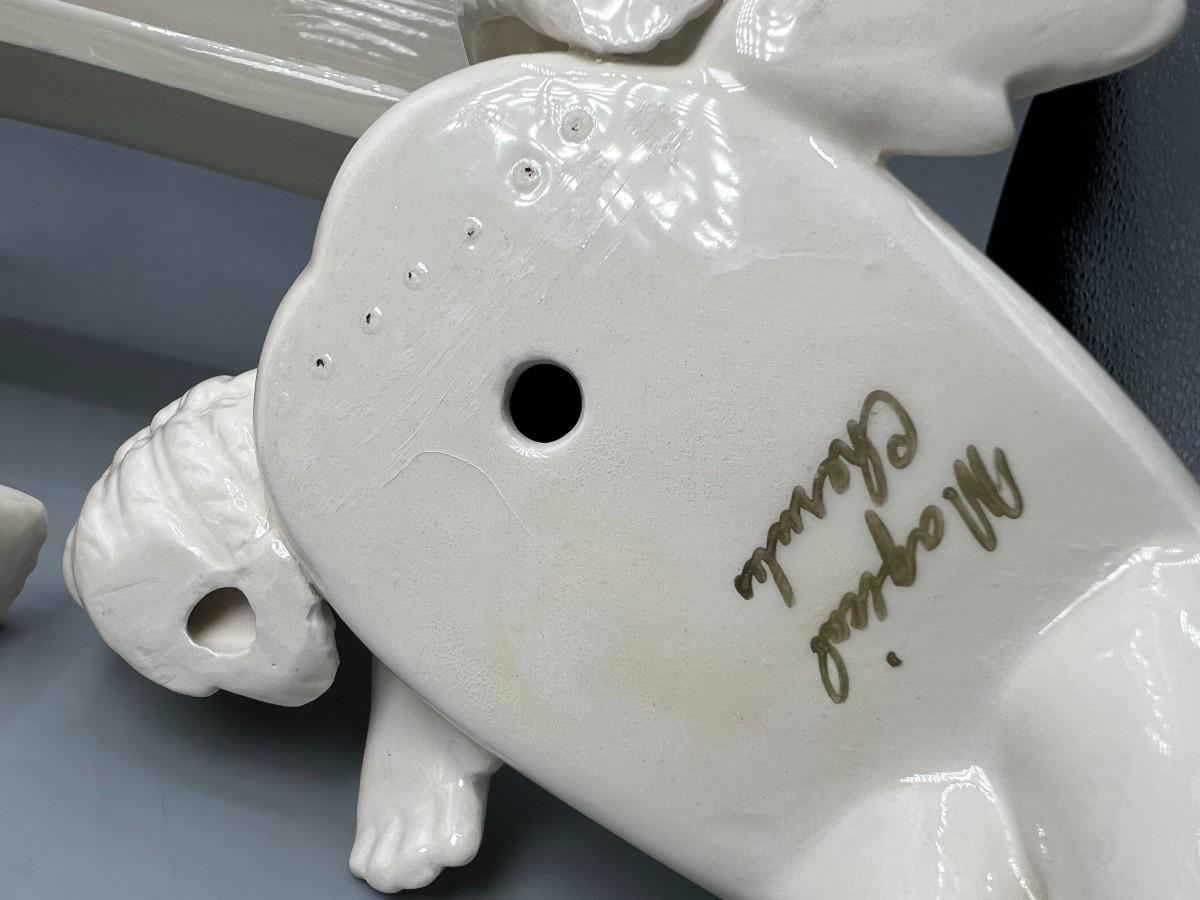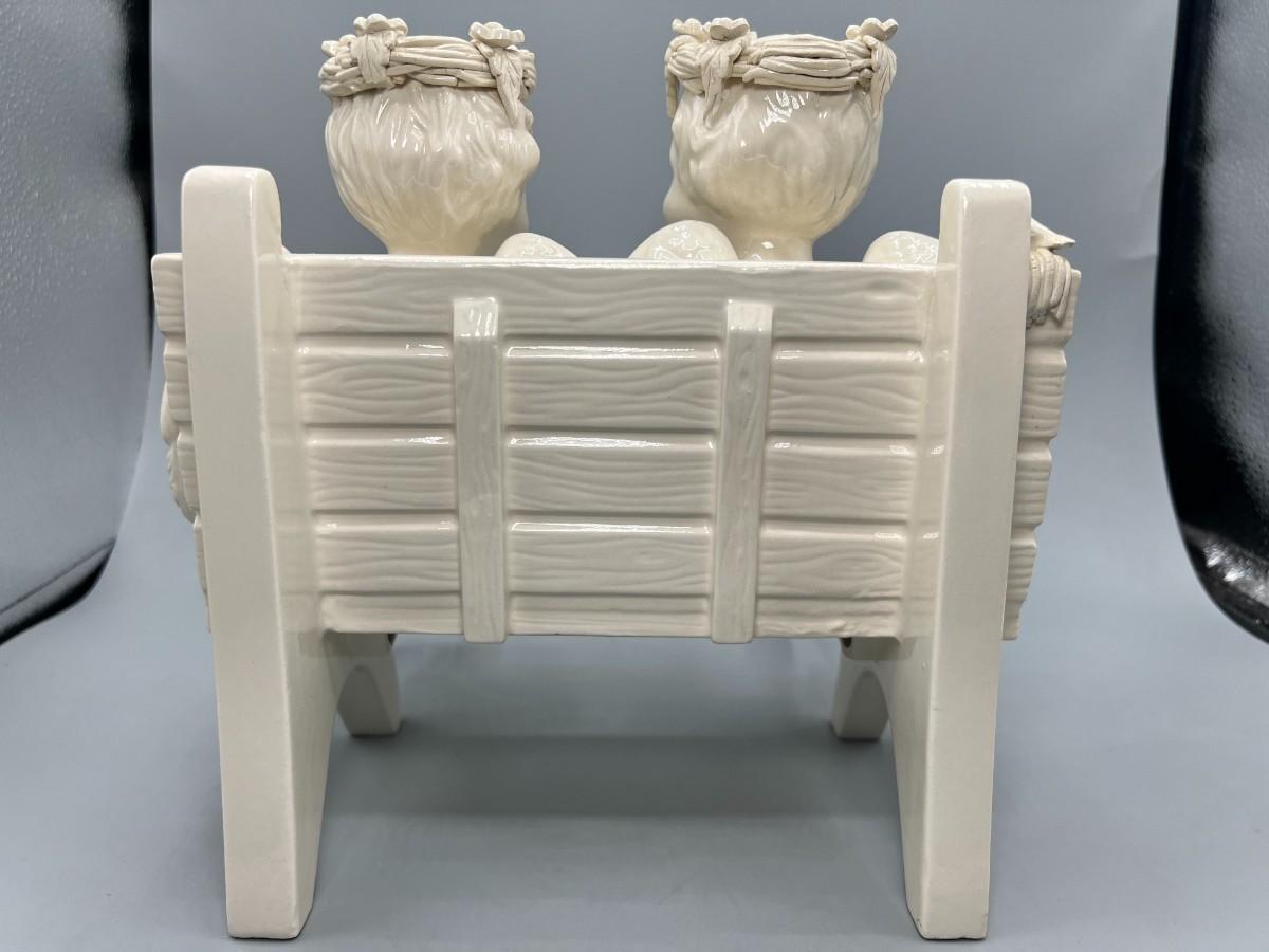 Vintage Ceramic Religious Cherub Angels Sitting on Bench Medium Sized Signed Three Piece Figurine Statue
