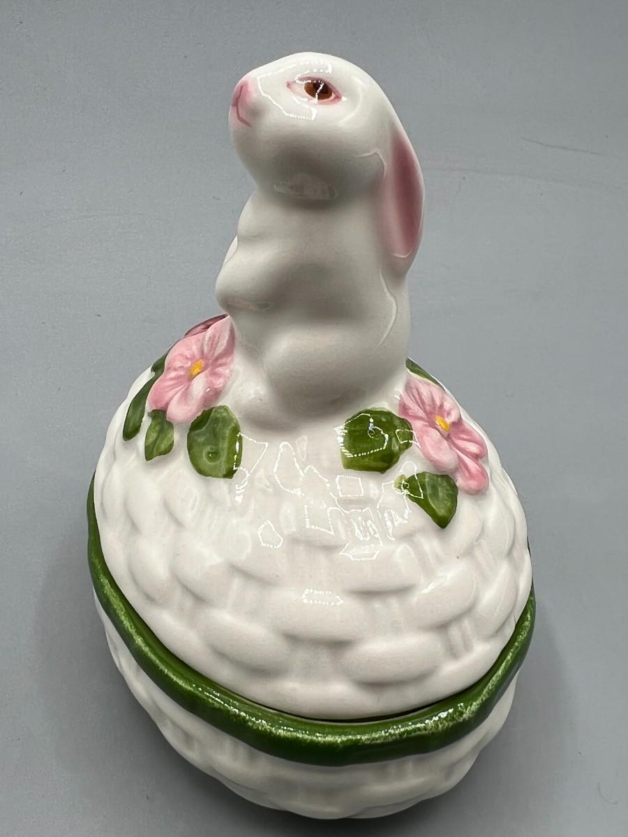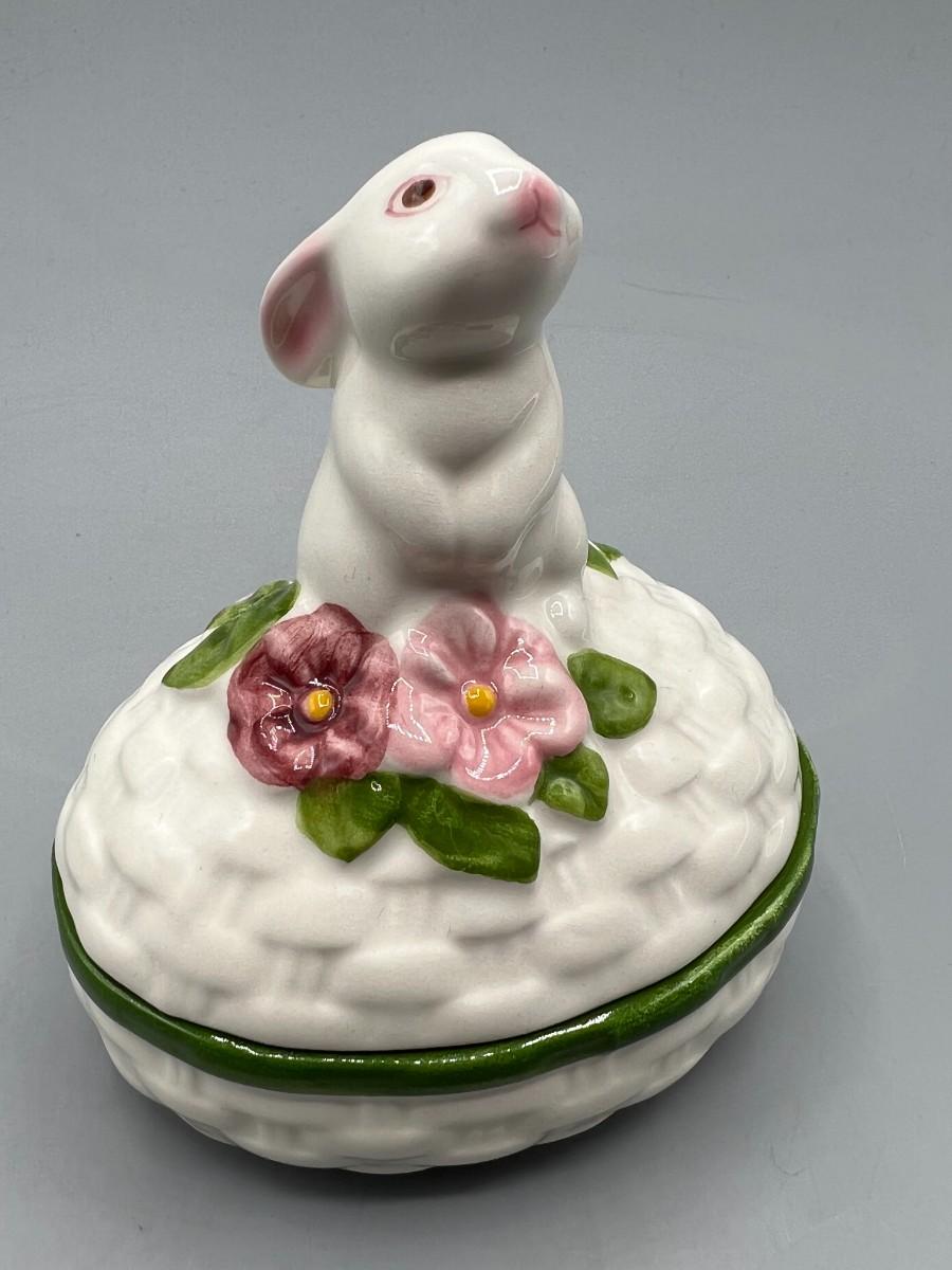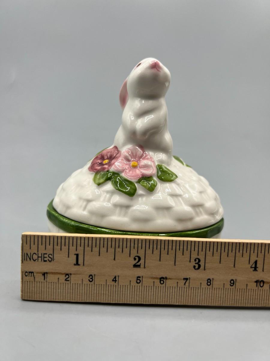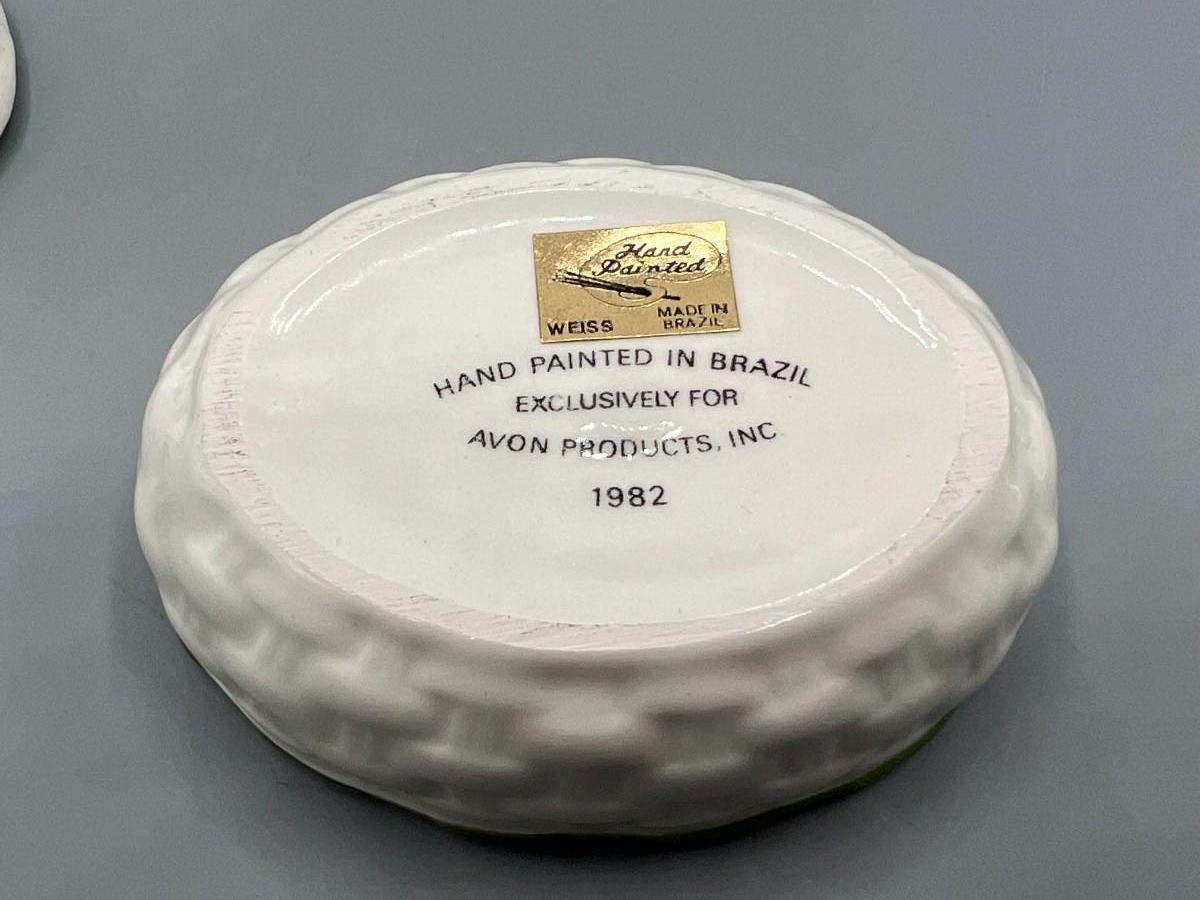 Vintage Avon Weiss Hand Painted Floral Bunny Rabbit Trinket Jewelry Snuff Box