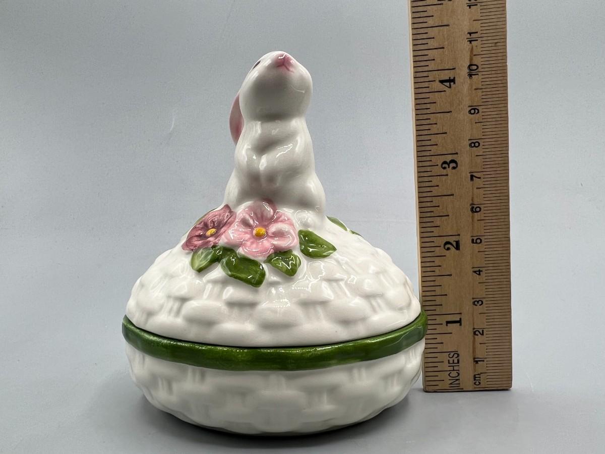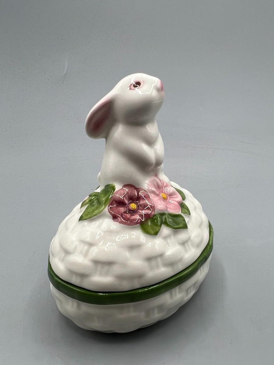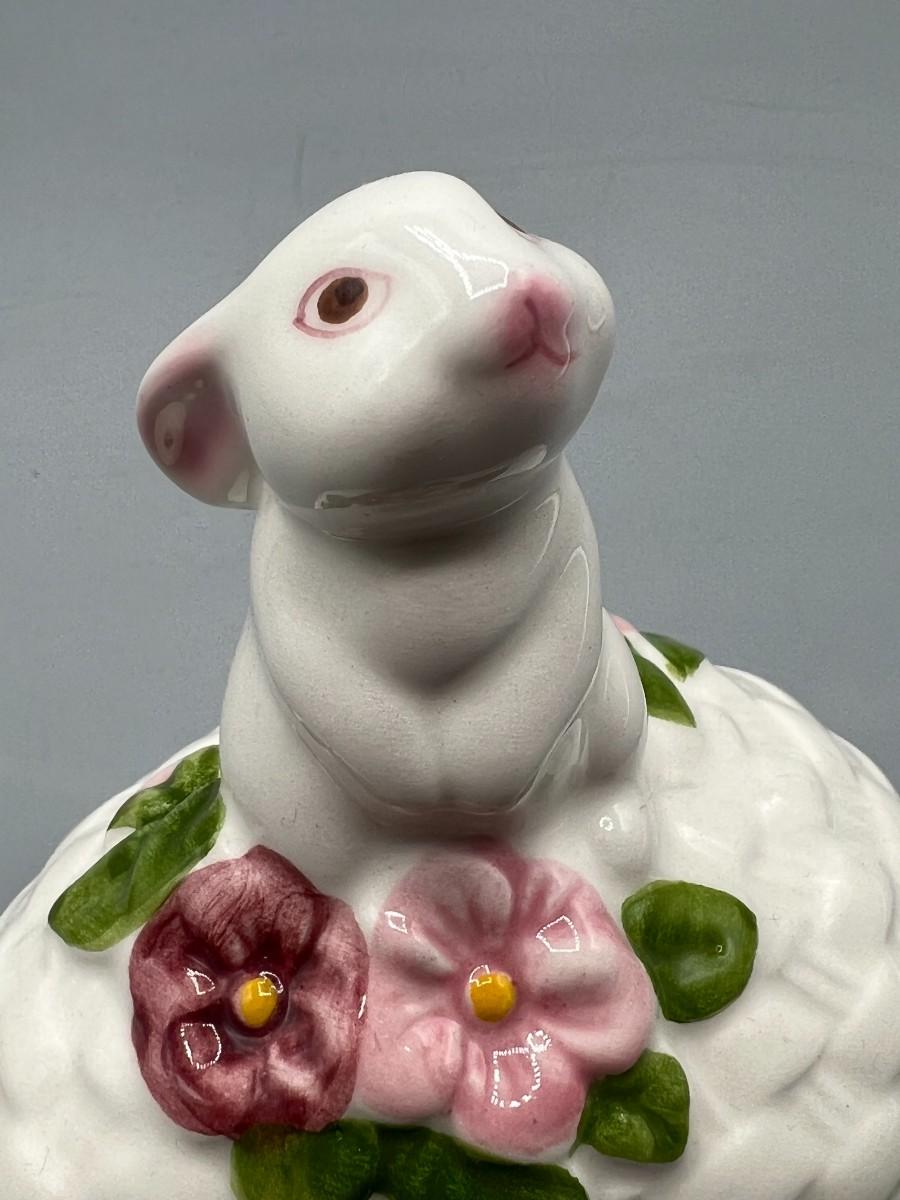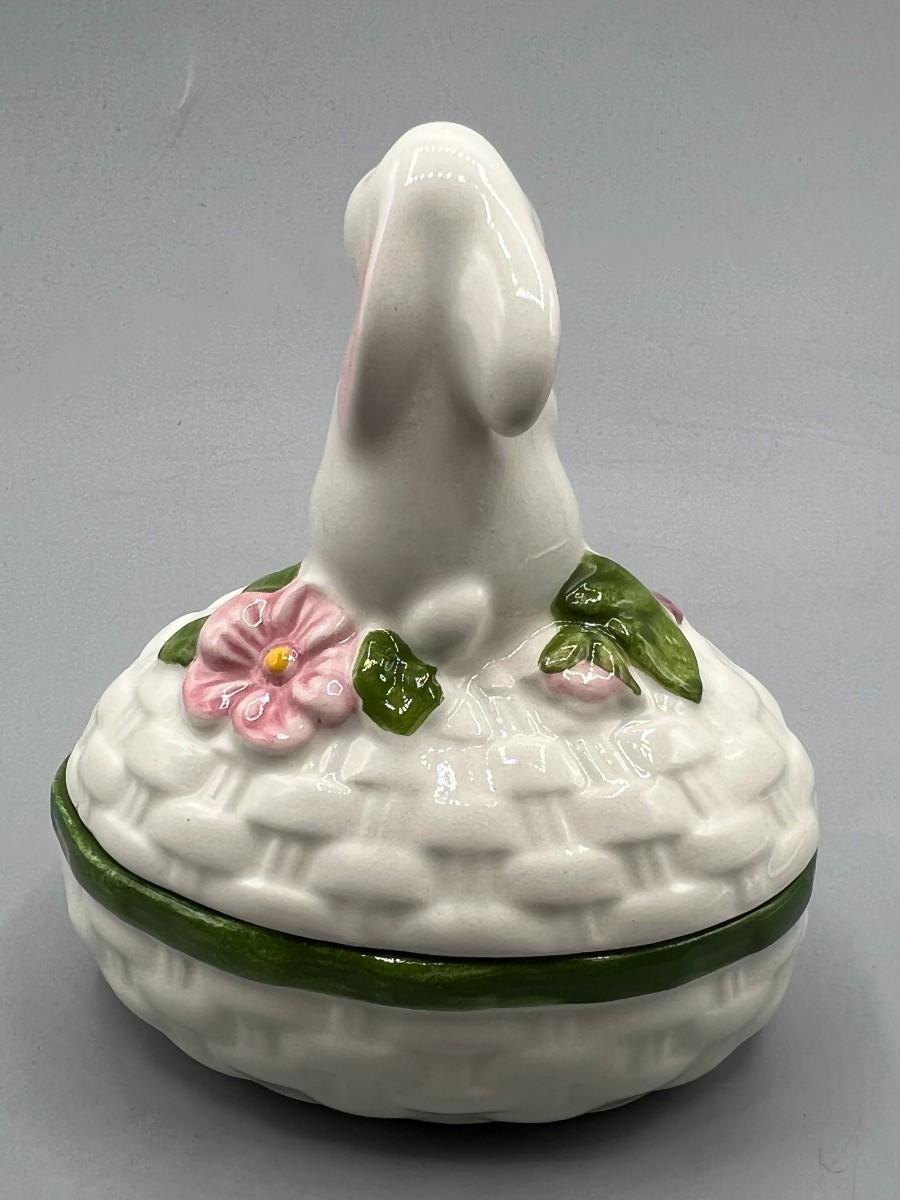 Vintage Avon Weiss Hand Painted Floral Bunny Rabbit Trinket Jewelry Snuff Box