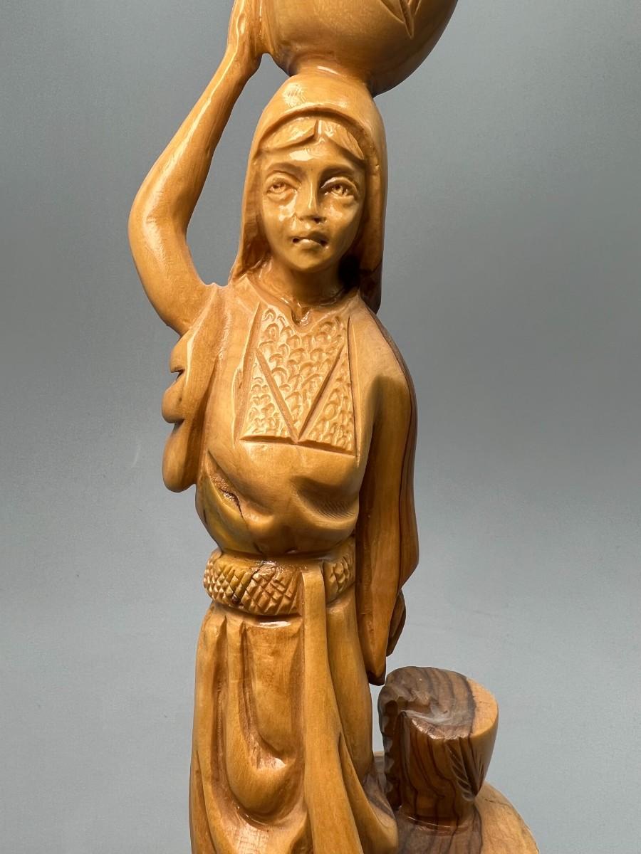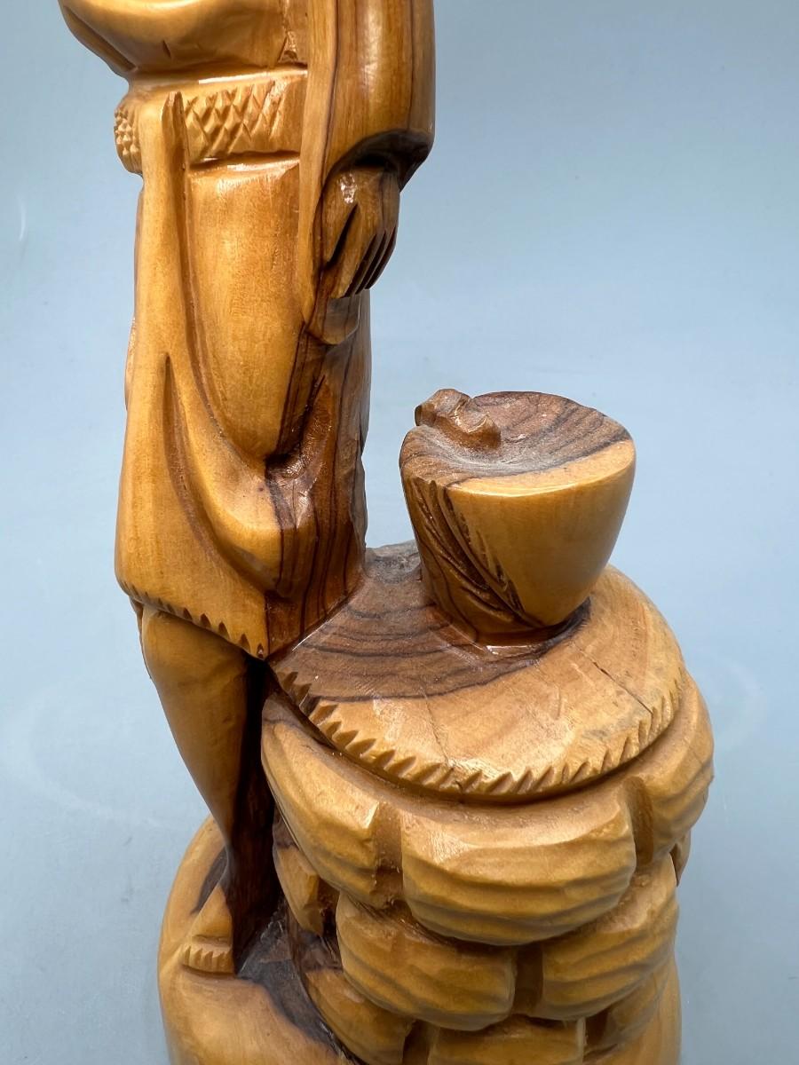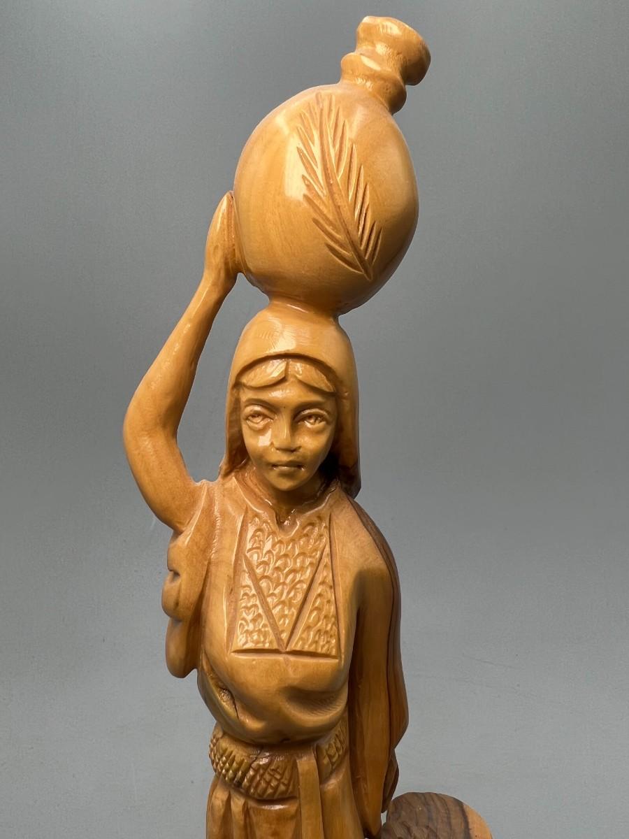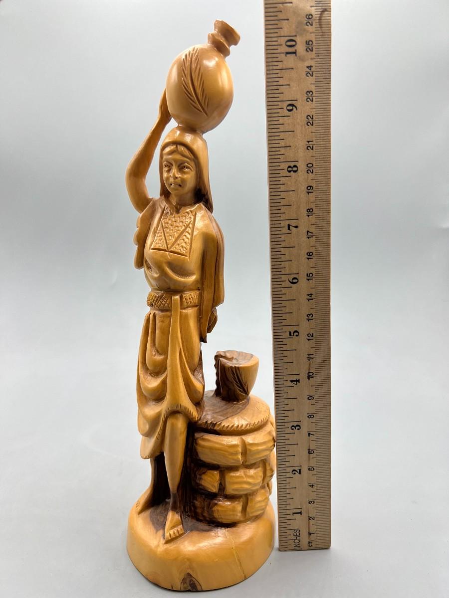 Retro Carved Wood Biblical Holy Land Woman Carrying Jug Figurine Statue
