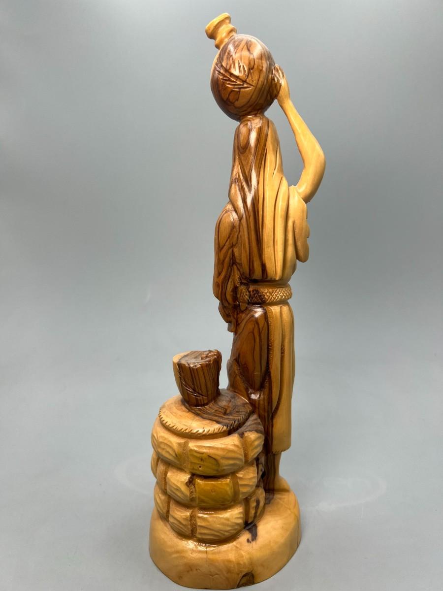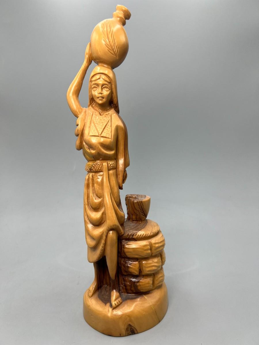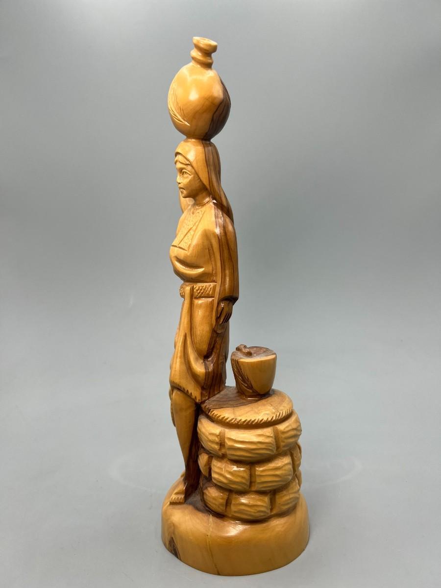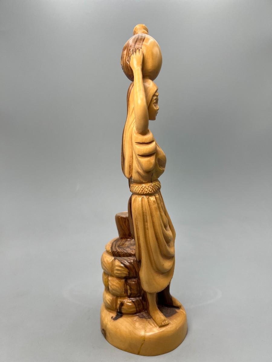 Retro Carved Wood Biblical Holy Land Woman Carrying Jug Figurine Statue