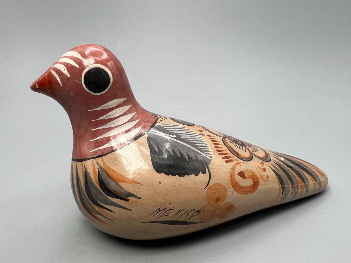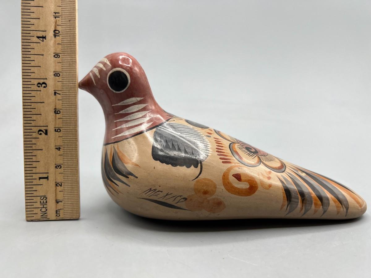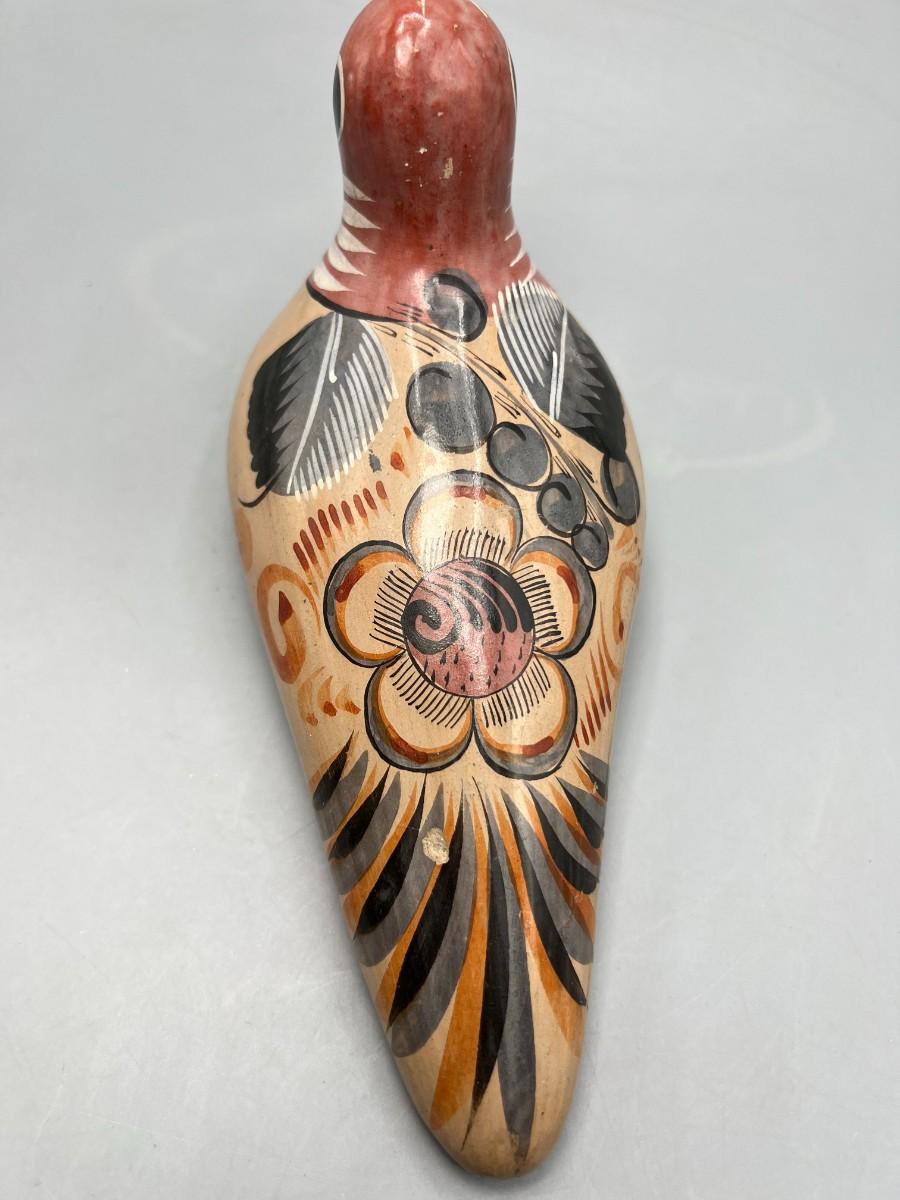 Vintage Folk Art Mexican Clay Pottery Hand Painted Souvenir Bird