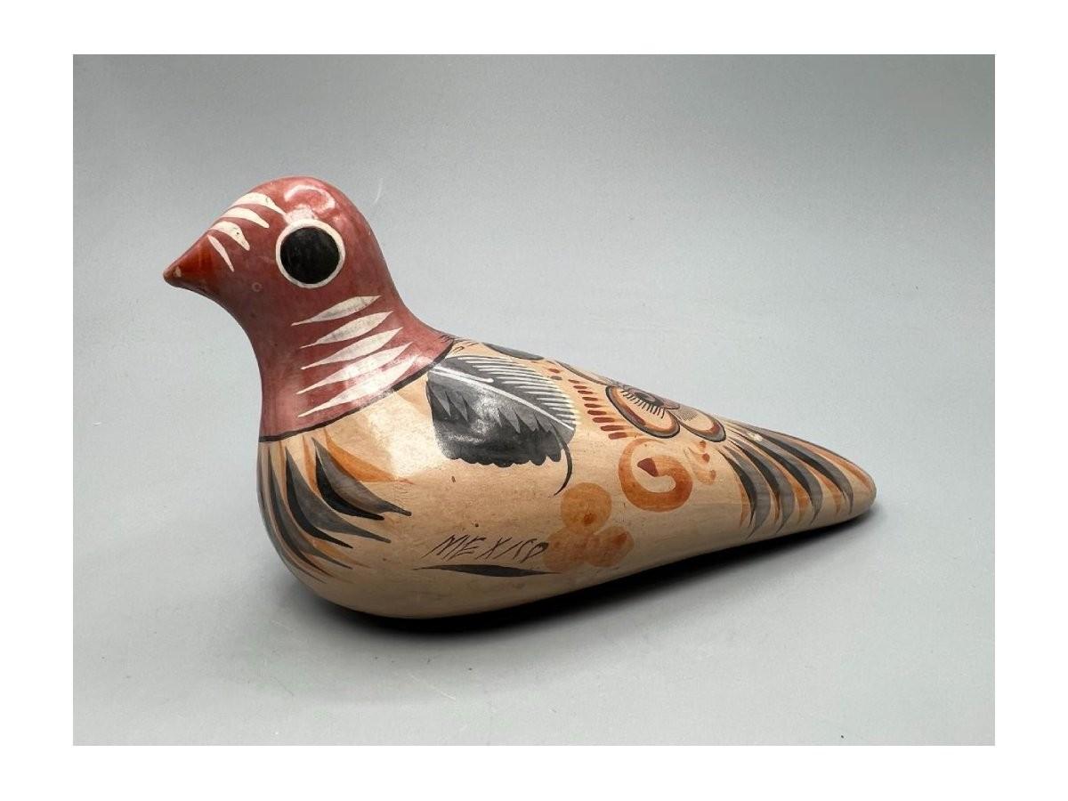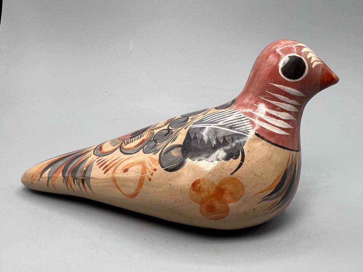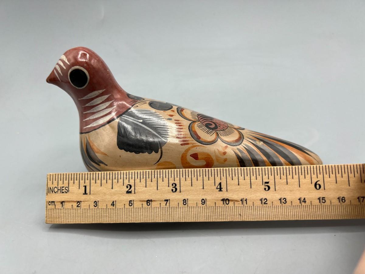 Vintage Folk Art Mexican Clay Pottery Hand Painted Souvenir Bird