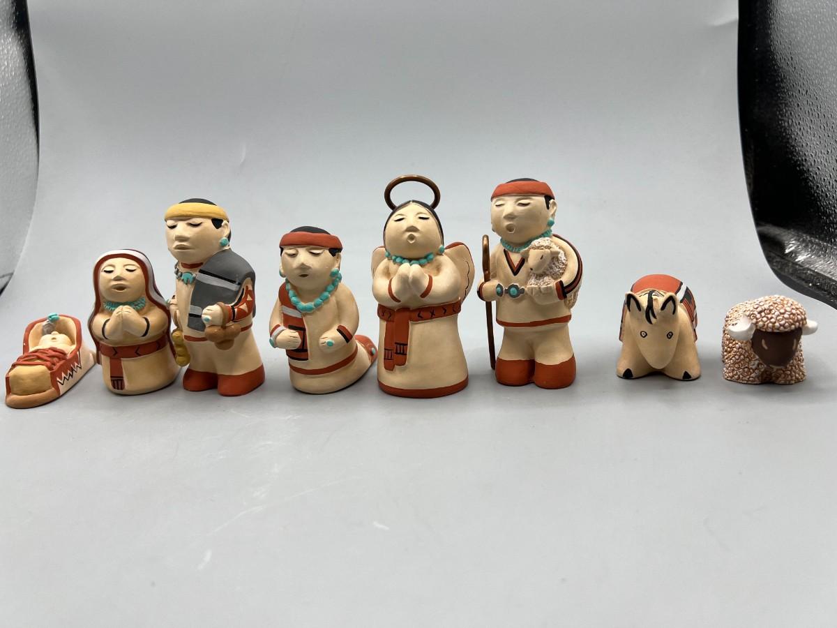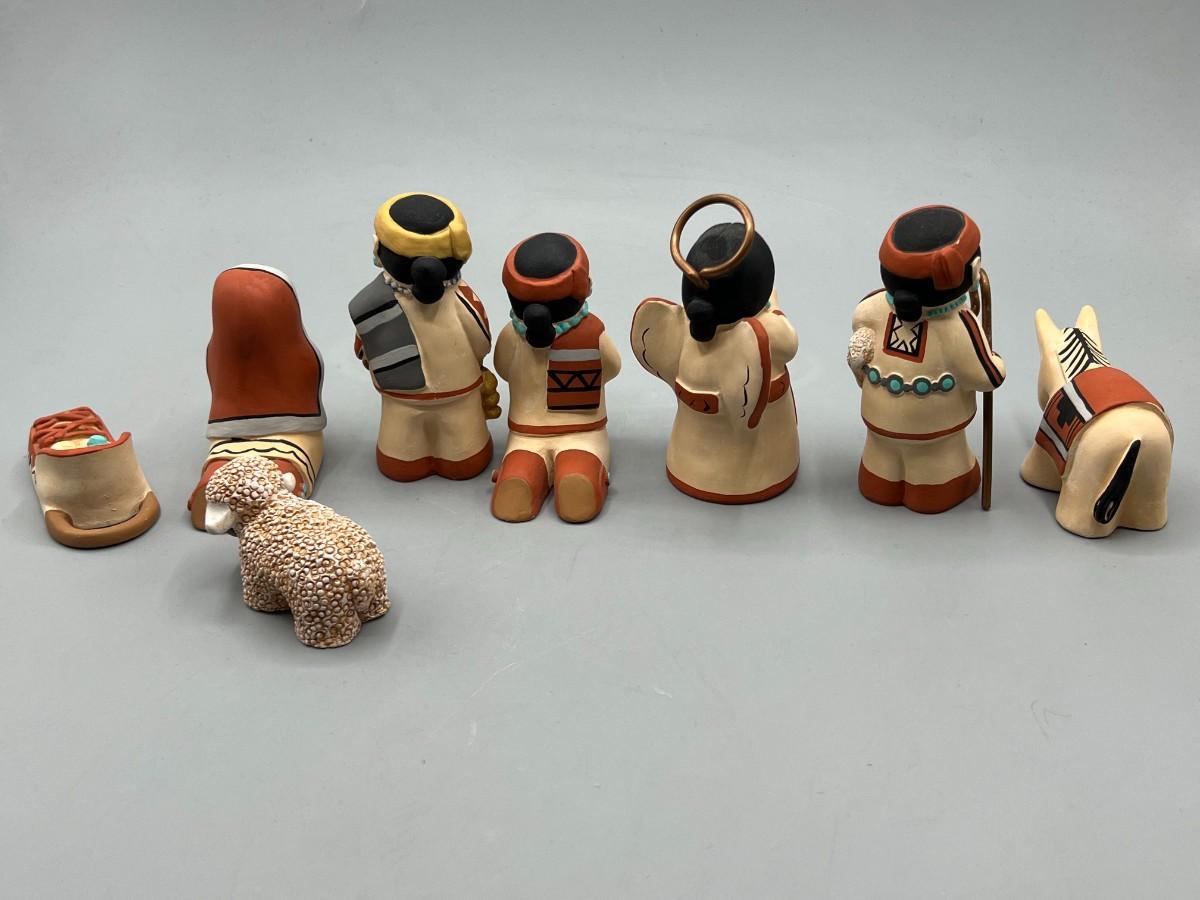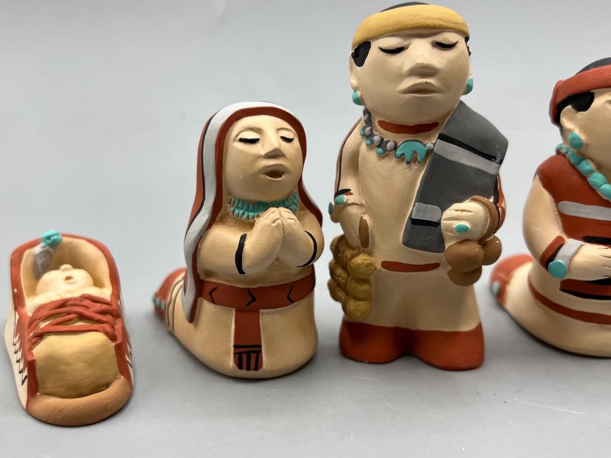 Vintage Teissedre Signed Clay Native American Pueblo Religious Nativity Set