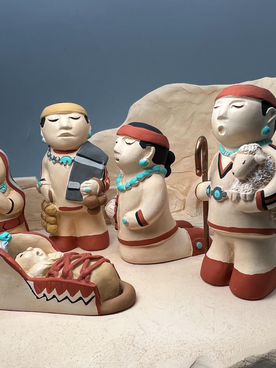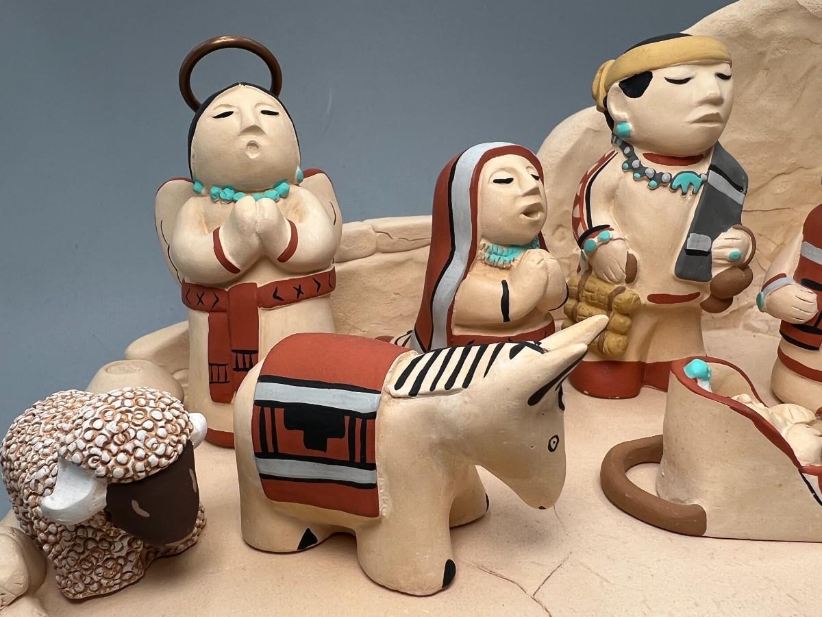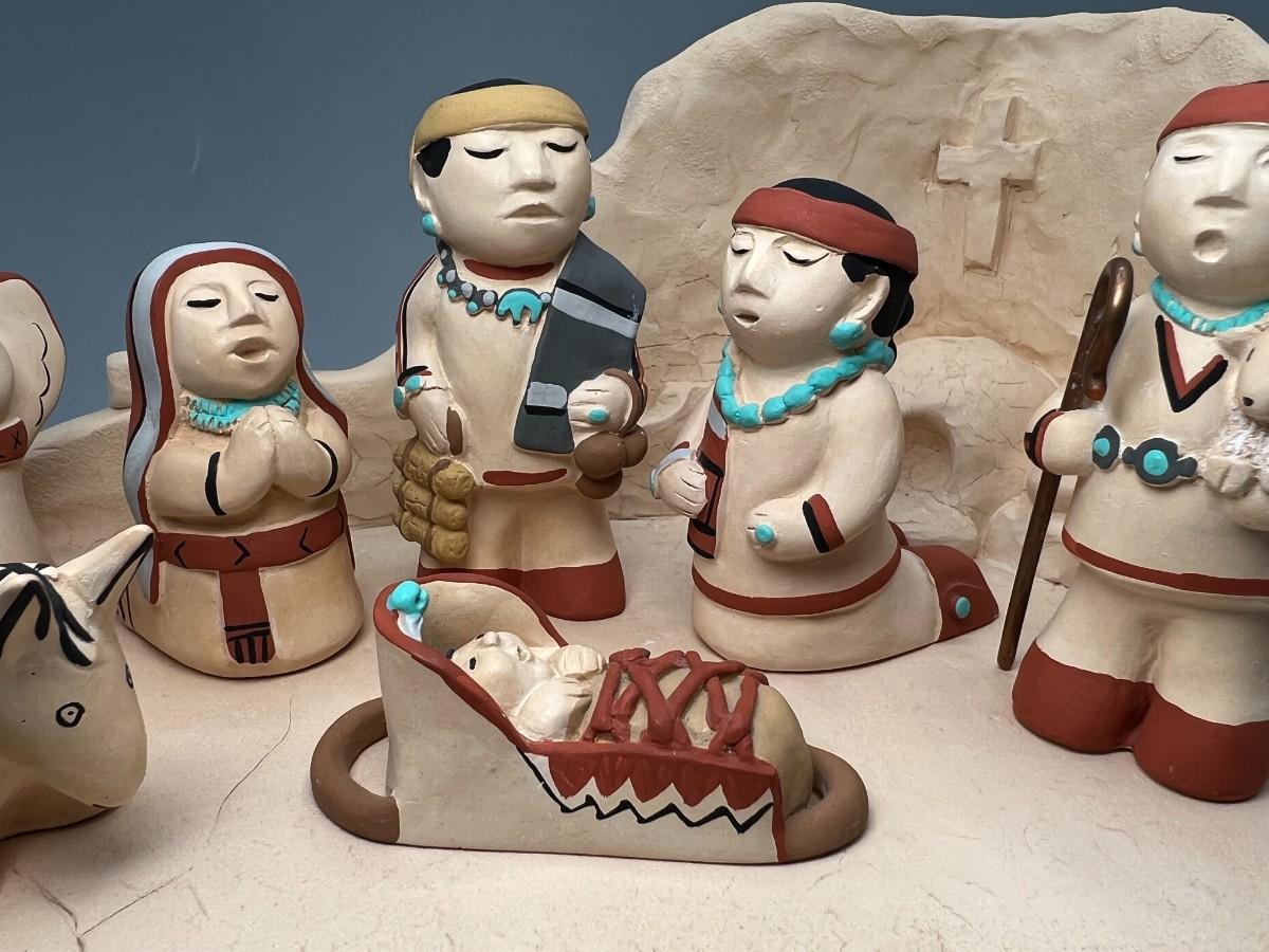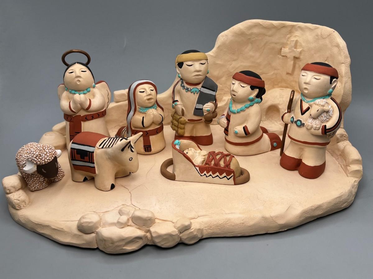 Vintage Teissedre Signed Clay Native American Pueblo Religious Nativity Set