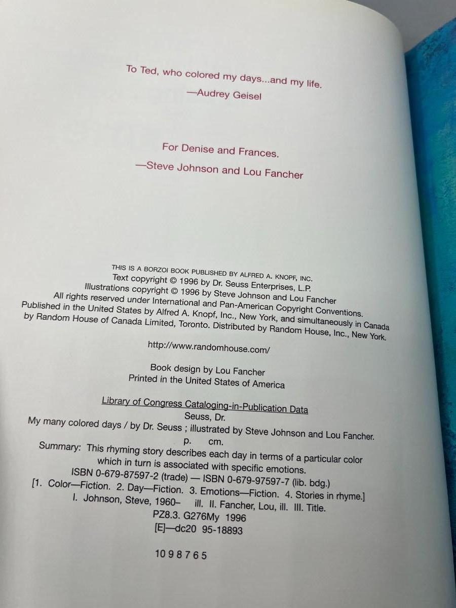 My Many Colored Days by Dr. Seuss Illustrated Children's Hardcover Book