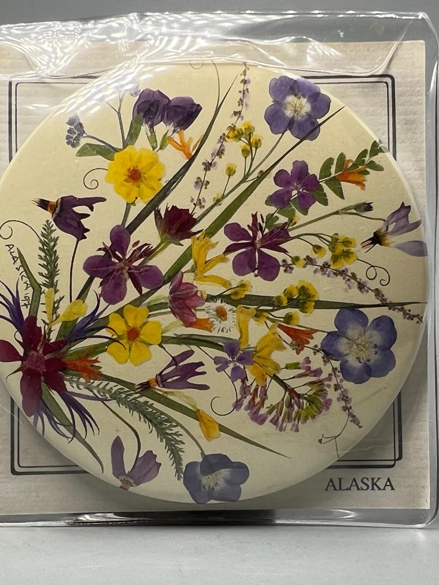 Alaska Wildflower Designs Lithographed Pocket Makeup Mirror