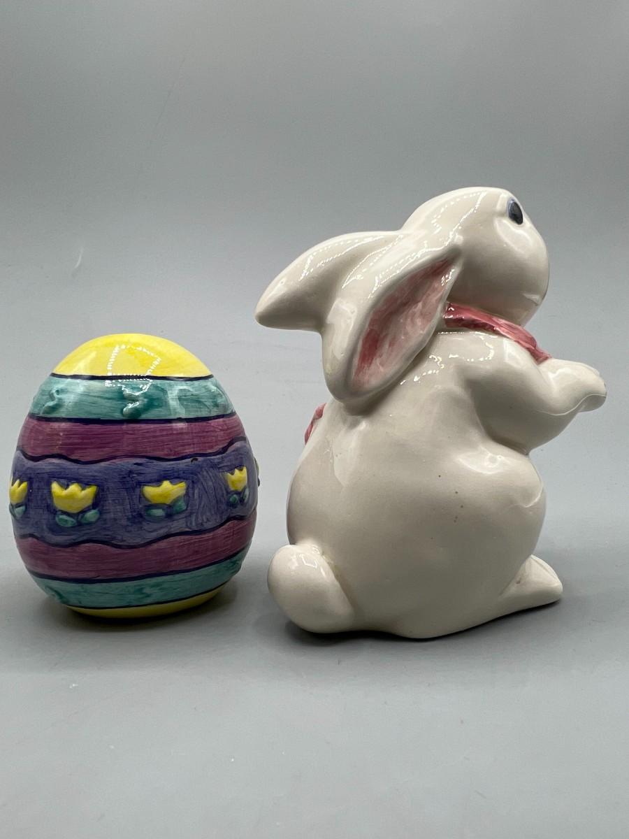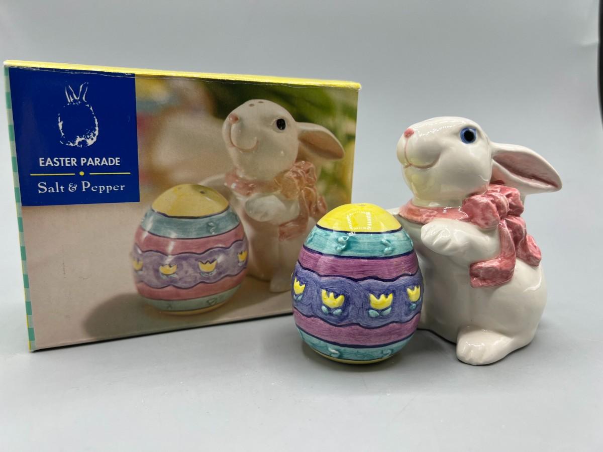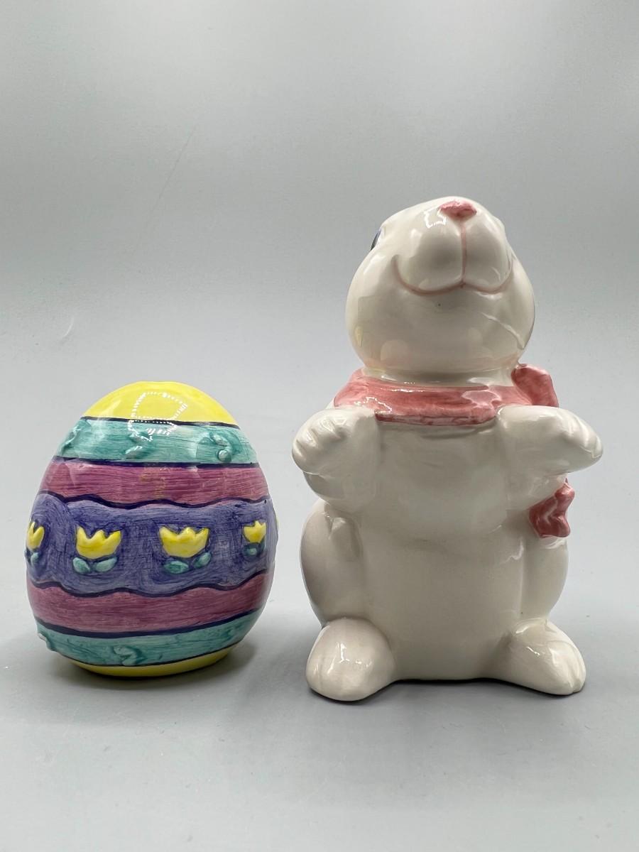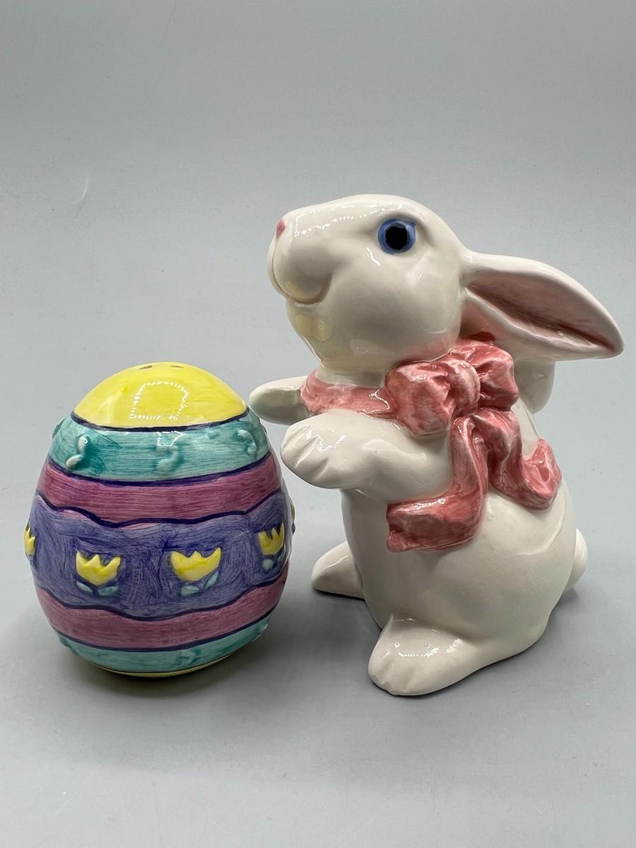 Retro Mervyn's Easter Parade Easter Bunny & Colorful Egg Salt & Pepper Shaker