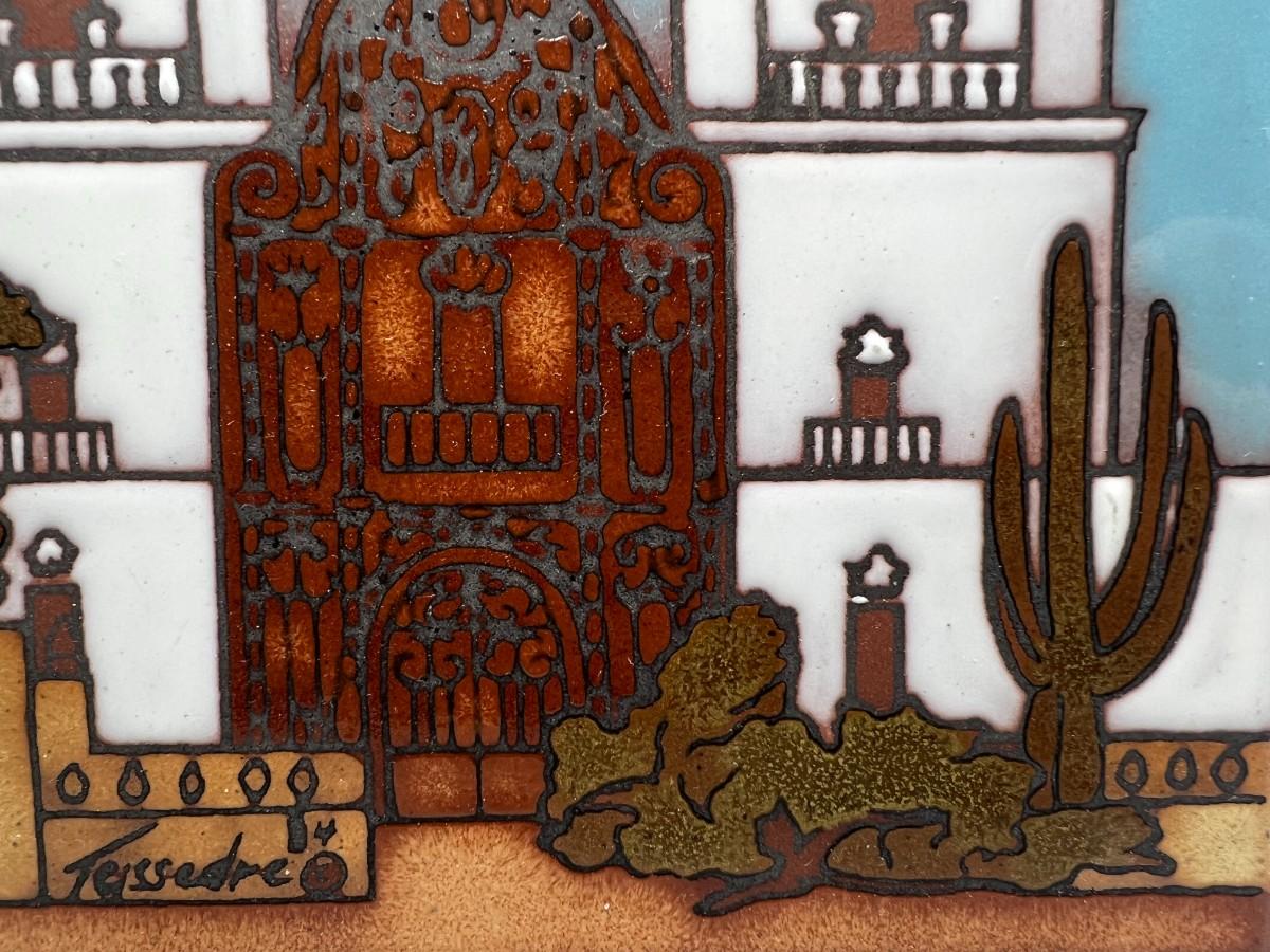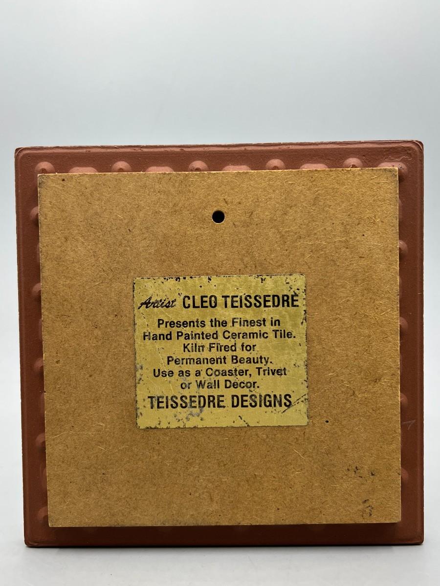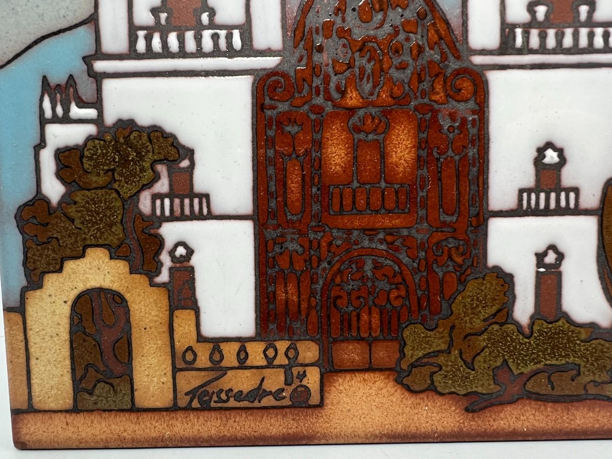 Vintage Cleo Teissedre Hand Painted Spanish Church Ceramic Art Tile Coaster Trivet Wall Decor