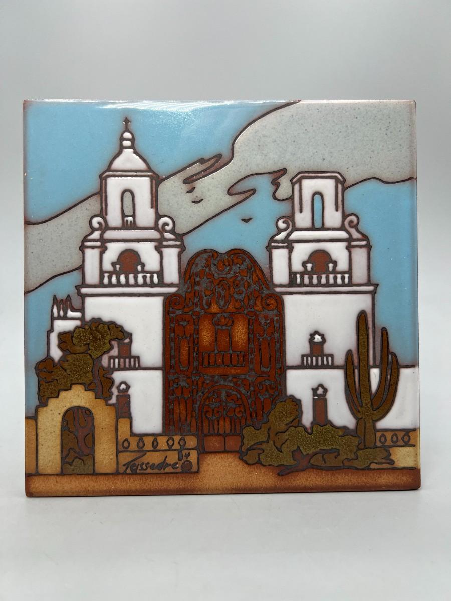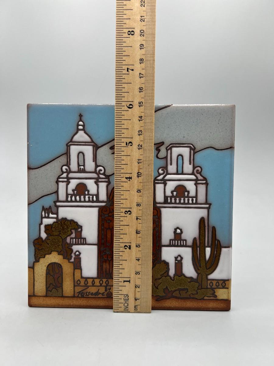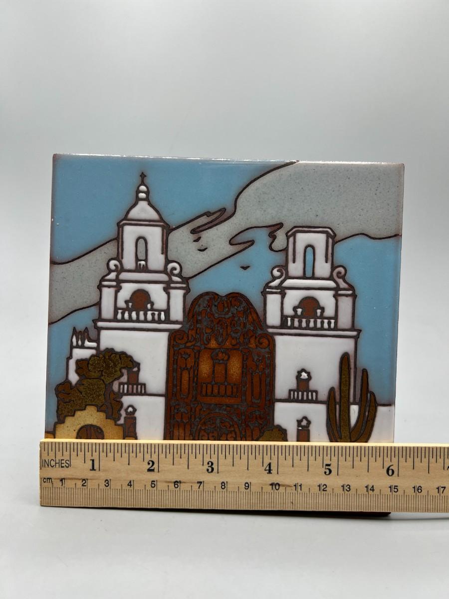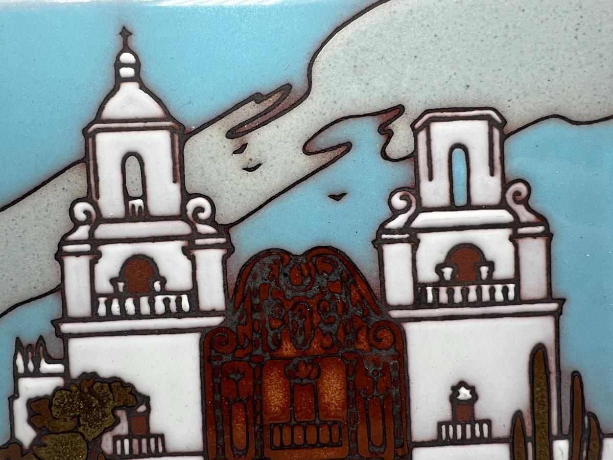 Vintage Cleo Teissedre Hand Painted Spanish Church Ceramic Art Tile Coaster Trivet Wall Decor