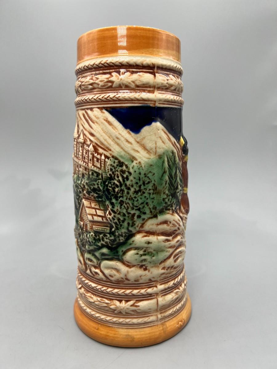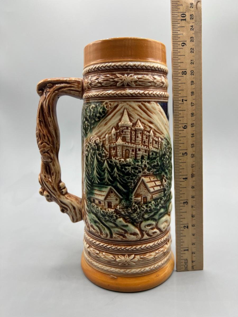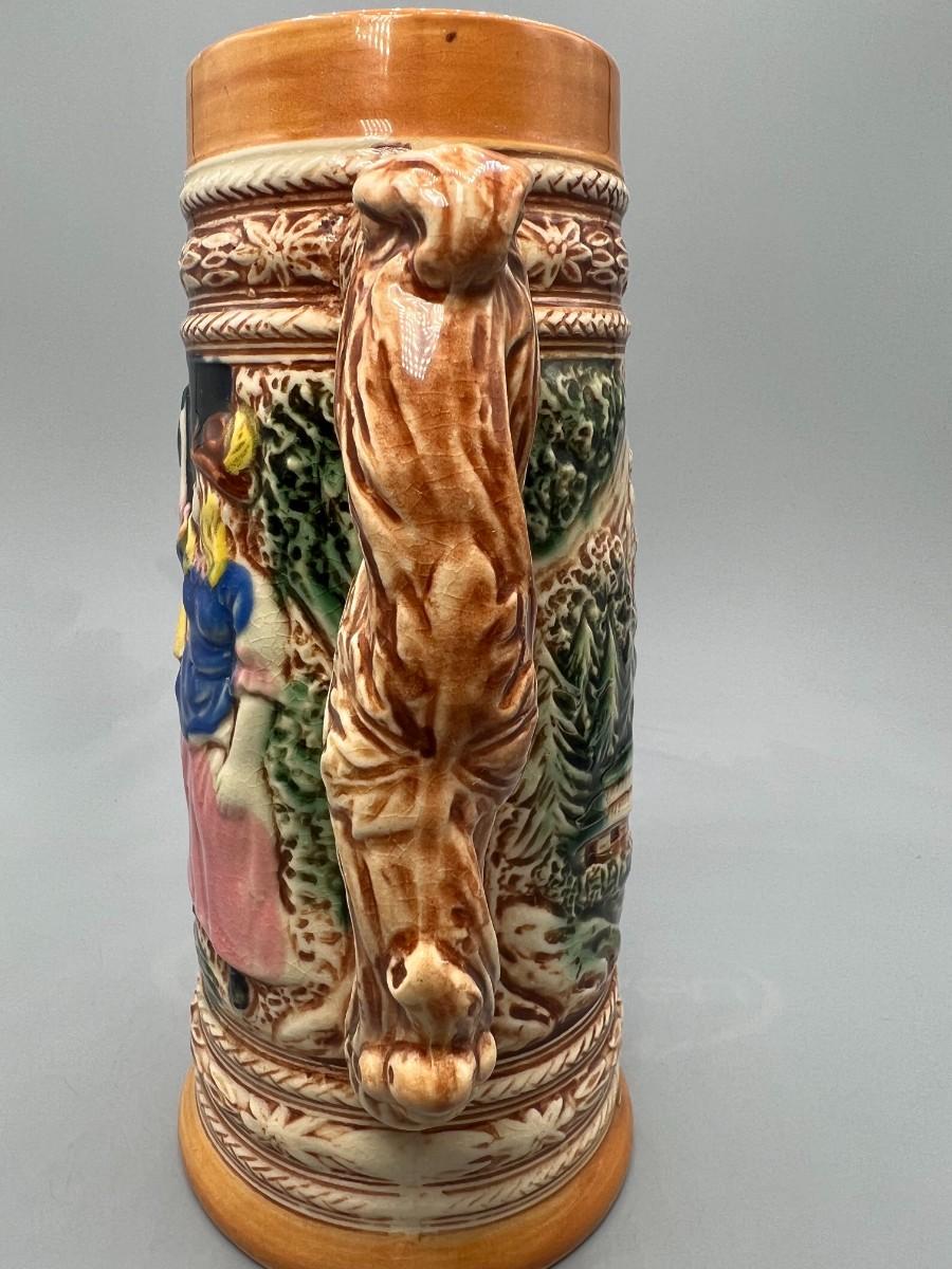 There is no significant damage to the ceramic beer stein and is in overall good collectible or displayable condition. Check pictures for more details and for sizing.