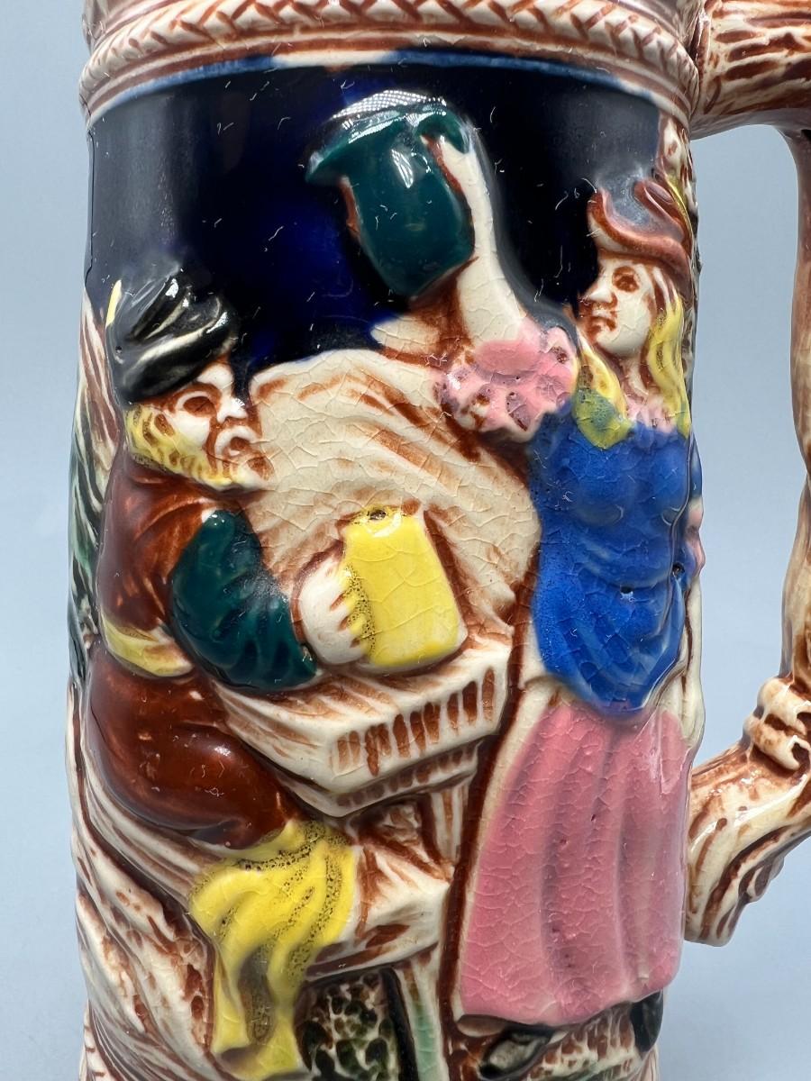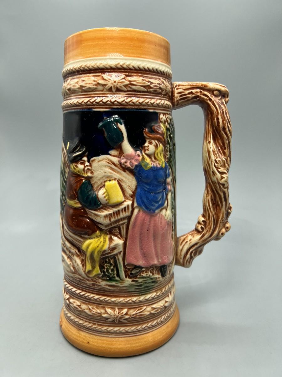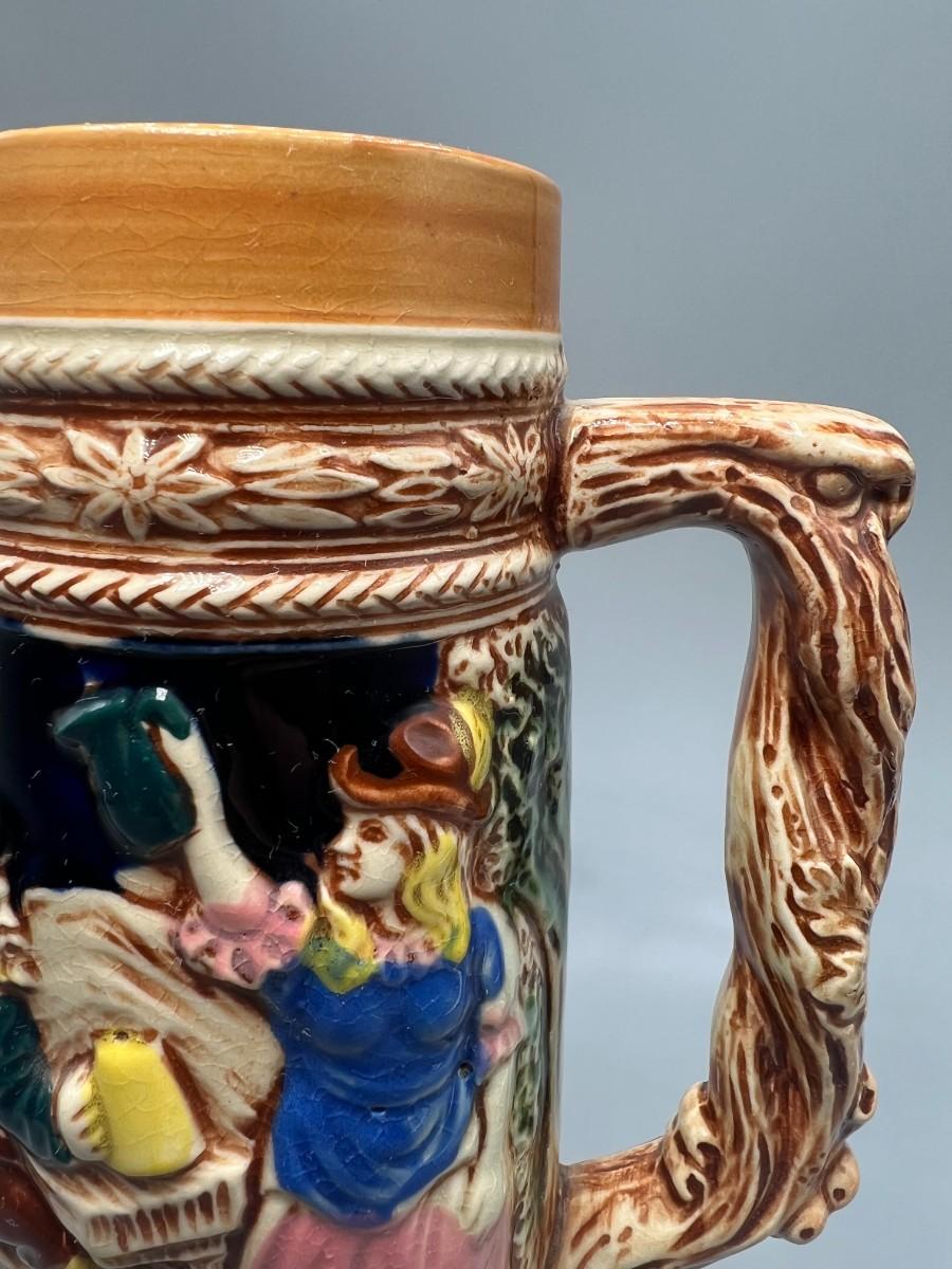 There is no significant damage to the ceramic beer stein and is in overall good collectible or displayable condition. Check pictures for more details and for sizing.