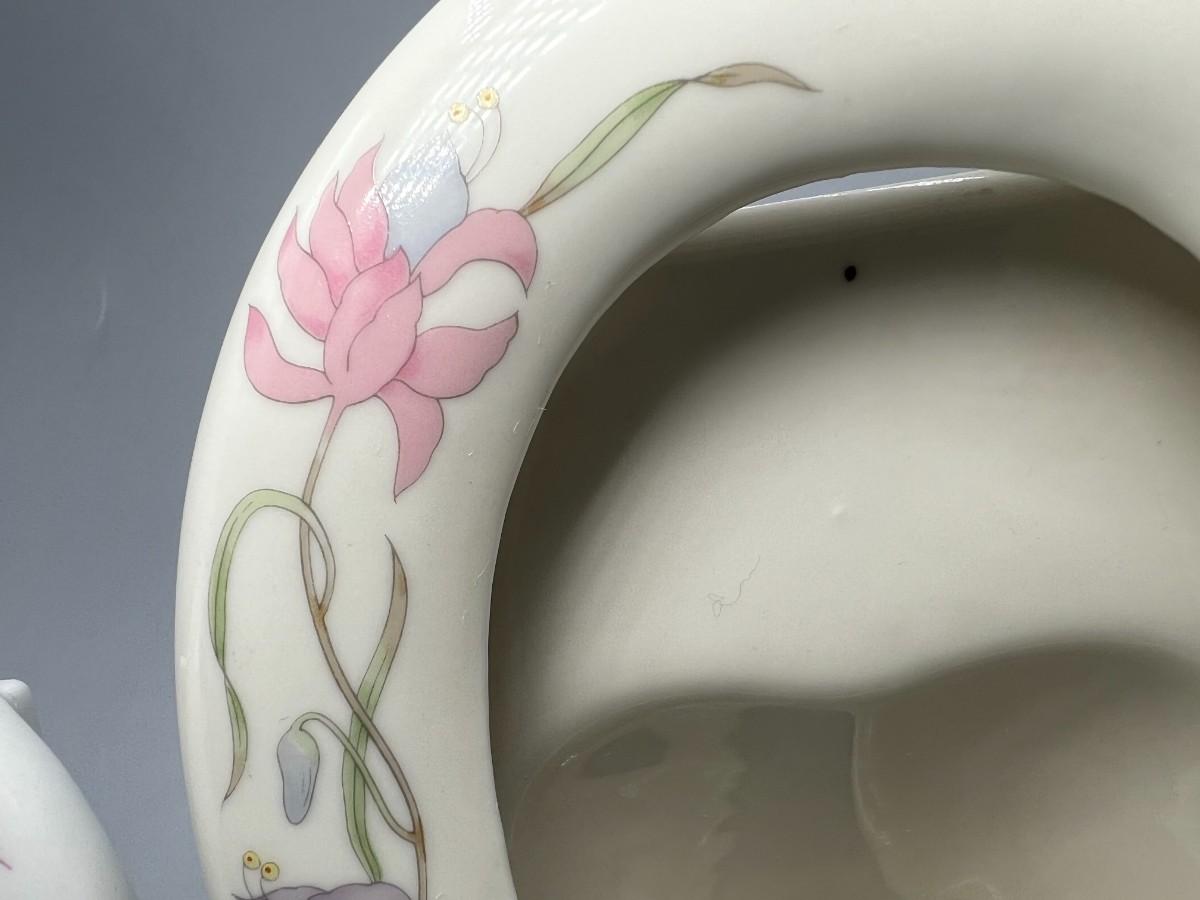 There is no significant cracks or chips to the porcelain or the ceramic photo frames and is in overall good collectible or useable condition, check pictures for more details and for sizing.