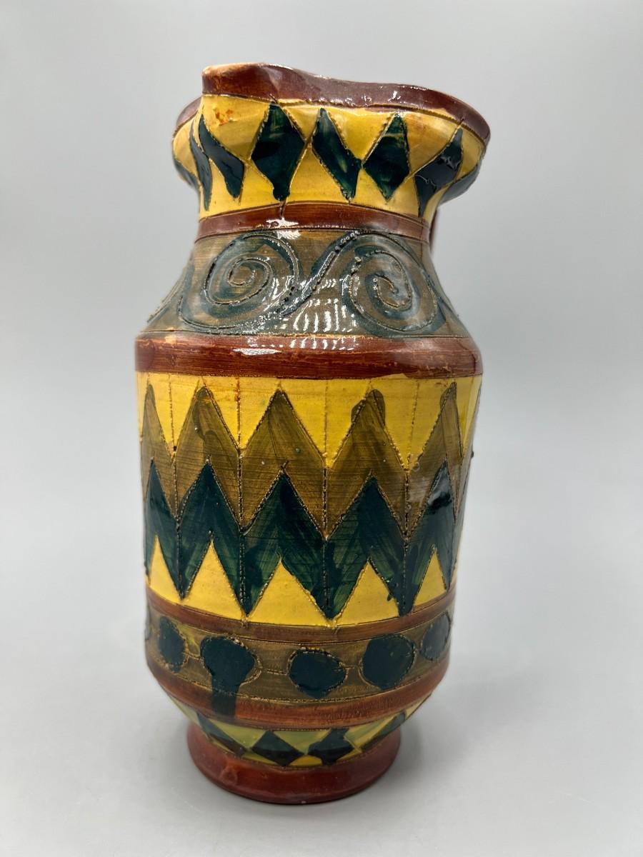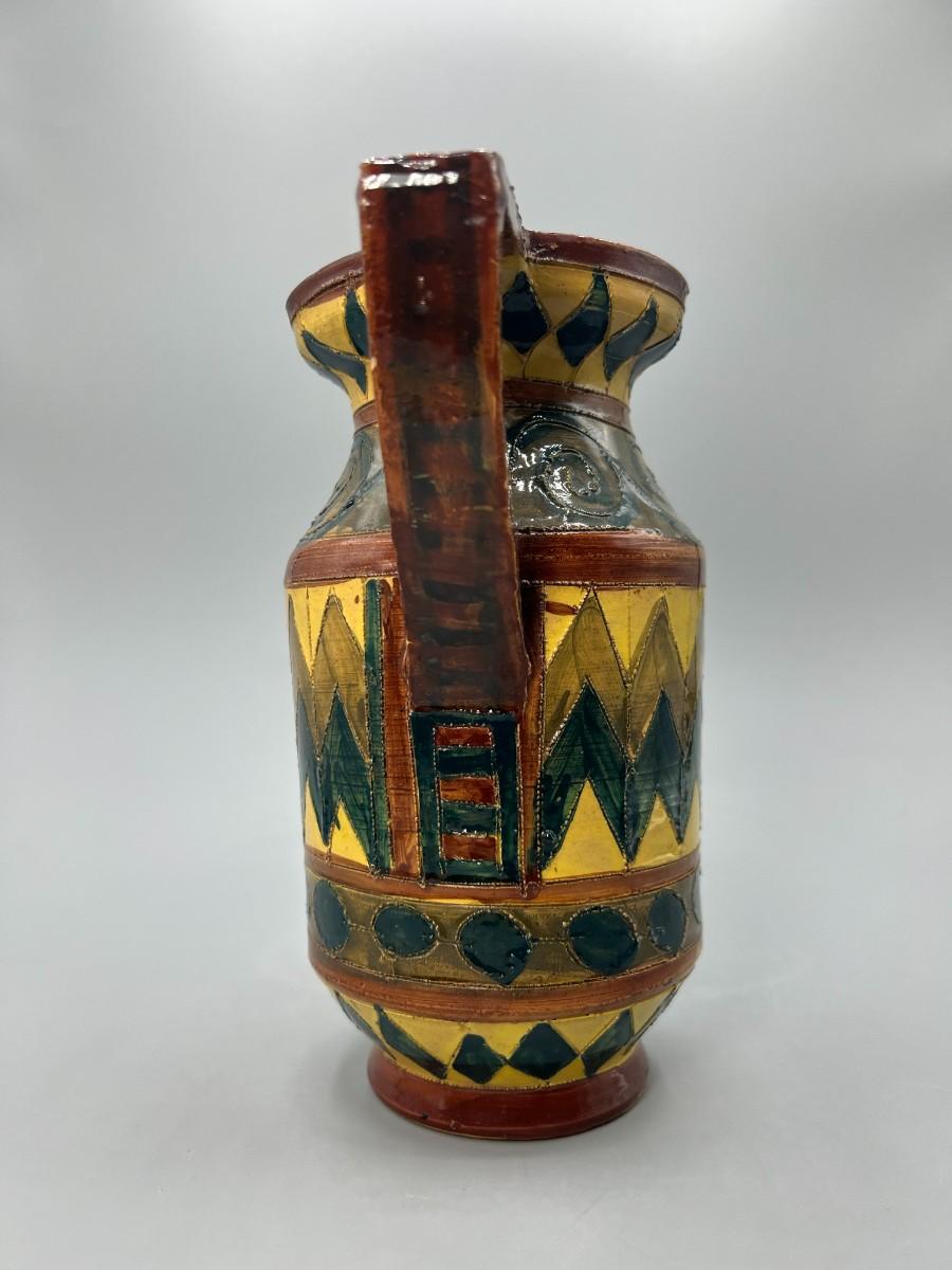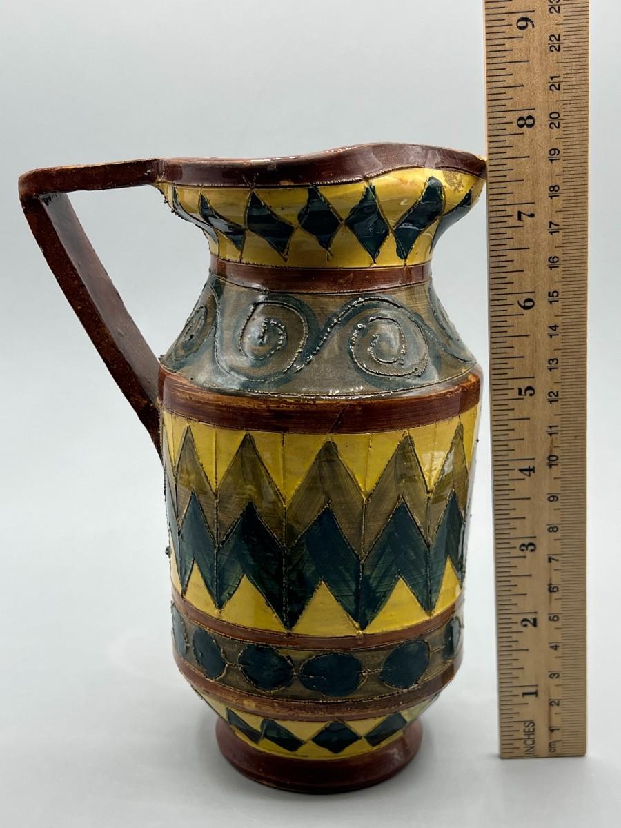 Vintage Italian Handmade Ceramic Tile Art Vibrant Colorful Decorative Water Pitcher Vase