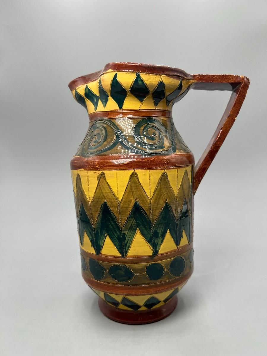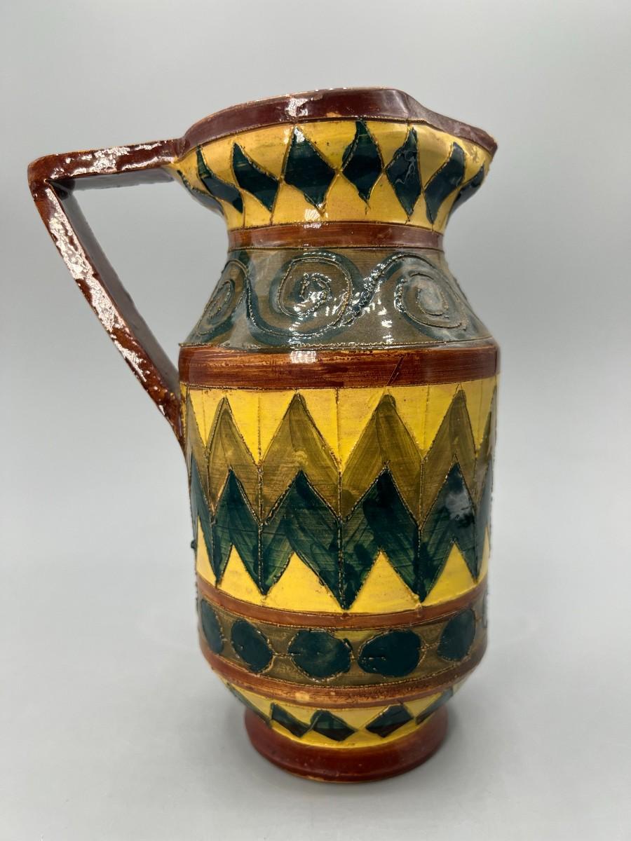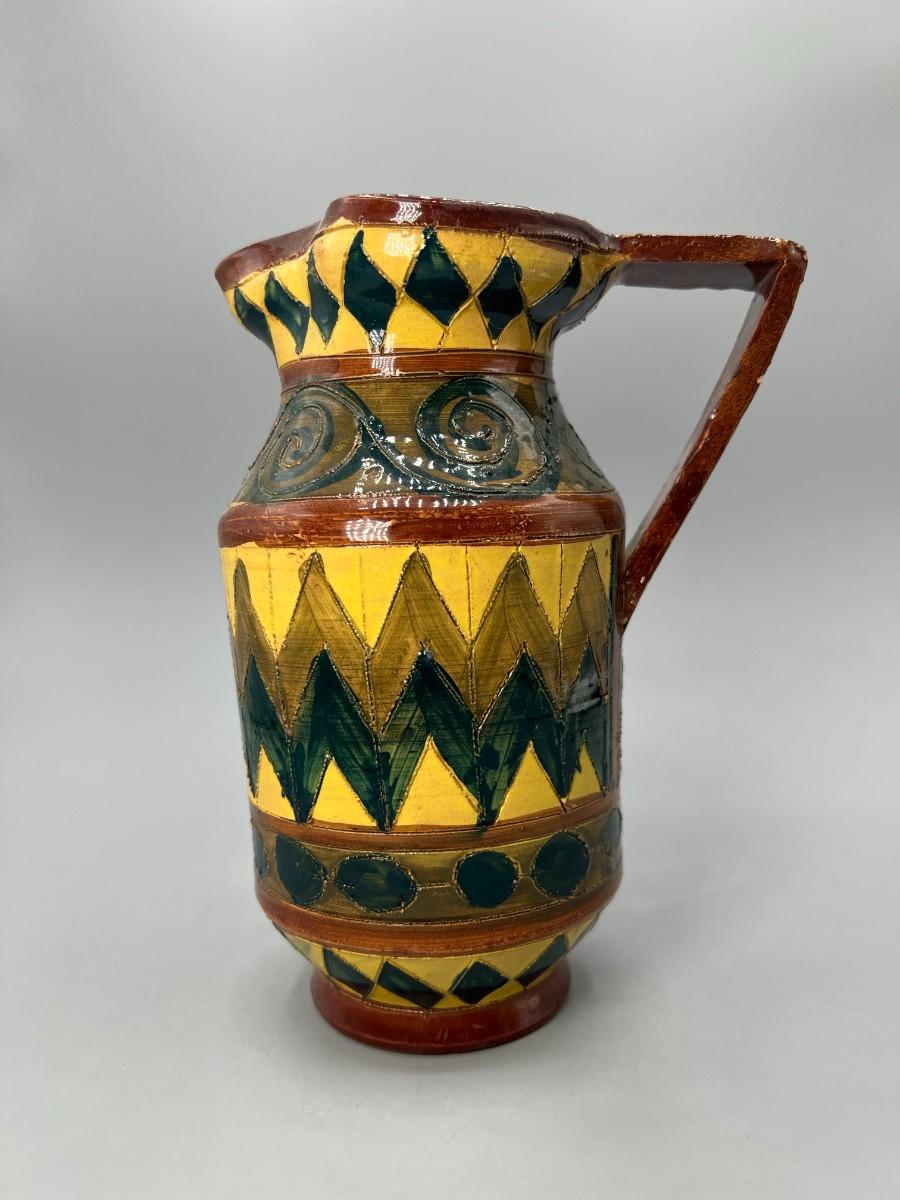 Vintage Italian Handmade Ceramic Tile Art Vibrant Colorful Decorative Water Pitcher Vase