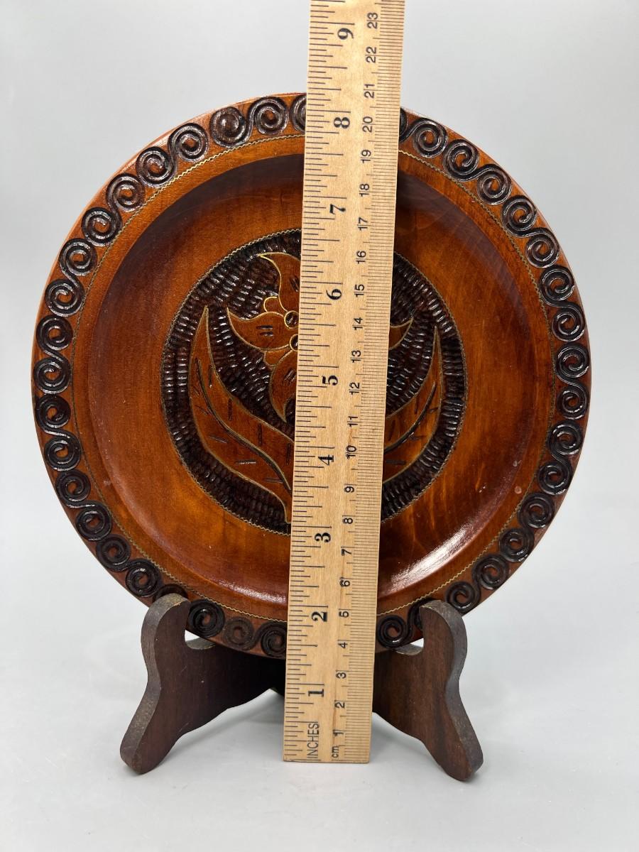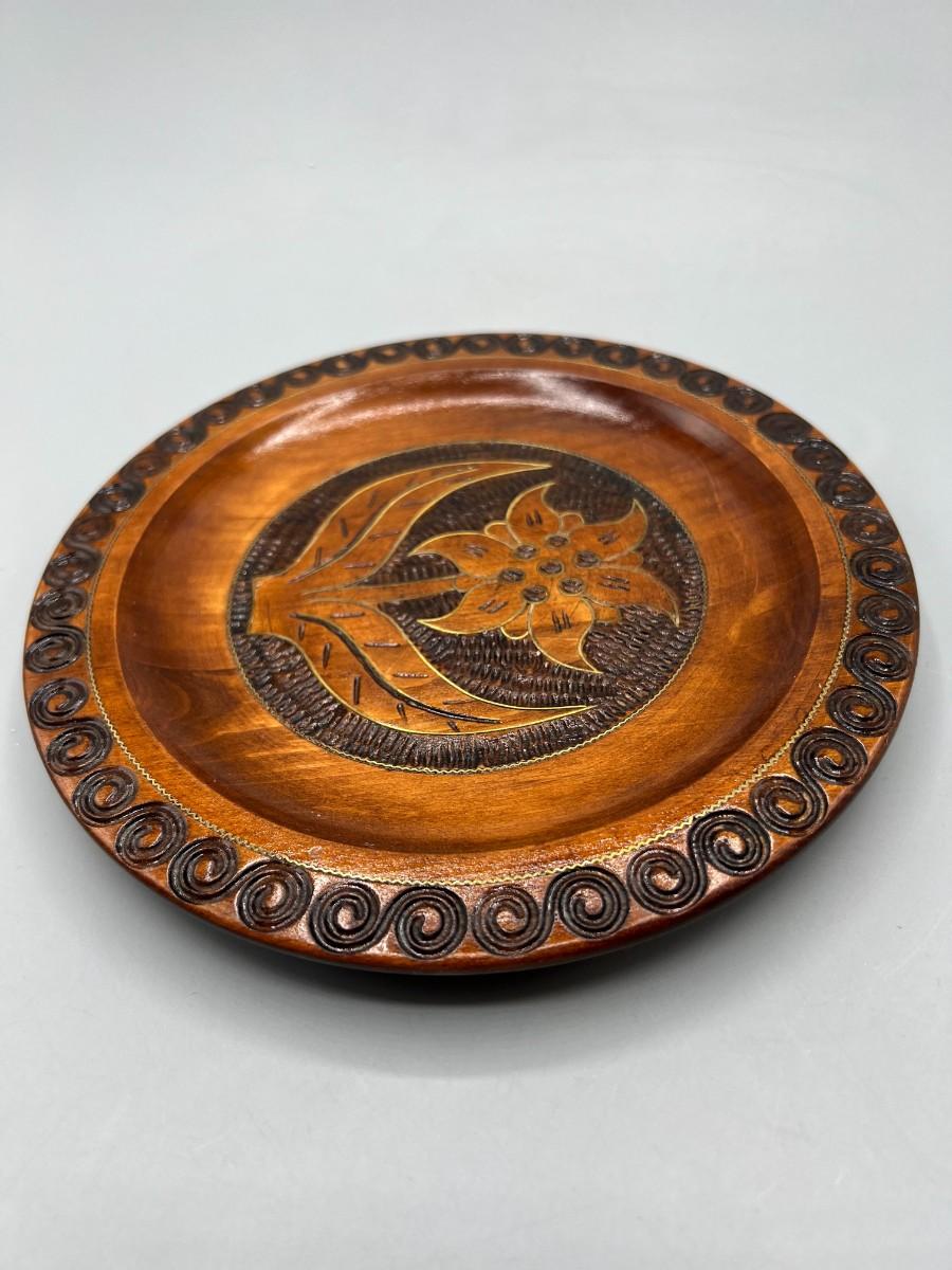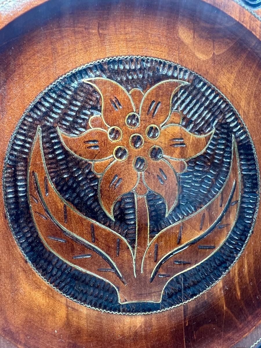 Vintage Small Hand Carved Flower Motif Wood Cottagecore Decor Dish
