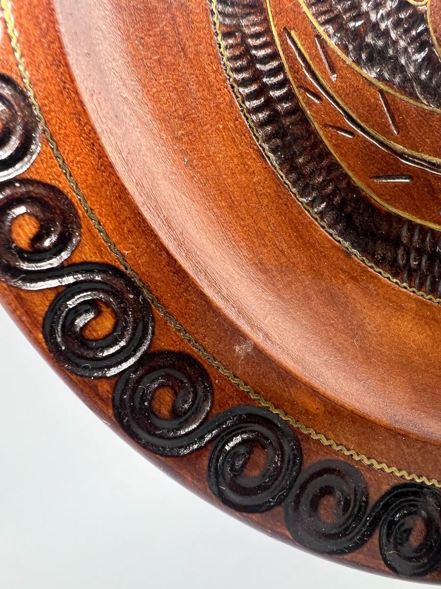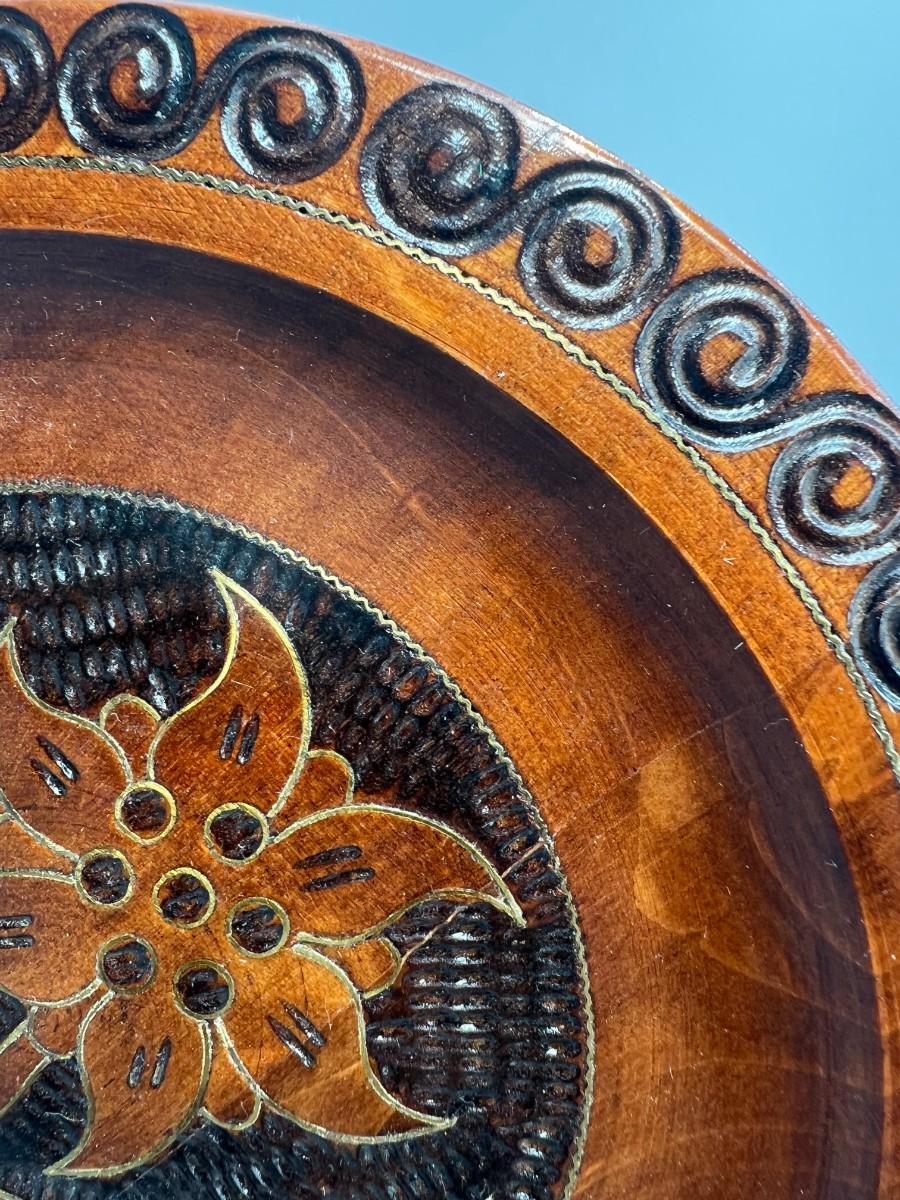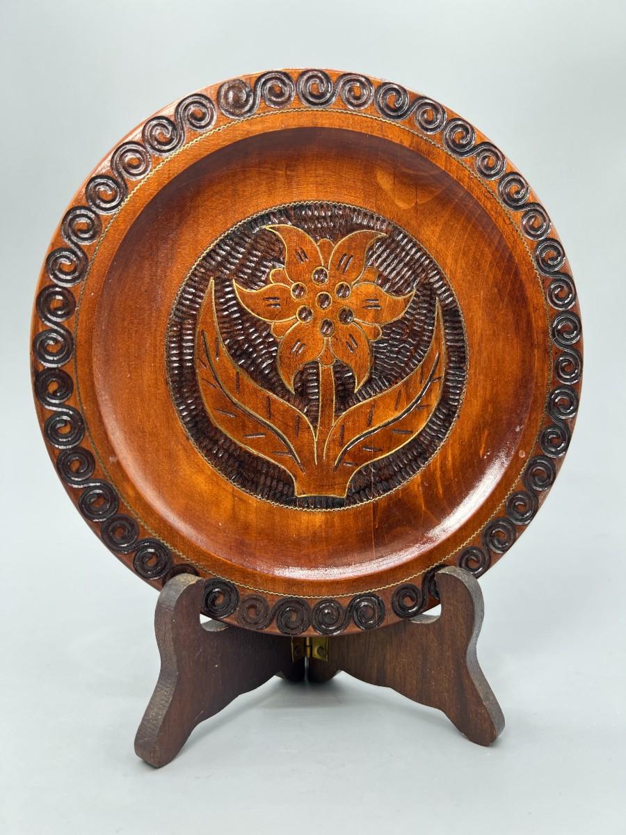 Vintage Small Hand Carved Flower Motif Wood Cottagecore Decor Dish