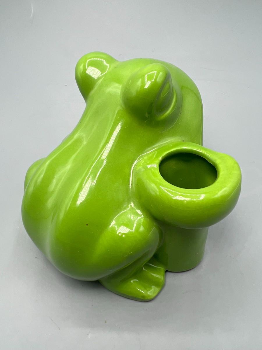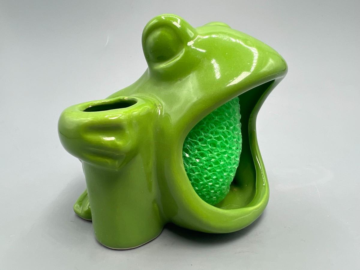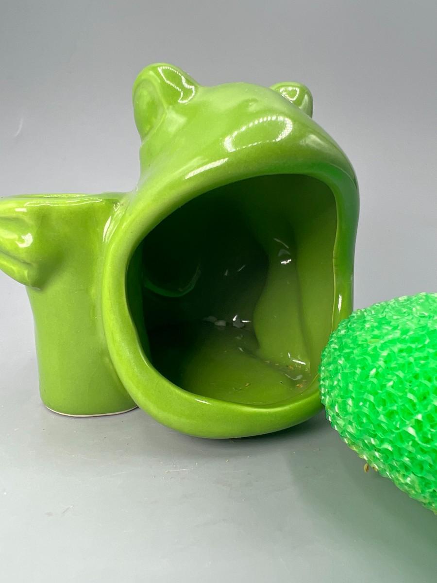 Retro Green Ceramic Open Mouth Frog Toad Sponge & Toothbrush Holder