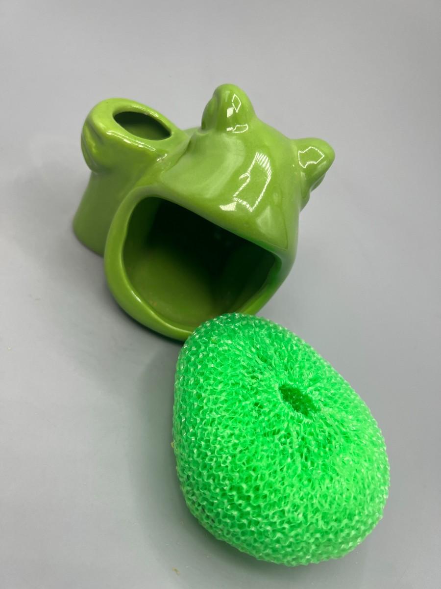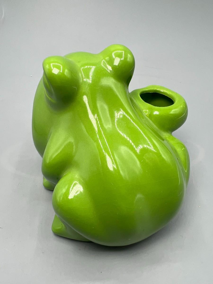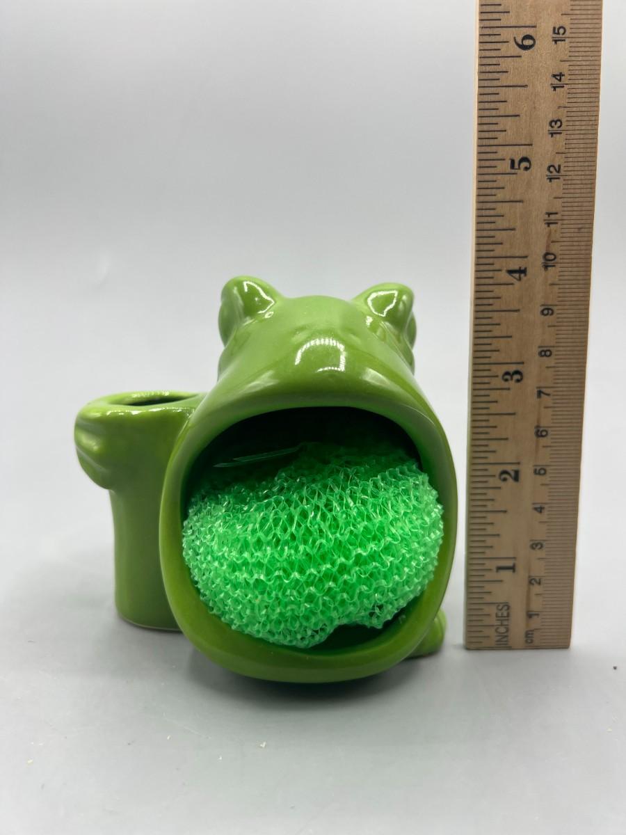 Retro Green Ceramic Open Mouth Frog Toad Sponge & Toothbrush Holder