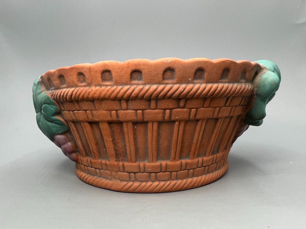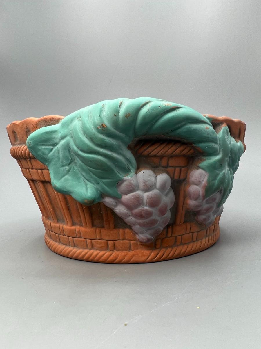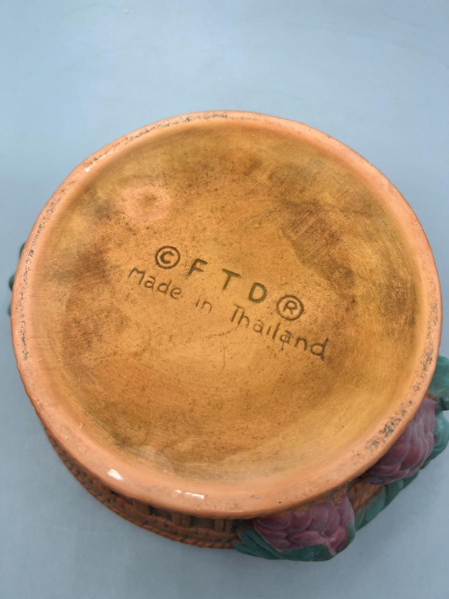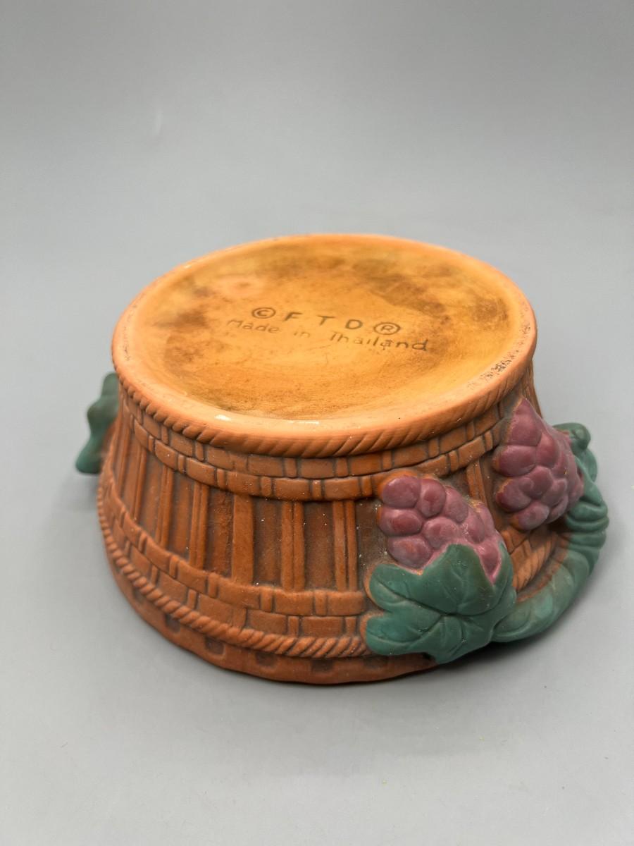 Vintage FTD Terracotta Ceramic Grape Basket Garden Art Flower Planter