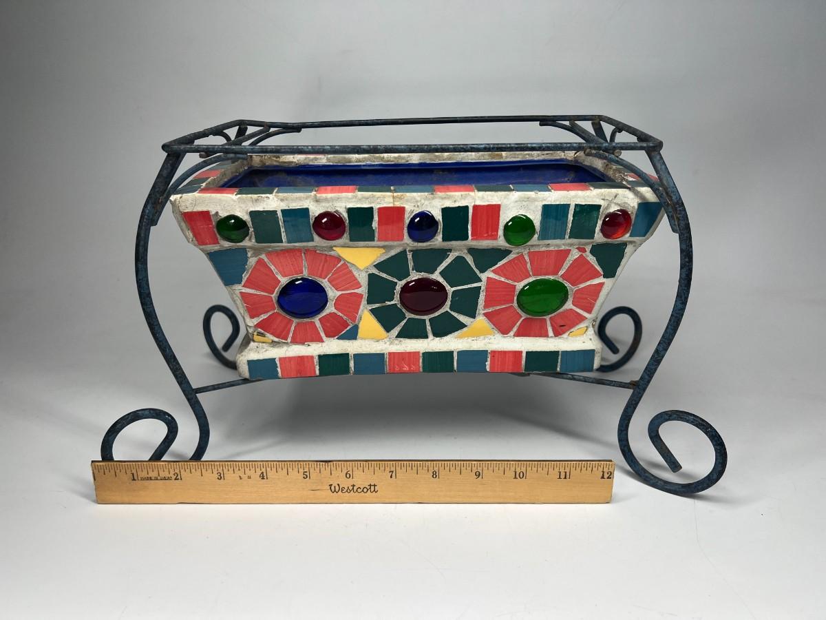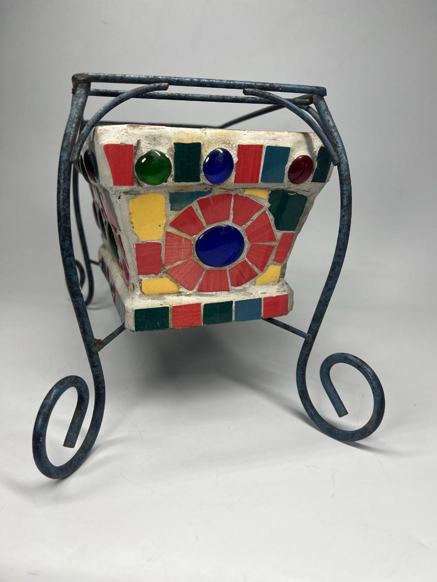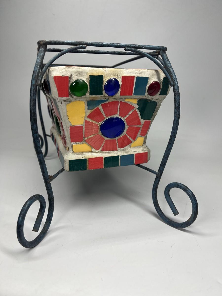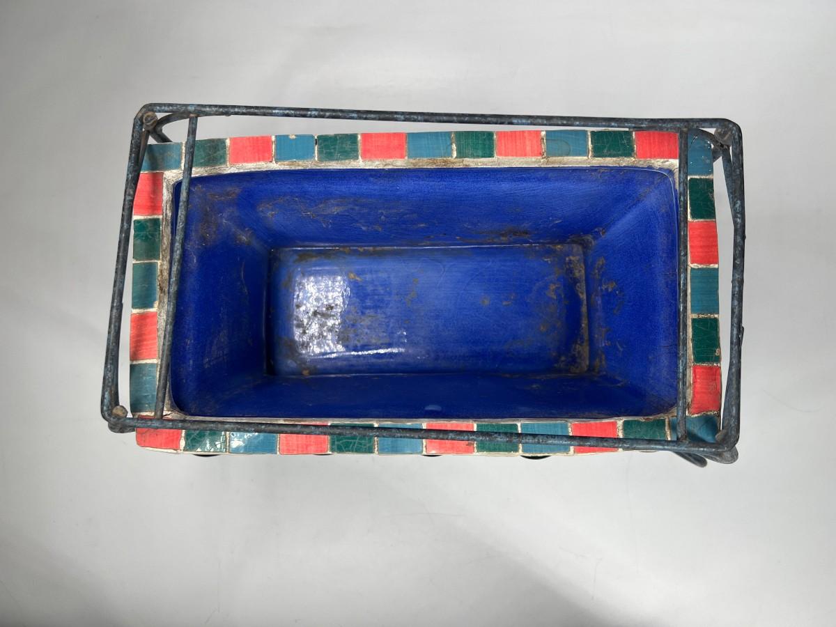 Colorful Rectangular Ceramic Pottery Tile Flower Pot with Stand