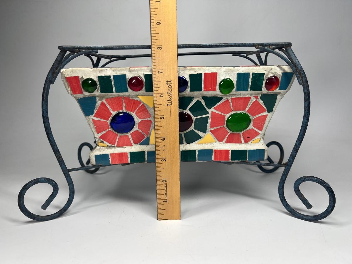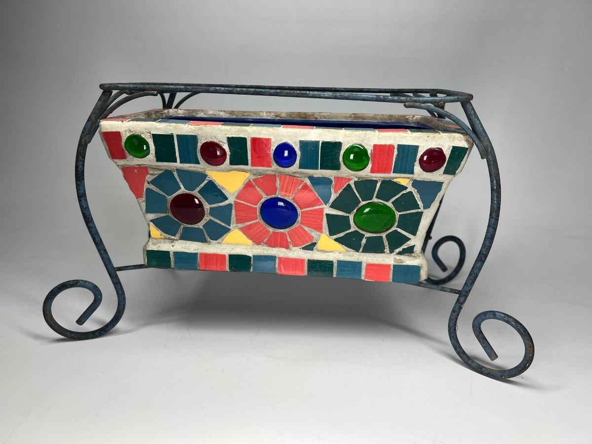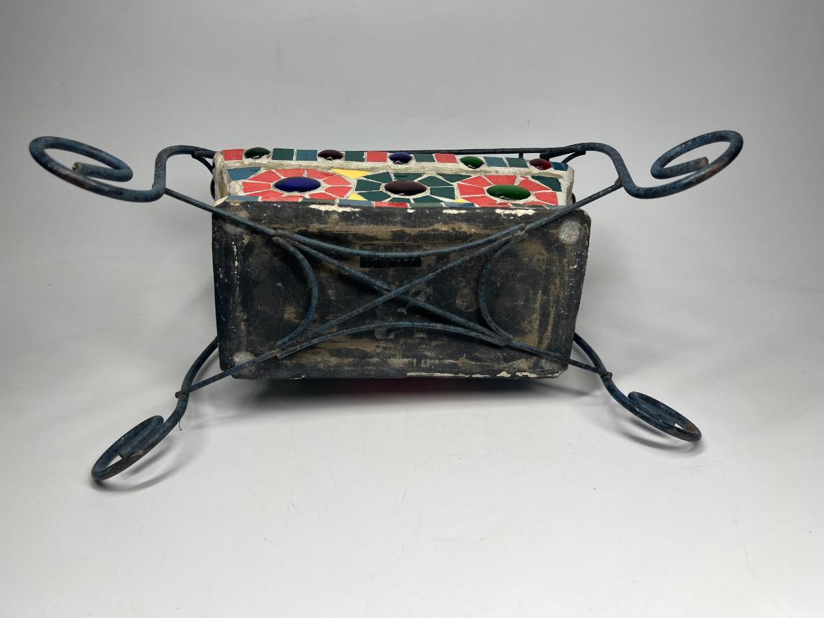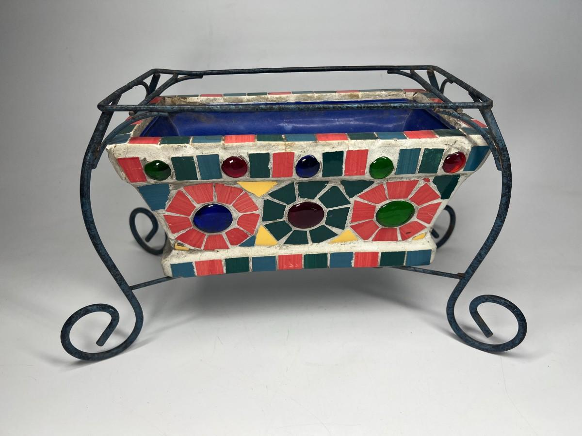 Colorful Rectangular Ceramic Pottery Tile Flower Pot with Stand