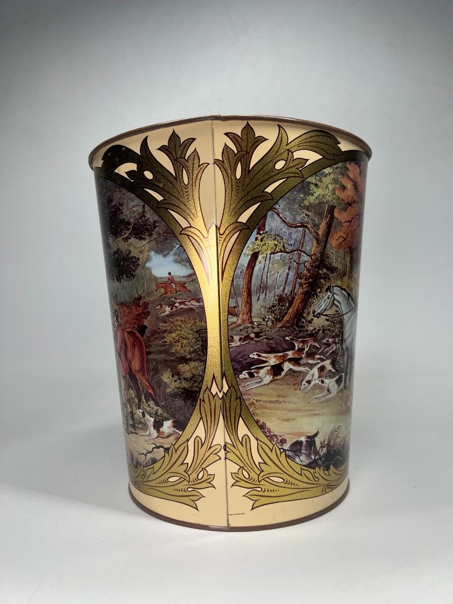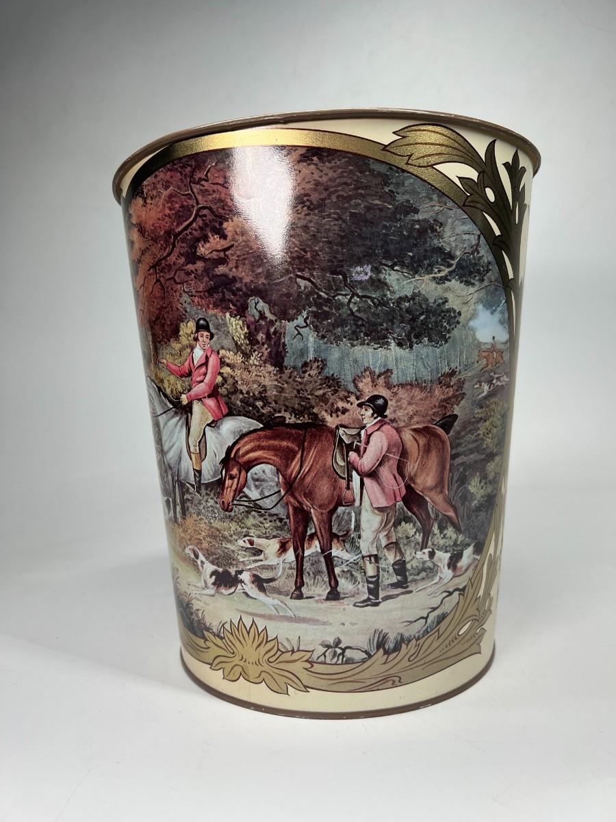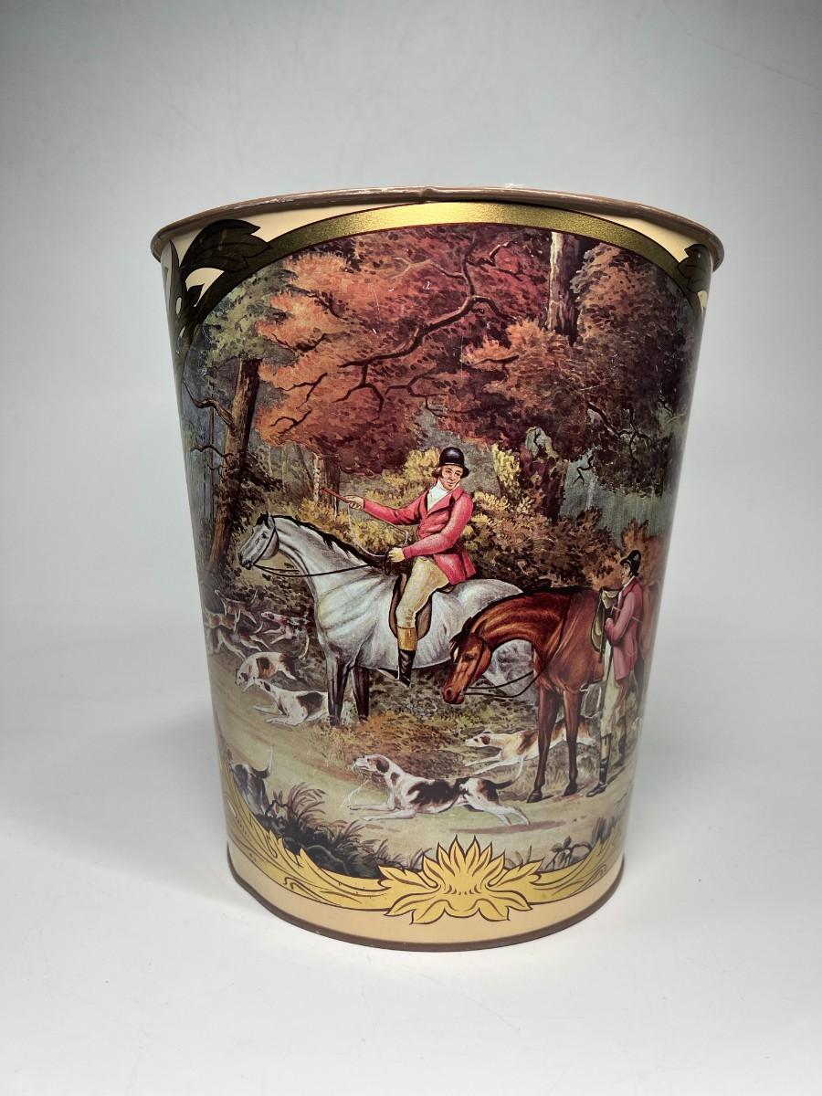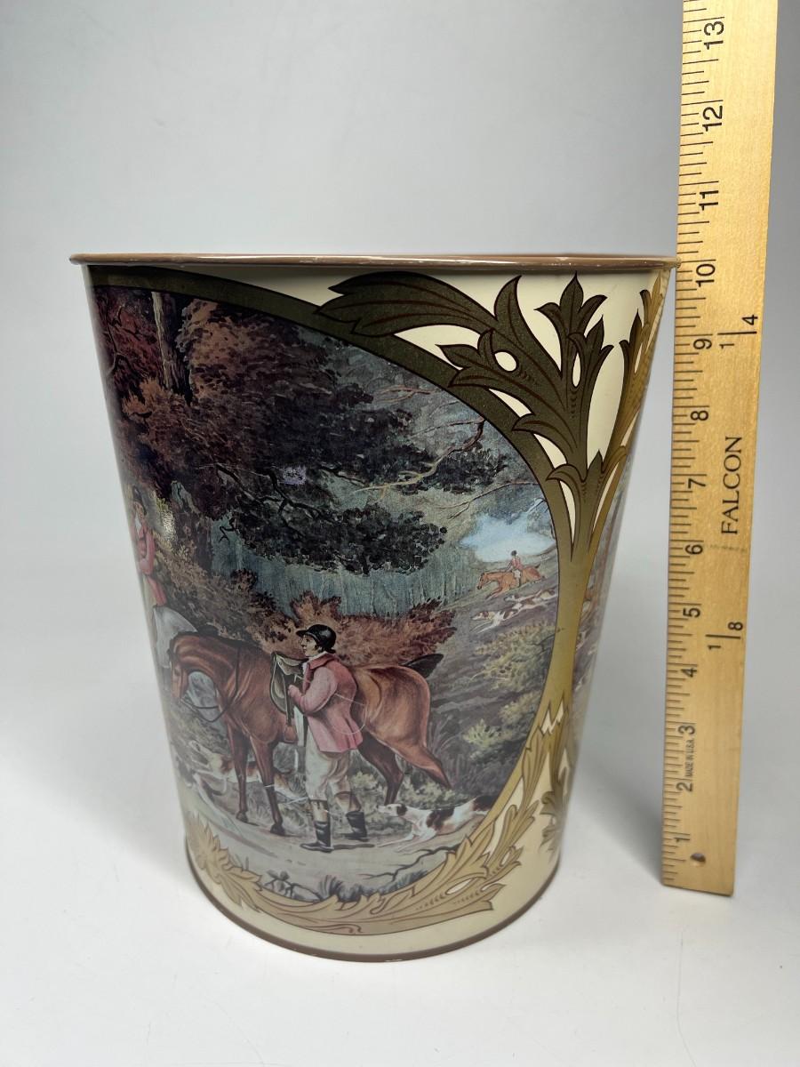 Retro French Tole Equestrian Hunting Party Made in England Tin Metal Waste Basket