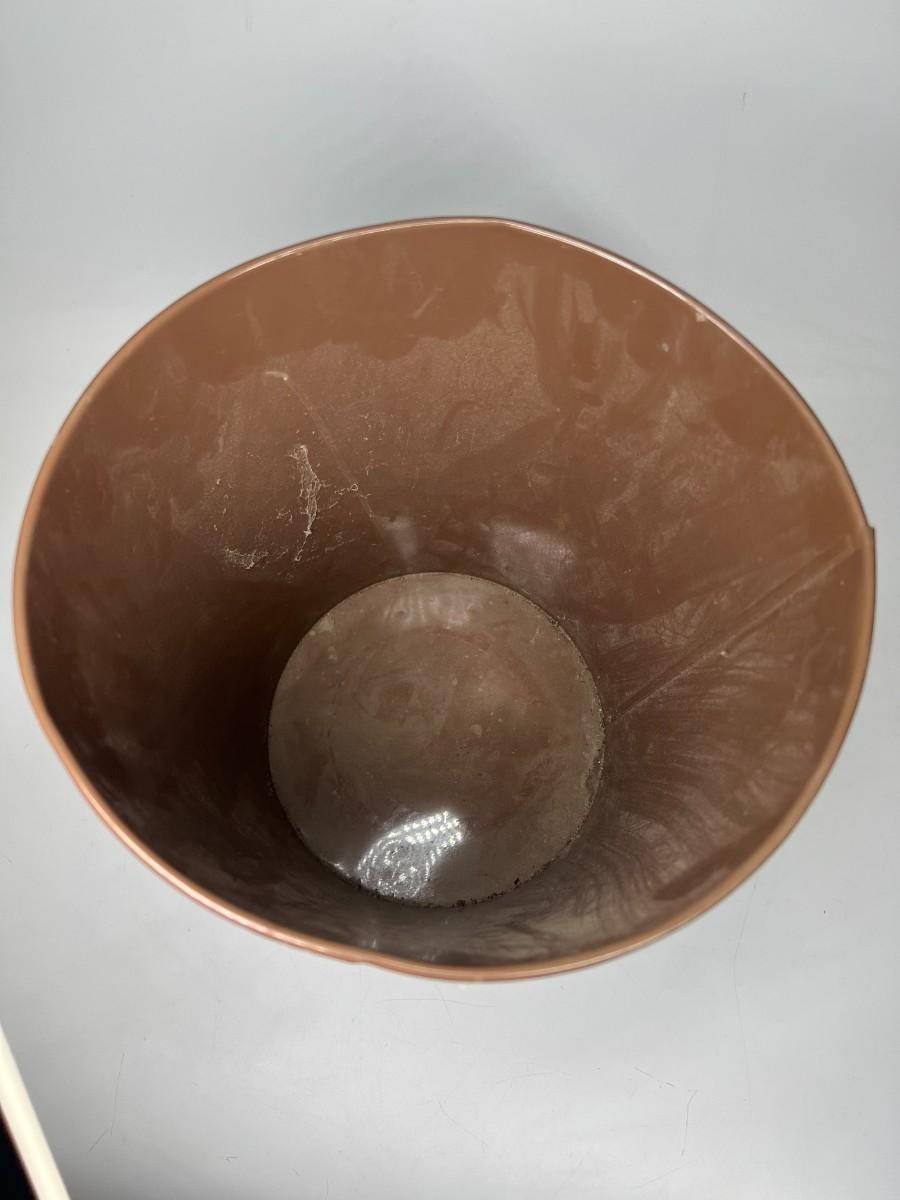 There is some retro wear to the wastebasket, but there is no significant damage and is in overall good useable or displayable condition. Check pictures for more details and for sizing.