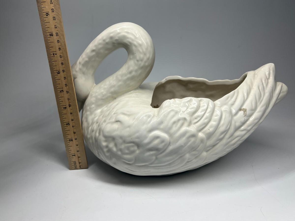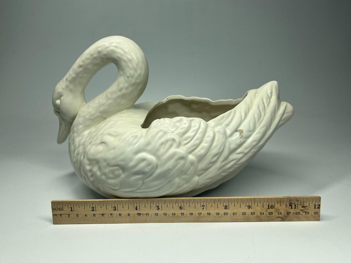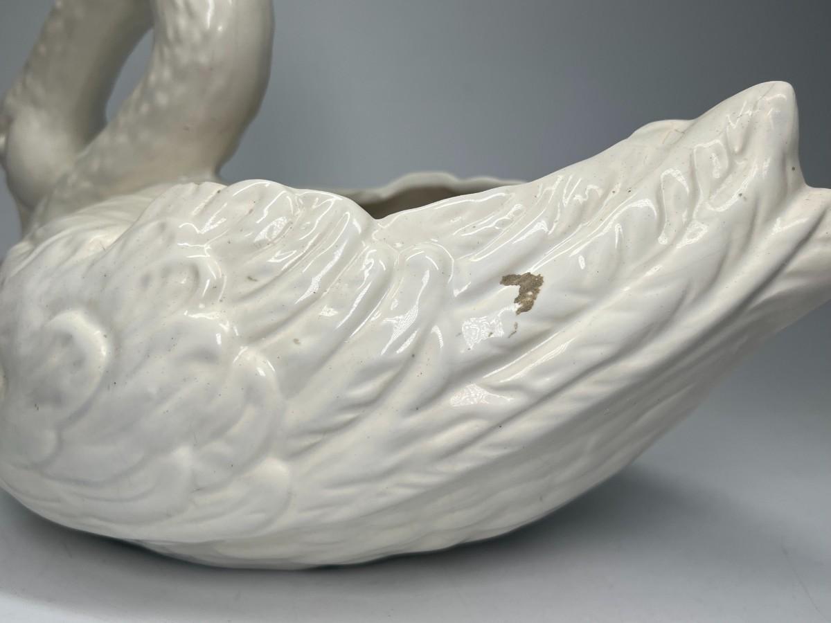 Retro Ceramic Pottery Art White Swan Garden Art Figurine Flower Planter Bowl