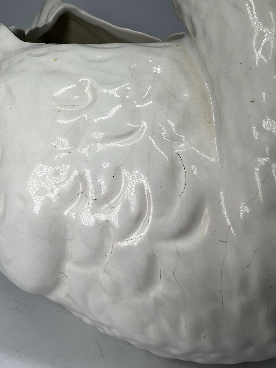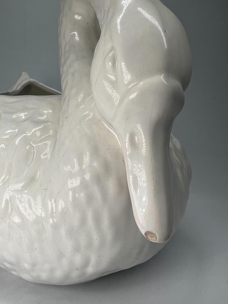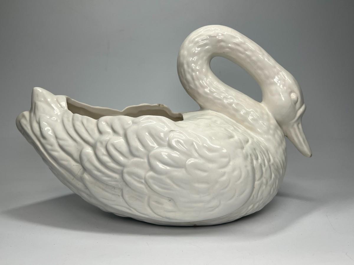 Retro Ceramic Pottery Art White Swan Garden Art Figurine Flower Planter Bowl