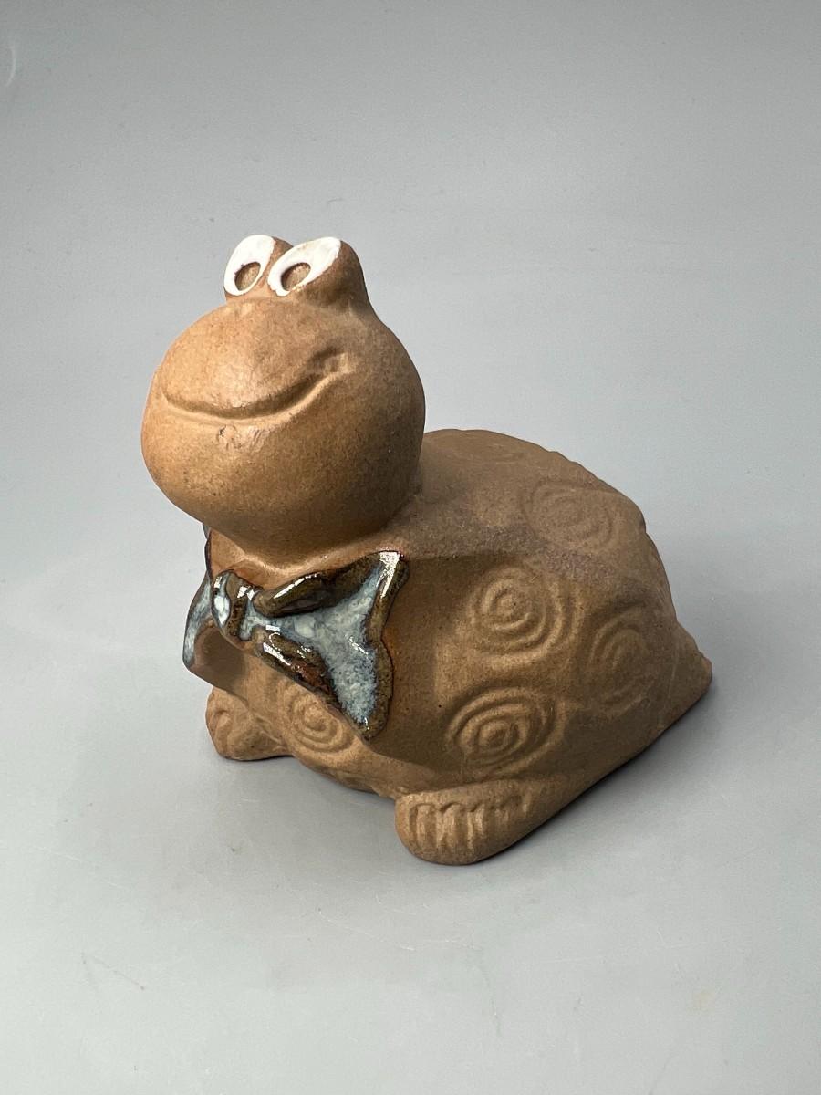Small Happy Cute Bow Tie Tortoise Pottery Terracotta Figurine