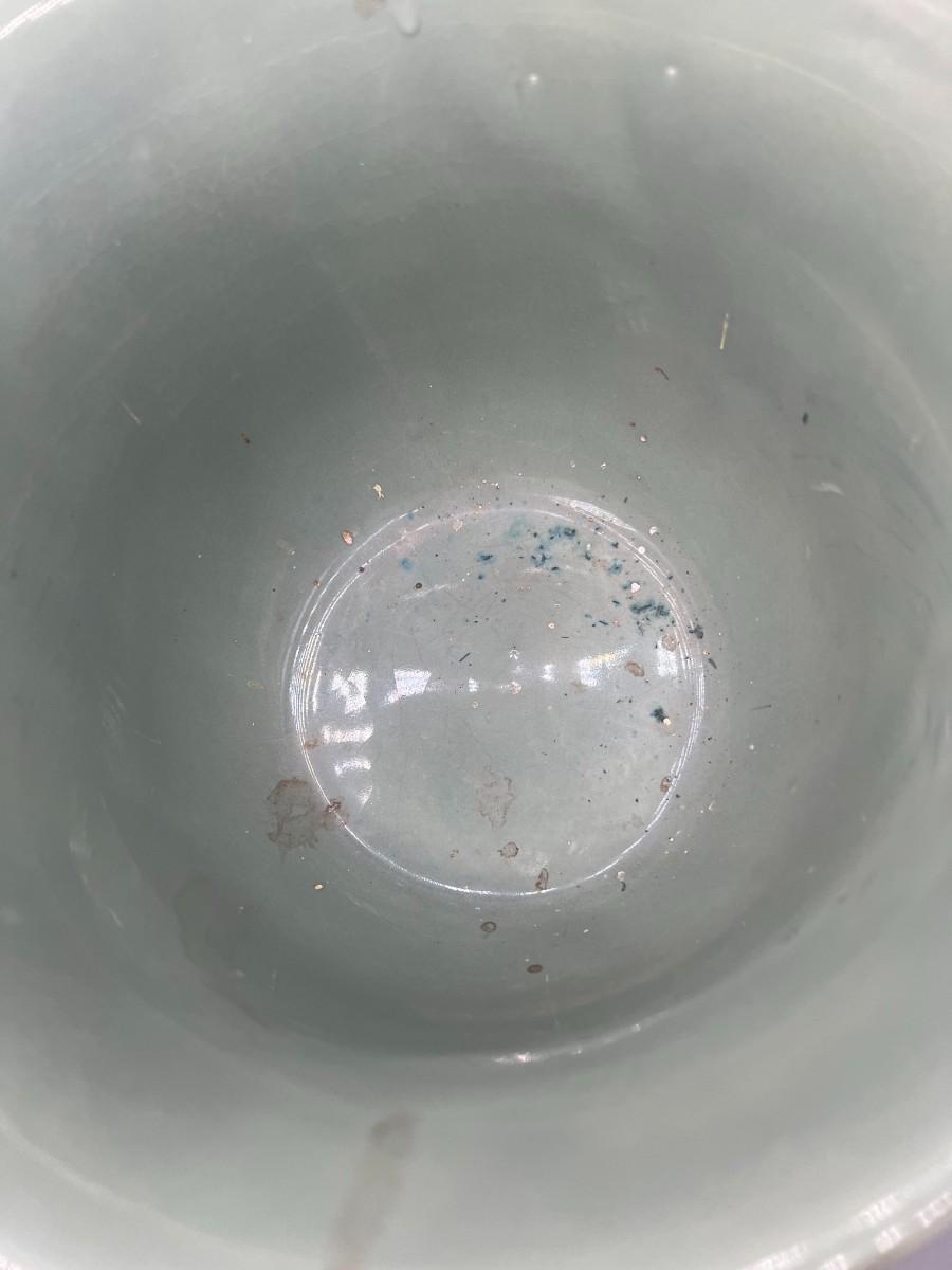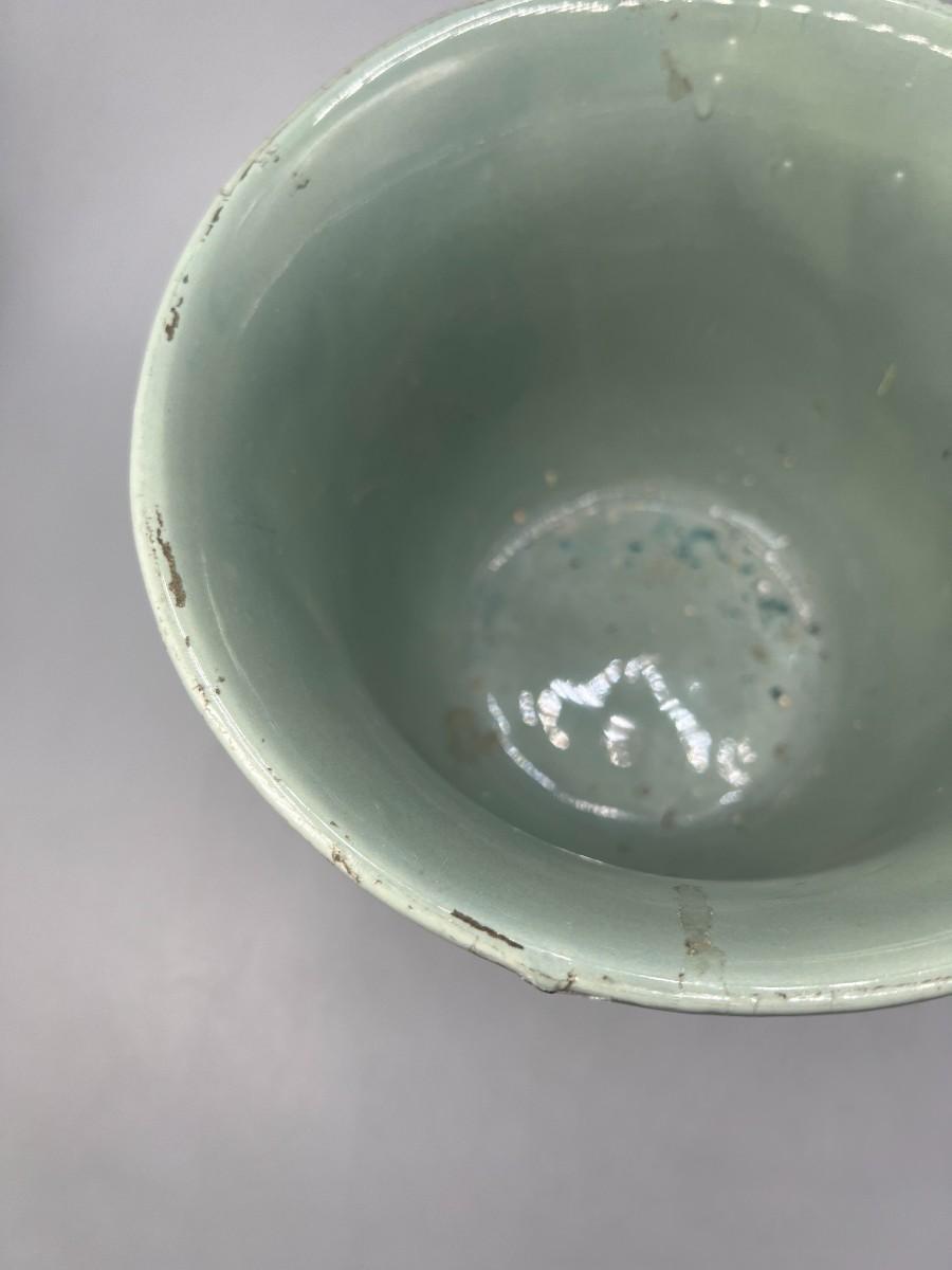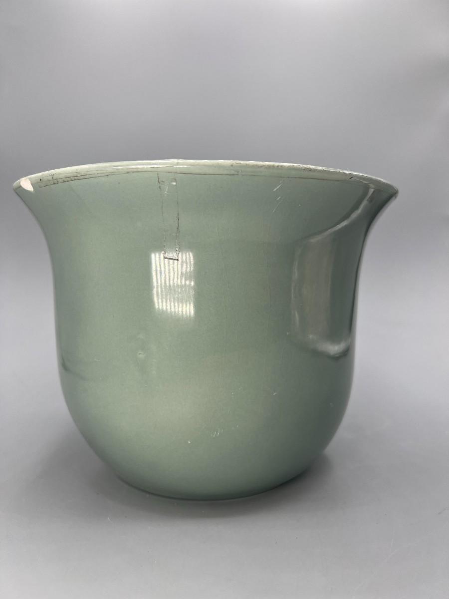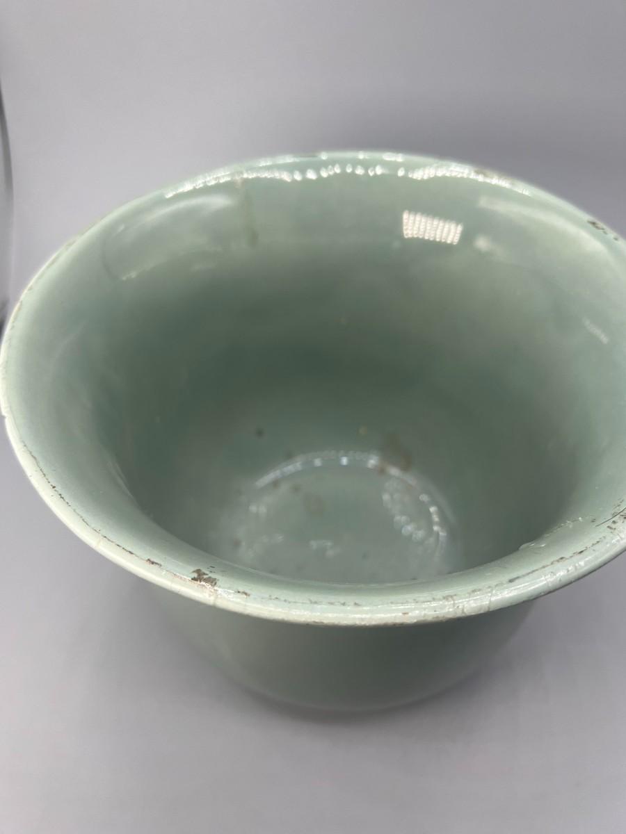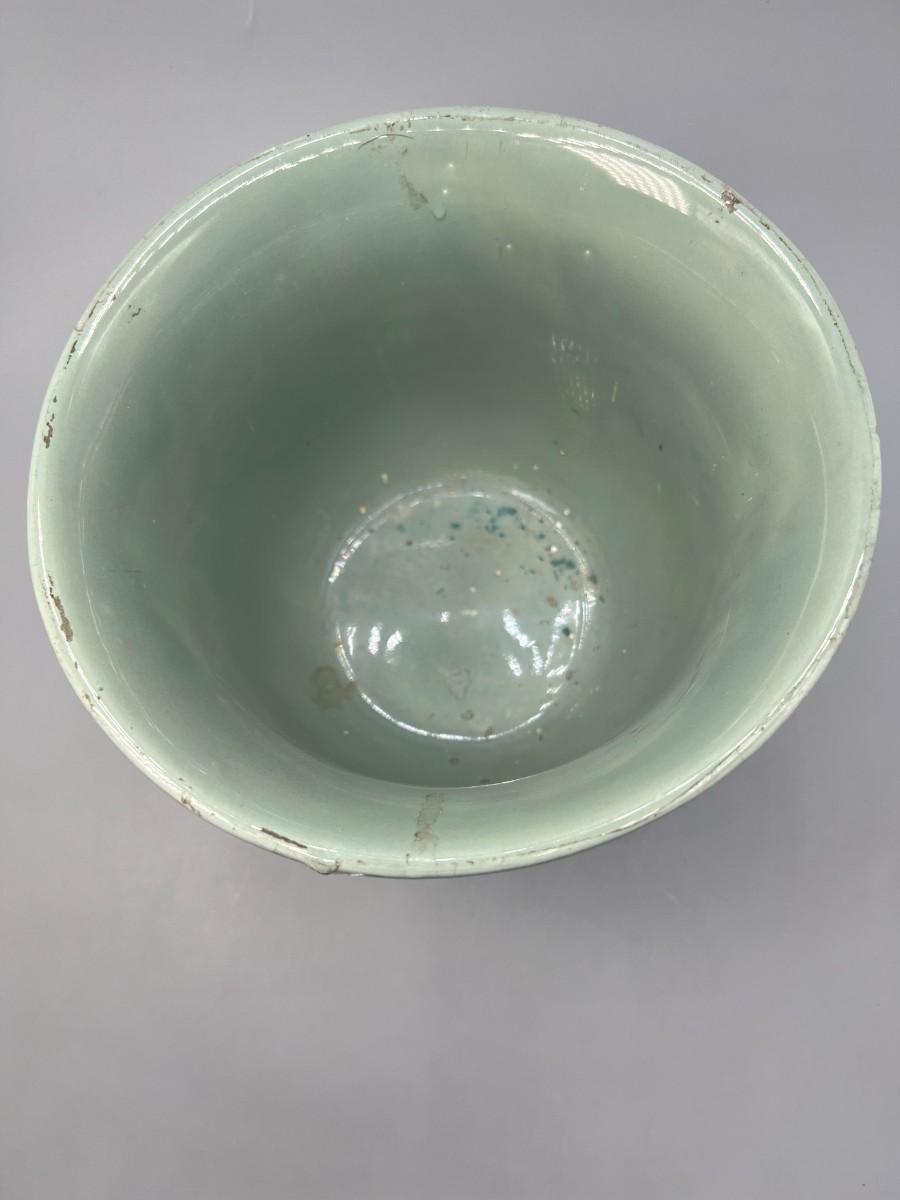There is some light scratching and wear to the planter, but there is no significant cracks or chips and is in overall good useable or displayable condition. Check pictures for more details and for sizing.